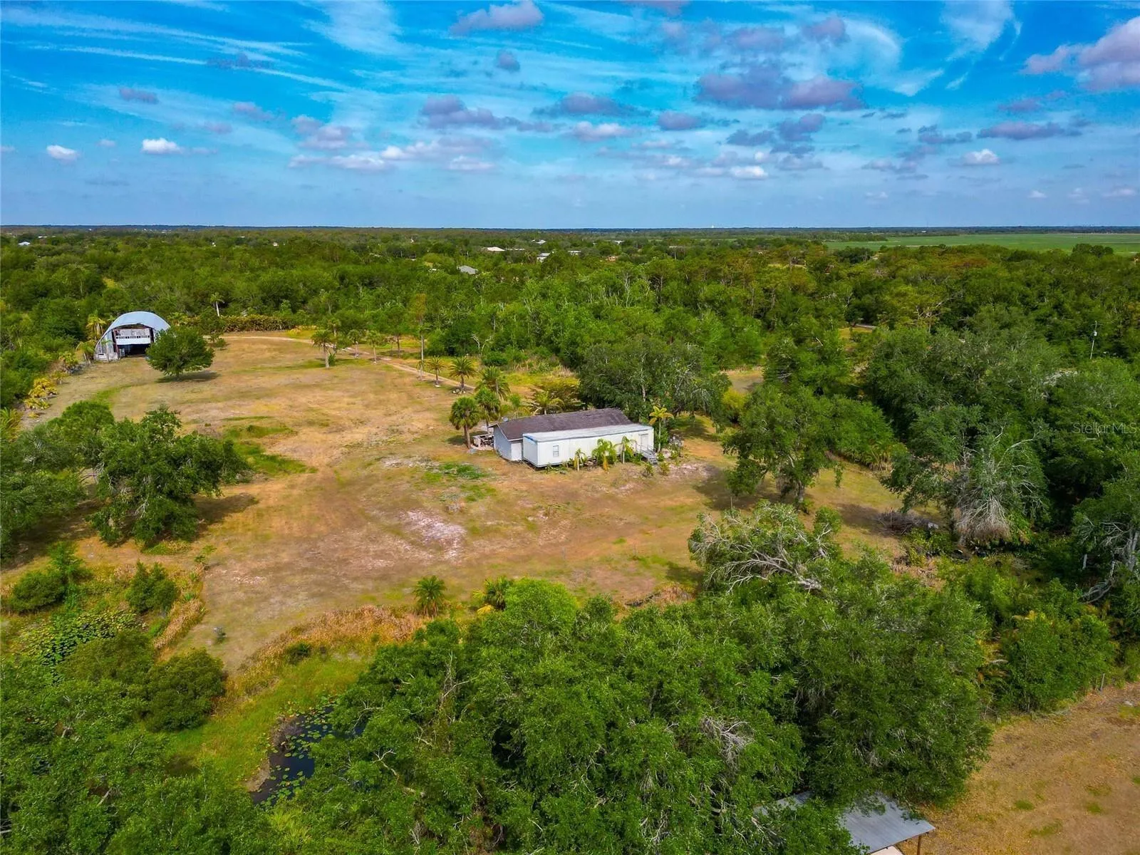 Now NEW Roof…Home is Vacant and Easy to Show! 4.81 beautiful acres near the end of a private dirt road, extremely quiet area. This land is mostly cleared and fenced with some trees and a large pond that was previously stocked with fish. There is a 5000 square foot outbuilding/ metal barn with an office inside with electricity available to the building. The home on the property is 960 square feet with 1 bedroom 1 bath house with an open kitchen and dining/living room combination and a 1 bedroom 1 bath mobile. The house has a large bathroom with a tray ceiling in the bath, and large shower. Home could be reconfigured to be more than one bedroom easily. Behind the home, the mobile home was used for a business office and has one bedroom and one bathroom as well. The 5000 square foot metal outbuilding is called a hangar and could be a huge barn, workshop, or a massive office. Please make your appointment to see this one of a kind Myakka City acreage full of possibilities.