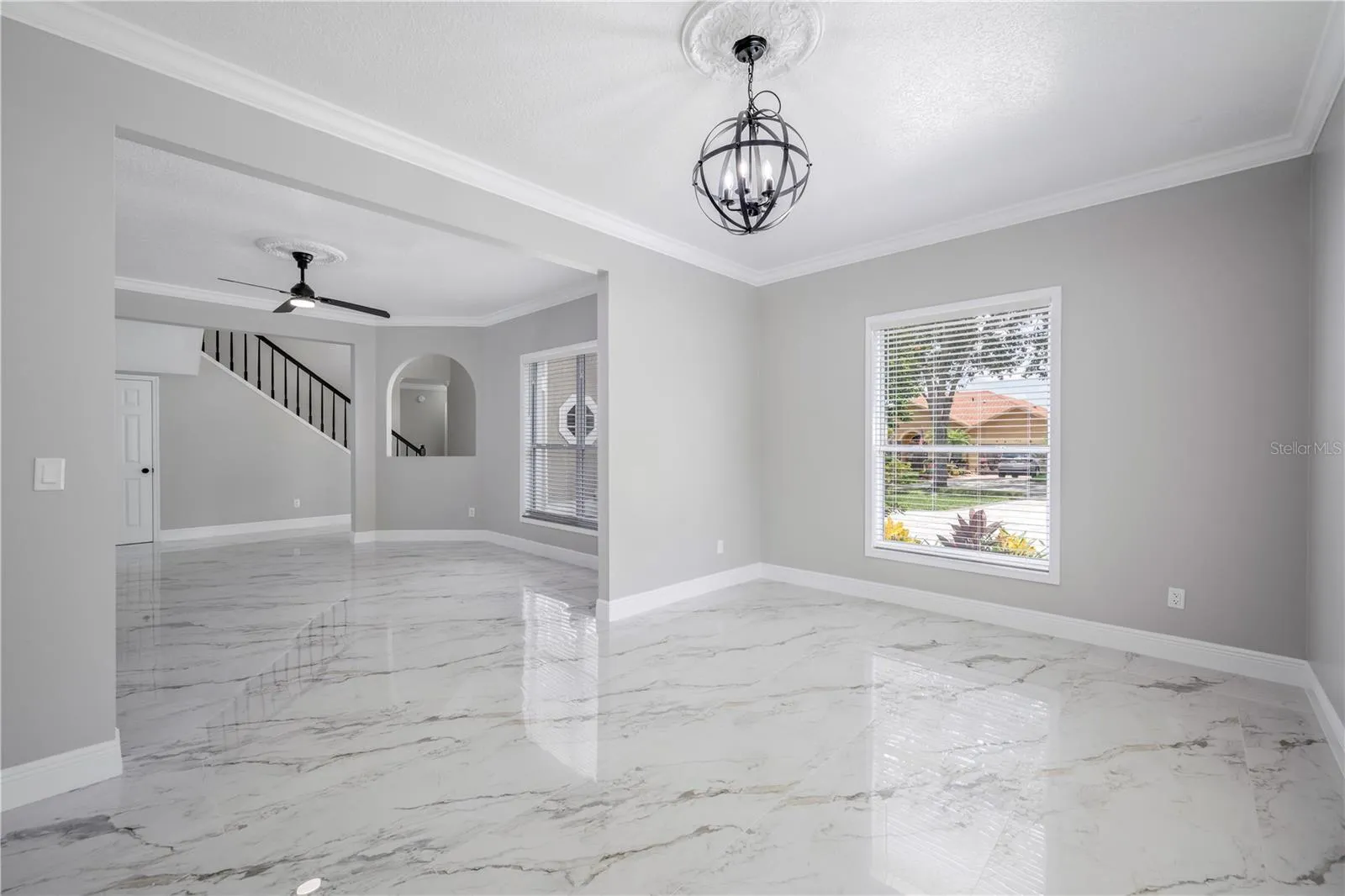 As you enter through timeless double doors, you’re greeted by soaring 20-foot ceilings and tile flooring that flows throughout the main level. The spacious great room and formal dining area provide the perfect setting for entertaining. Downstairs also features a guest bedroom with a full bath, a laundry room, and access to the oversized 2-car garage.