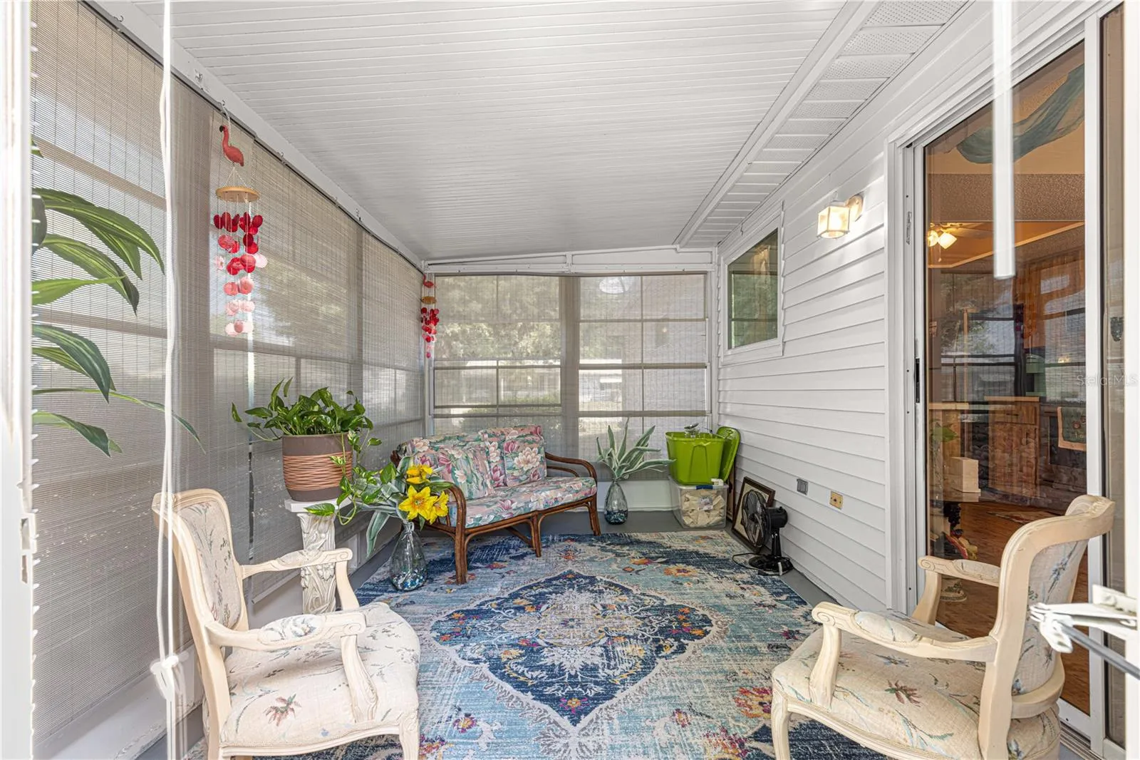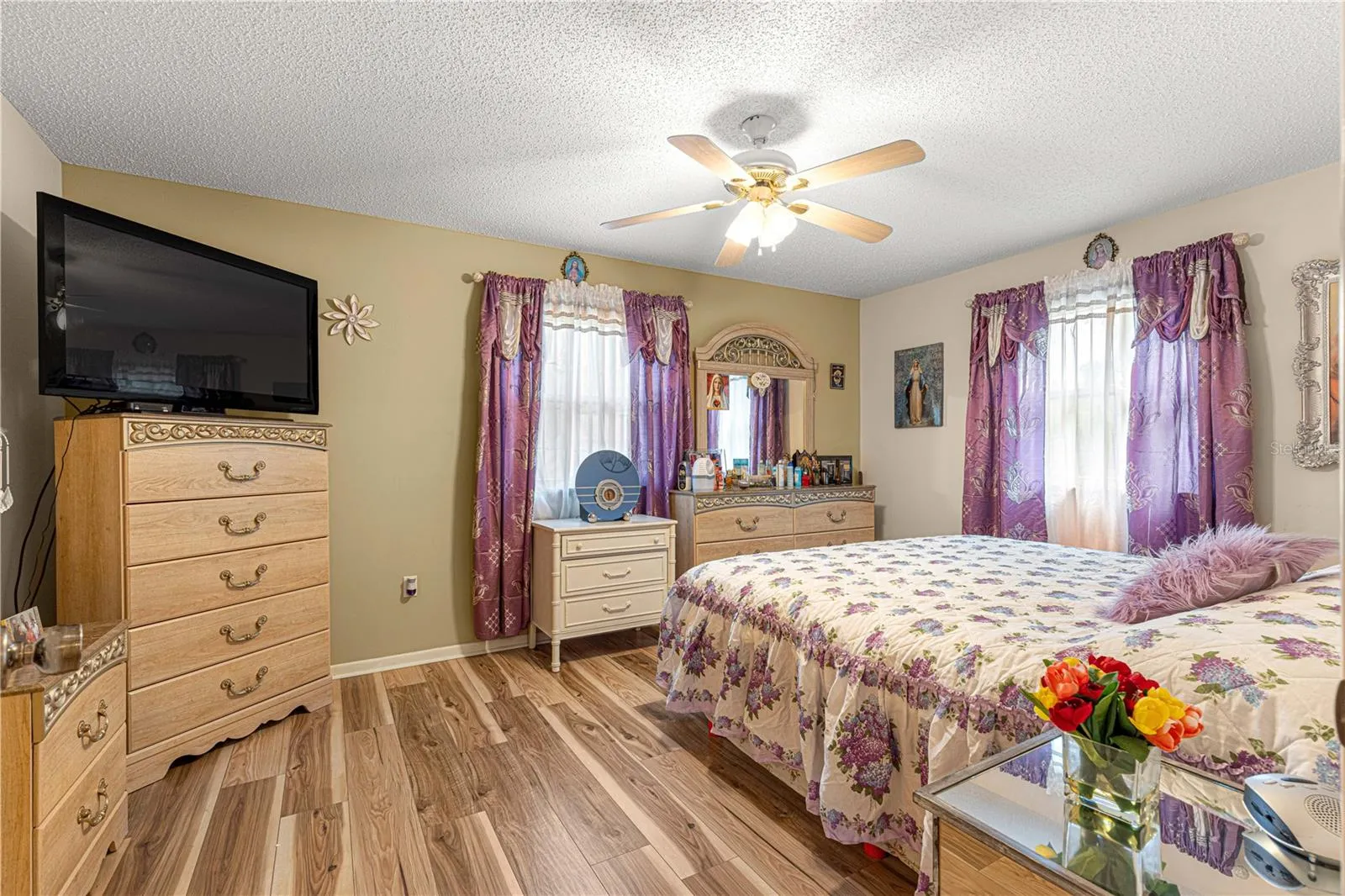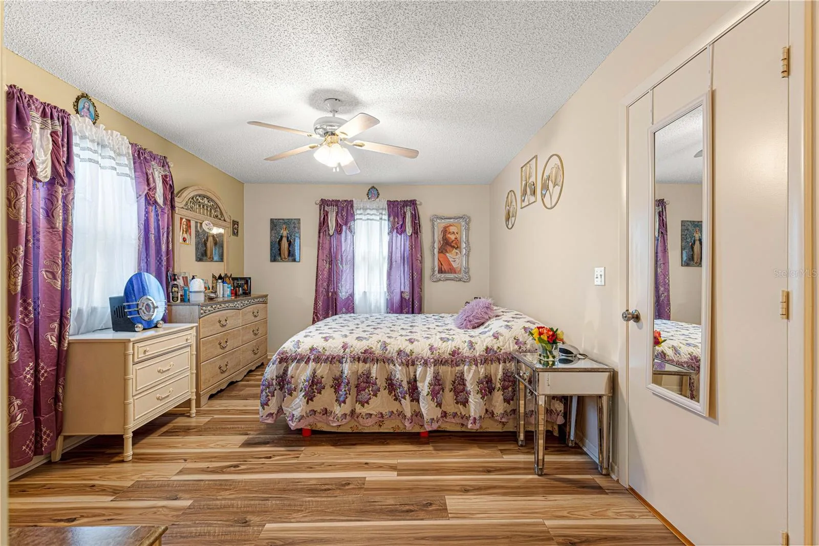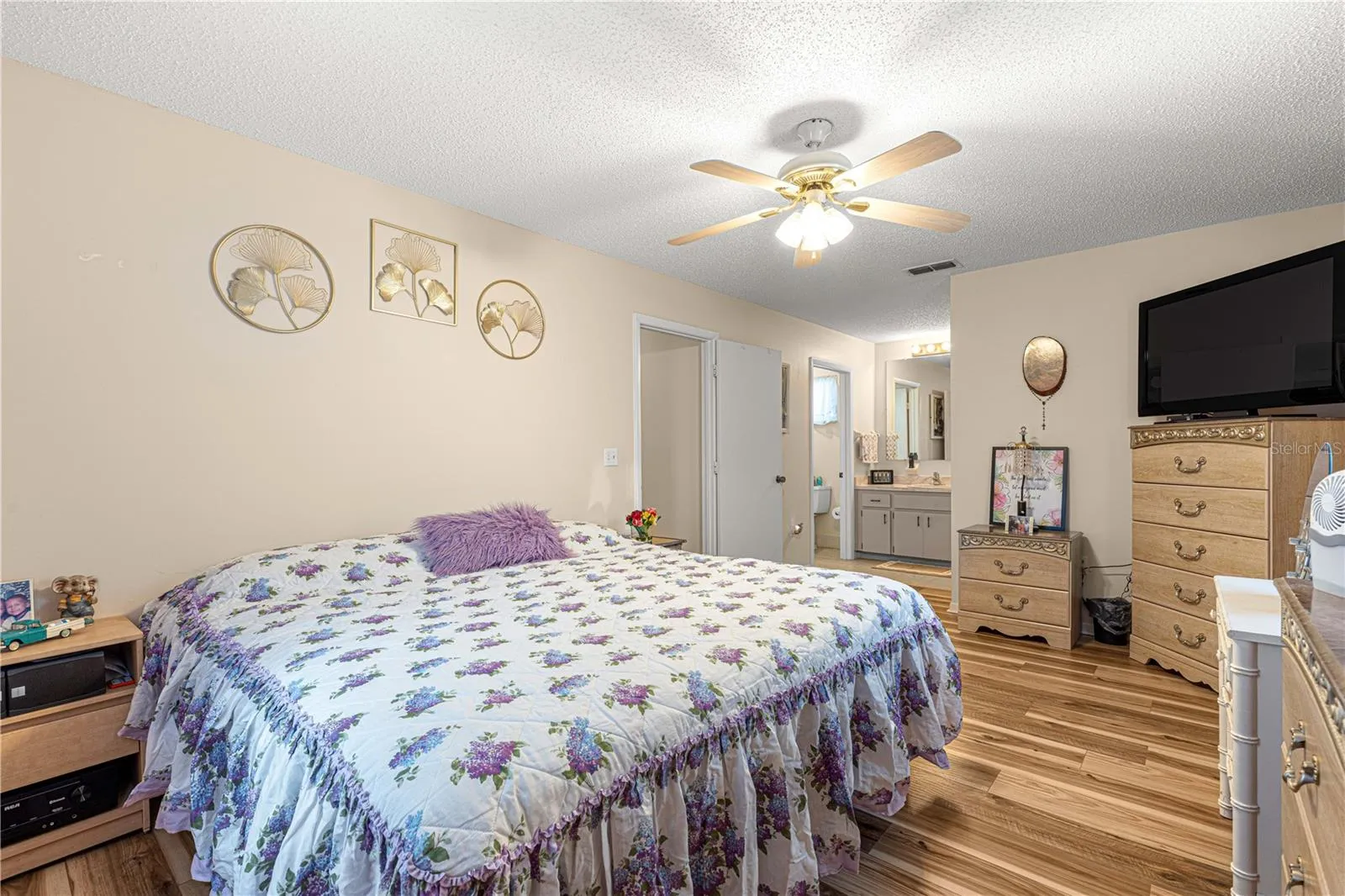 Welcome to this charming 2-bedroom, 2-bathroom home on a desirable corner lot in the 55+ community of Oak Run. Featuring laminate wood flooring throughout, including new flooring in the master bedroom (2024), this move-in ready home offers comfort and convenience. The kitchen comes fully equipped with all appliances, while the primary suite includes a walk-in closet and a walk-in shower. A sliding glass door leads to the screened lanai—perfect for relaxing. Additional highlights include ceiling fans throughout, a 1-car garage with washer and dryer, garage door opener, screened garage door, full gutter system, a 2020 roof, and a chain-link fenced yard. Enjoy all the amenities Oak Run has, including golf, pools, fitness, and a vibrant active lifestyle.