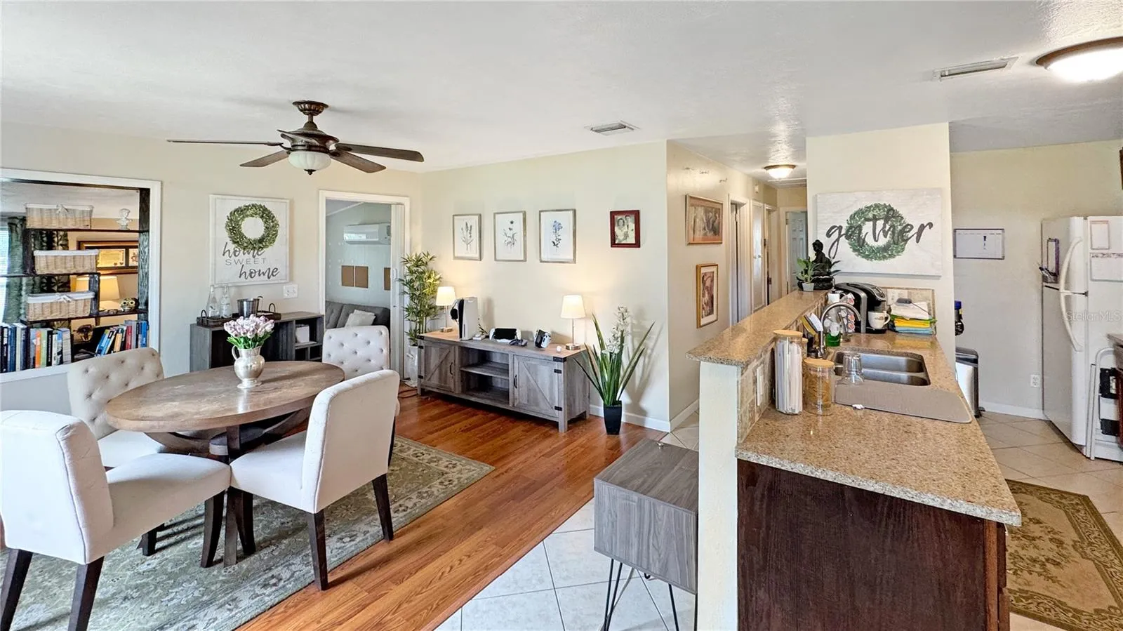 The kitchen is fully equipped with modern appliances, ample cabinet space, and a convenient breakfast bar that flows seamlessly into the dining and living areas—perfect for entertaining or relaxing with family. The primary suite includes a walk-in closet and en-suite bath with a shower/tub combo.