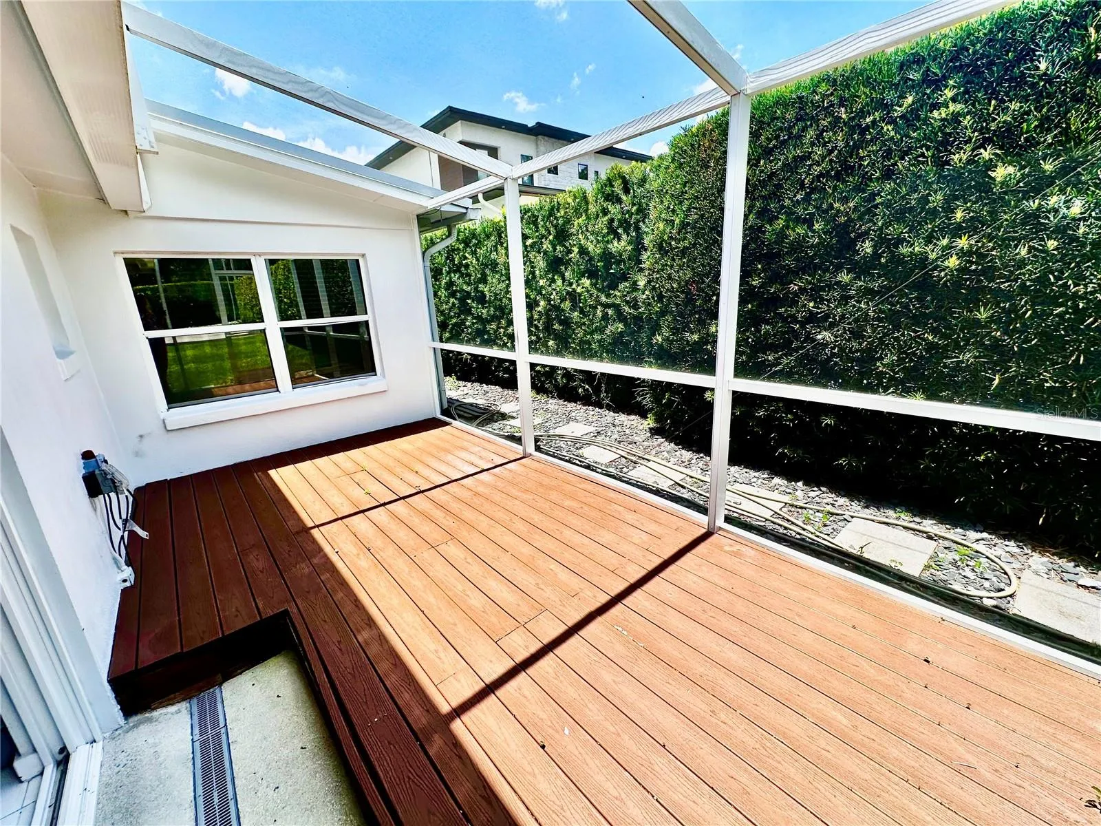 Enjoy year-round outdoor living in the spacious private screened enclosure — perfect for relaxing, dining, or entertaining..