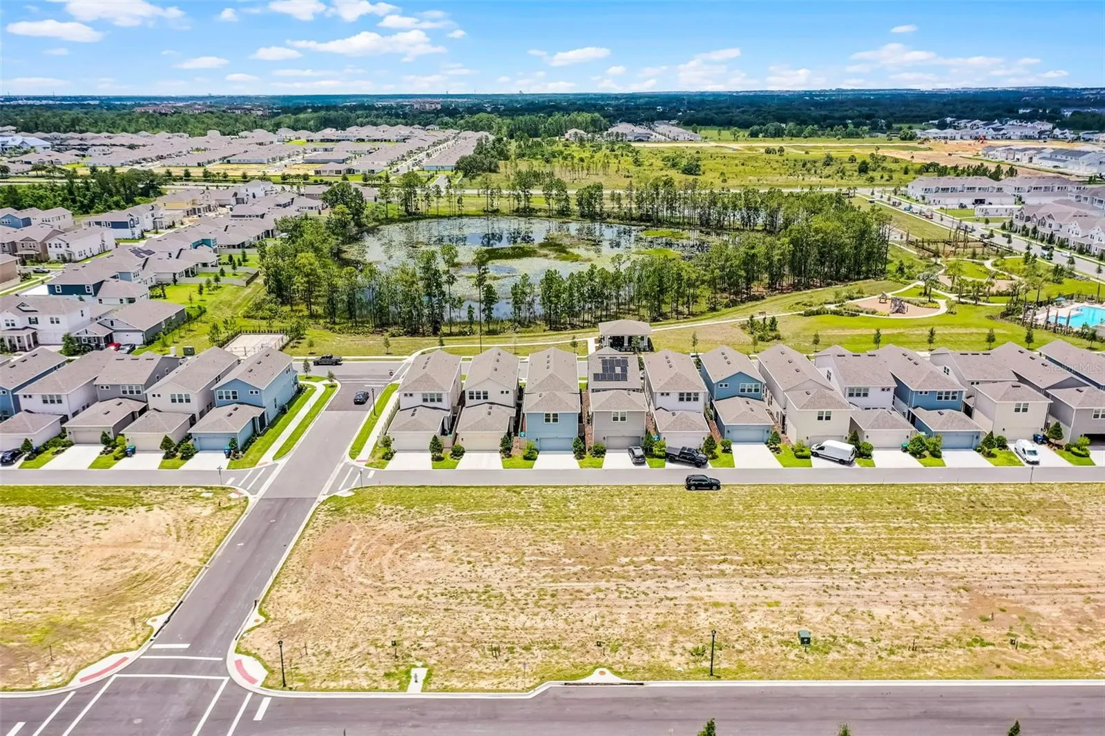 Upstairs, a beautiful staircase with wood treads, white painted risers, and spindles leads to the luxurious owner’s suite, complete with dual vanities and a spacious walk-in shower. The secondary bedrooms feature balcony access and enjoy panoramic pond views and a front-row seat to the Disney fireworks. The full secondary bath, and laundry room complete the upper level. Notably, this home features no carpet. Luxury tile and engineered hardwood flooring span both levels. NATURAL GAS appliances help save on utility bills. Additional upgrades include custom closet organizers, overhead garage storage, recessed lighting throughout, a 20-foot fireplace surround, and more. Located in the highly sought-after Harvest at Ovation community off Hartzog Road, the home offers quick access to SR 429, US 192, and US 27, placing you minutes from Orlando’s major employers, theme parks, healthcare, shopping, and entertainment. You’re just 4 minutes from the gate of Walt Disney World, with Universal Studios and SeaWorld within 20 miles. Best of all, front and backyard maintenance is included in the HOA dues, and you’re just across the street from the neighborhood swimming pool and mailboxes. Nearby attractions include Flamingo Crossings, Disney Springs and Hamlin Town Center, with top restaurants, retailers like Anthropologie and Lacoste, and essentials such as Publix, Walmart, and Target. Residents enjoy resort-style community amenities including a pool, cabana, butterfly garden, playground, dog park, and scenic walking trails. With no detail overlooked, this home offers the perfect blend of luxury, functionality, and location.