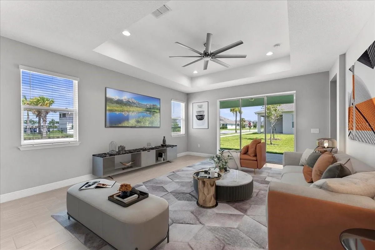 One or more photo(s) has been virtually staged. This stunning 5-bedroom, 3.5-bath Anna Maria with Bonus model is perfectly positioned on a corner lot directly across from the community pool and dock in Summerdale Park at Lake Nona. Designed with function and style in mind, the home features luxury vinyl plank flooring, a gourmet kitchen with quartz countertops, stainless steel appliances, wall oven, pot filler, and an oversized pantry.