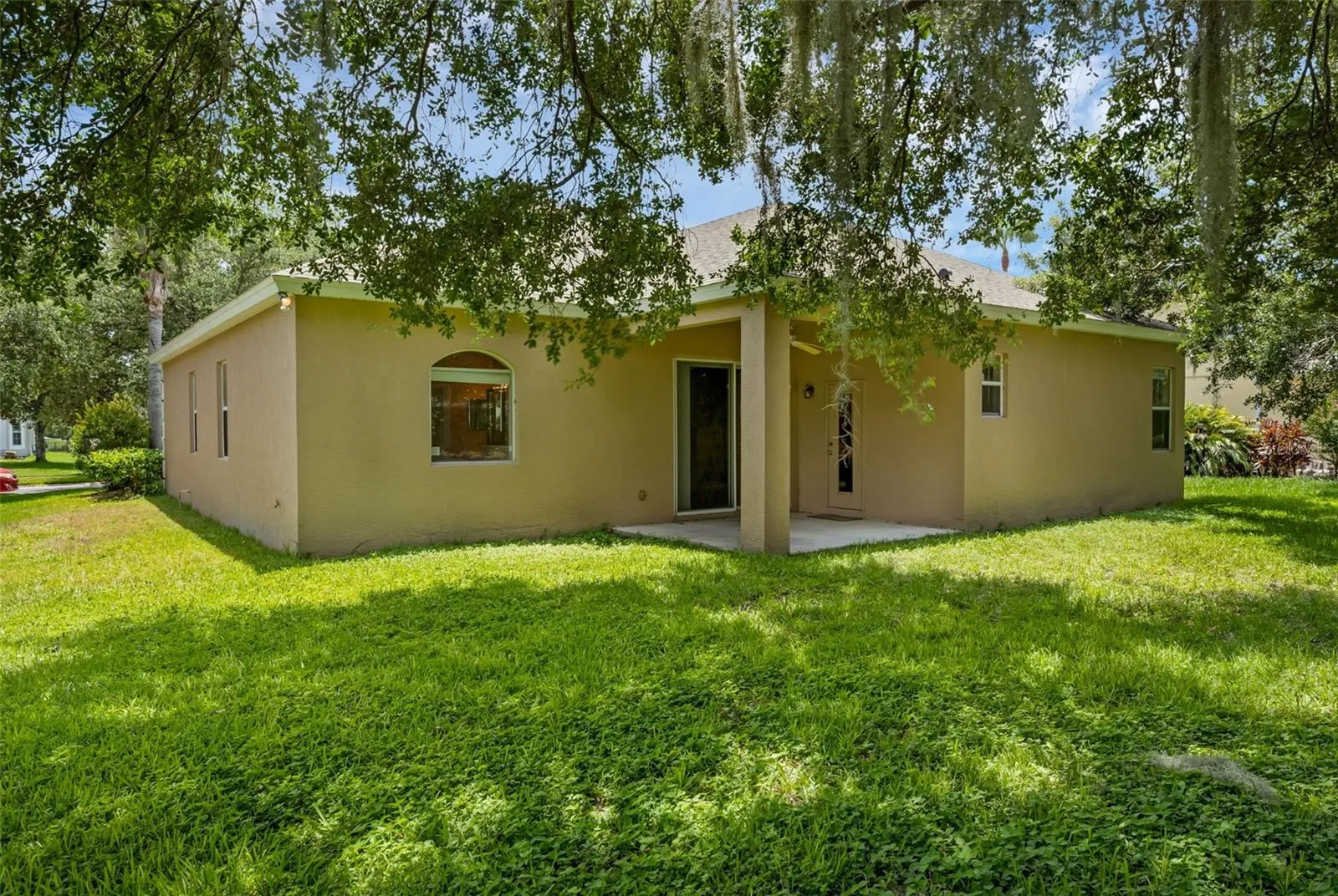 The privately located primary suite boasts a walk-in closet and spacious en-suite bath with a deep soaking tub. The sliding glass doors off the family room open to a covered rear porch, providing the perfect space for entertaining and enjoying Florida’s year-round outdoor lifestyle. Whether you are looking to spend the day relaxing under the sweeping oak trees or entertaining family and friends on this generous sized lot, this property is where memories are meant to be made.