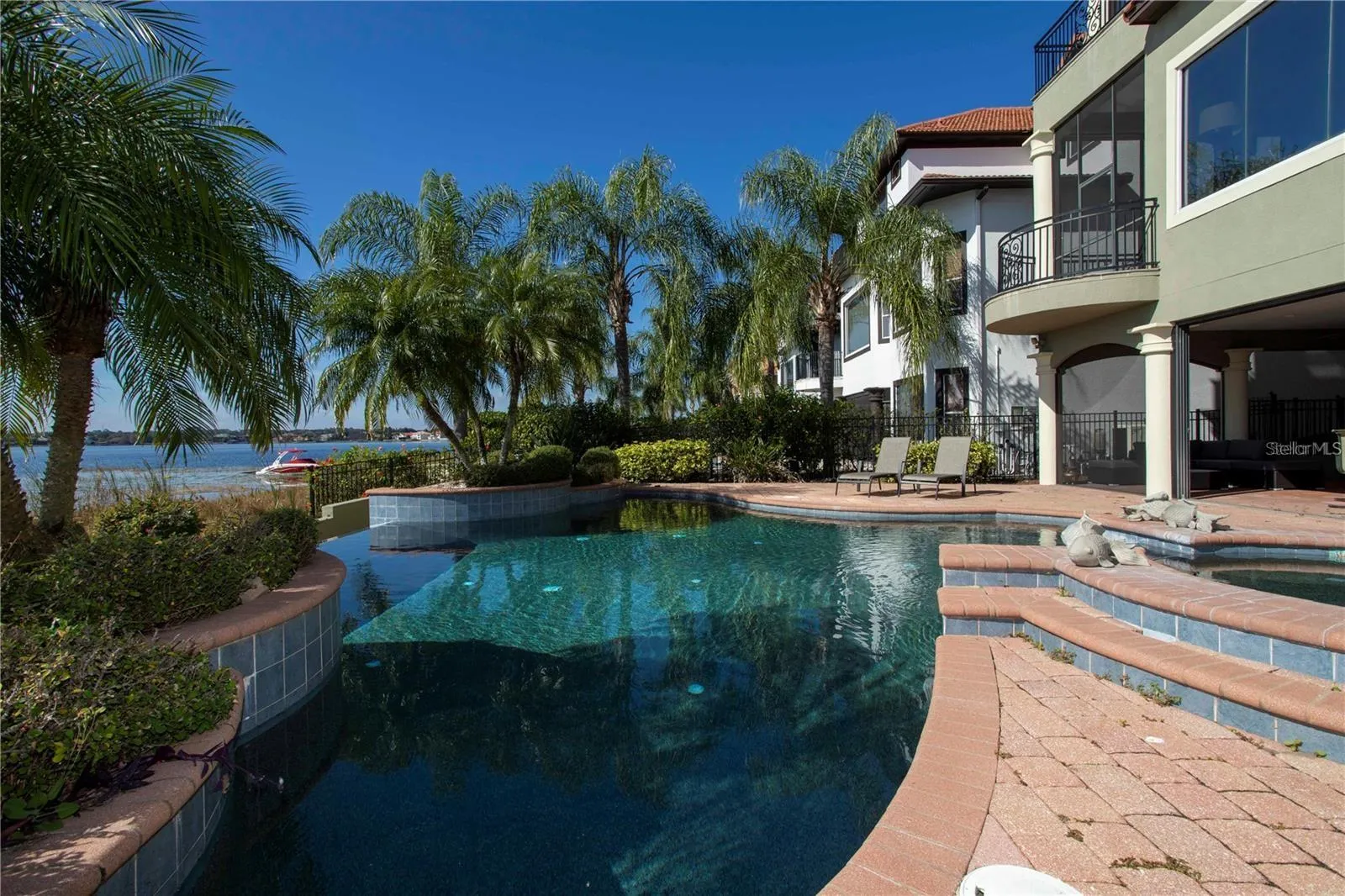 Welcome to this exceptional tri-level home on the shores of Big Sand Lake in the exclusive, guard-gated Vizcaya community. Fully furnished and move-in ready, this spacious residence offers panoramic lake views, nightly theme park fireworks, and unforgettable sunsets.