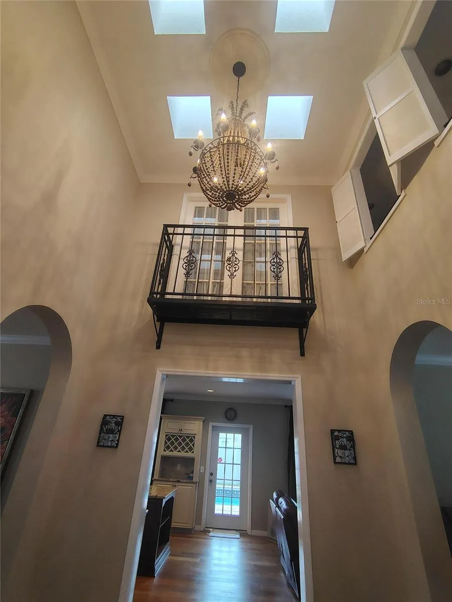 Inside the first floor you will find genuine saltillo tile floors delineating the high-traffic and entertainment areas such as the foyer, parlor, powder room, formal dining room, and central two-story atrium. Brazilian teak (Cumaru) hardwood floors cover the more intimate areas such as the family room, kitchen, staircase, upstairs hallways and bedrooms. Chandeliers, skylights, crown molding, plantation shutters, interior courtyard provide an airy ambiance and ample natural light throughout the home.