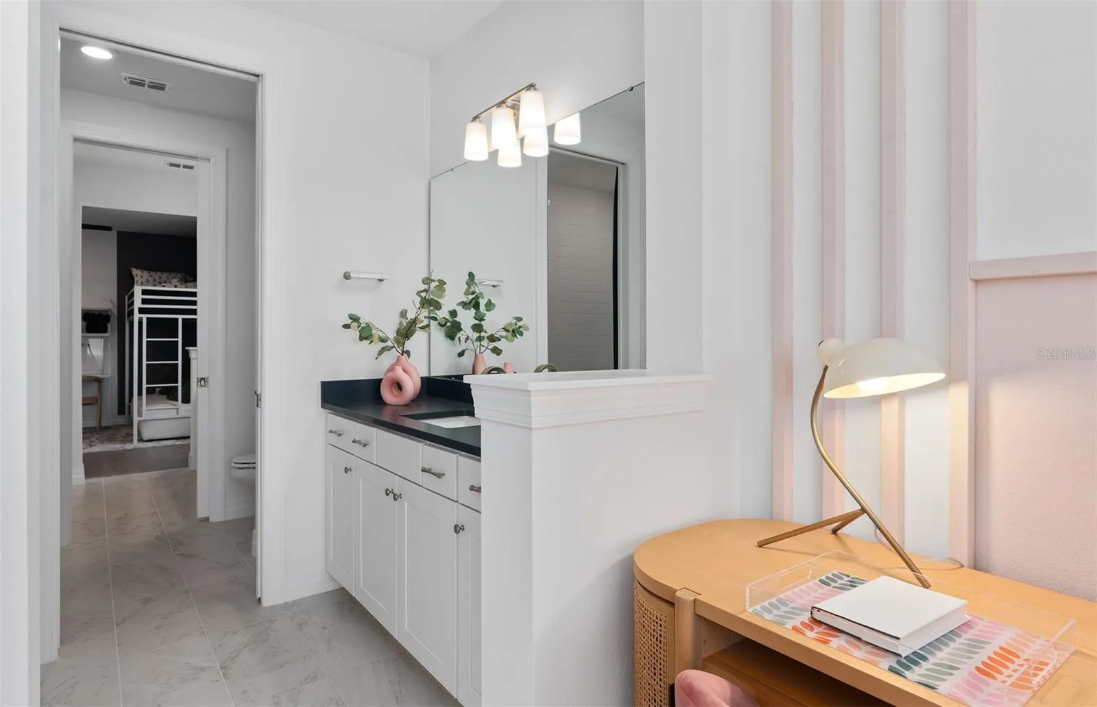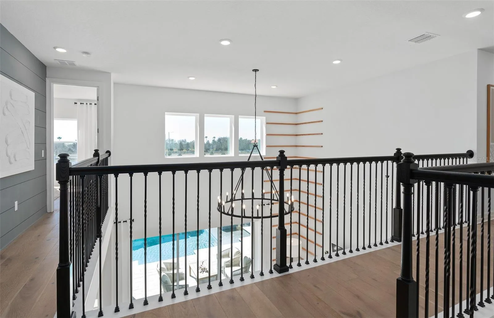 Introducing the exquisite Roseland Model home by Pulte! This stunning 5-bedroom, 5-bathroom masterpiece boasts an oversized homesite offering both privacy and natural beauty. As you step through the entry glass doors, you are immediately greeted by a striking foyer that rises to the second floor, setting the tone for the entire home. To one side, an enclosed flex room offers versatility, while the formal dining room invites effortless entertaining. From there, you enter the heart of the home—a chef-inspired gourmet kitchen. Equipped with built-in Whirlpool stainless steel appliances, including a wine cooler, the kitchen is a dream for culinary enthusiasts. Brellin Admiral Soft-close cabinetry is paired with exquisite quartz countertops, creating a timeless and sophisticated look, while a spacious walk-in pantry ensures ample storage. The open-concept design effortlessly connects the kitchen to the gathering room and cafe, where soaring ceilings create an airy, light-filled space, perfect for both intimate gatherings and larger celebrations. Connected by a pocket sliding glass door, the covered lanai with outdoor kitchen pre-plumb, offers a seamless transition to the outdoors, ideal for year-round entertaining. Also located on the first floor is a “Multi-Gen Suite” offering a spacious bedroom with its own linen closet, walk-in closet, and attached bathroom complete with a glass enclosed shower and quartz countertops. Upstairs, the private owner’s suite spans one side of the home, creating a peaceful retreat. The owner’s retreat area, ideal for reading or unwinding, leads into the spa-inspired owner’s bath, where luxury knows no bounds. A glass-enclosed shower, enclosed toilet, and double walk-in closets create a sanctuary of relaxation. The second floor also offers two additional spacious bedrooms connected by a Jack and Jill bathroom, ensuring both privacy and convenience, while a third bedroom enjoys its own en suite bath, providing an added level of comfort and luxury. The upstairs laundry room, with a utility sink and cabinets, makes daily tasks a breeze. With an intelligently designed layout and meticulously curated finishes, this home offers the perfect balance of form, function, and style. It’s the epitome of luxury living in a highly sought-after location, blending convenience, sophistication, and thoughtful design into a living experience like no other. Schedule a tour today!