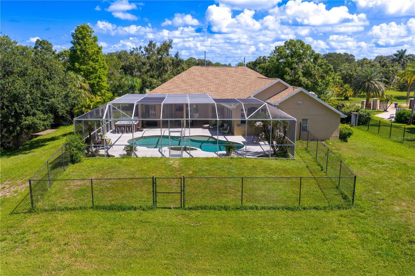 Step outside to your oversized screened lanai and take in the expansive views while enjoying your spectacular free-form inground pool, perfect for relaxing Florida days. The enormous deck area provides ample room for entertaining, with a covered area ideal for a wonderful outdoor dining experience for relaxing Florida days and nights. The 6+ person jetted jacuzzi spa is a perfect place to unwind and take in the backyard gorgeous sunsets and water views. Bring your fishing poles, golf clubs and volleyball nets! This expansive backyard gives everyone a place to play. There is also plenty of room for adding chickens, ducks, goats, horses, etc… !