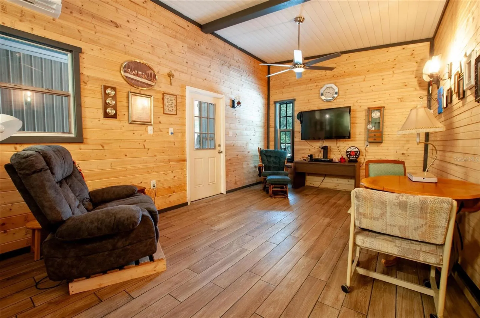 Welcome to this stunning barndominium-style home, built in 2022 and perfectly situated on 2.997 acres with an additional 1.326-acre parcel included! Offering the best of rural charm and modern convenience, this unique property boasts 2,310 sq. ft. of space with hurricane-impact windows, a 2022 roof, and two energy-efficient mini-split units providing both air conditioning and heat. Inside, you’ll find 810 sq. ft. of finished living quarters, an inside laundry room, and an additional 680 sq. ft. area already set up for a bathroom, shower, and living space—ideal for a guest suite or expansion. The entire building features a 10’ wraparound lean-to, offering shade and additional covered space. This home is built for versatility with two RV hookups (30 & 50 amp), a trailer setup with two slide-outs for guests, and a propane gas stove, Lenox propane furnace, washer, dryer, and dishwasher all included. Enjoy the Florida lifestyle outdoors with six different fruit trees, water treatment system on well, and plenty of room to grow.