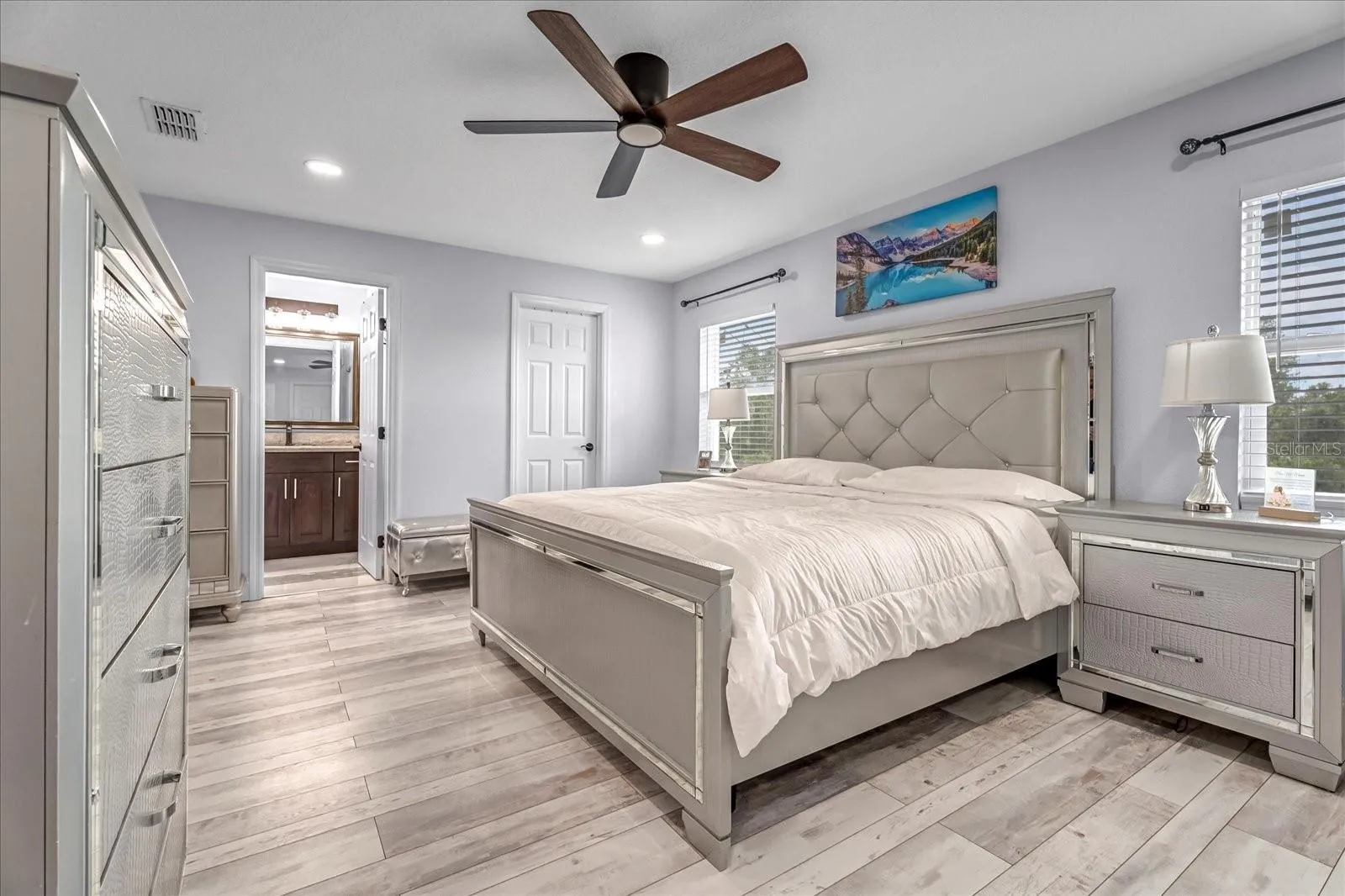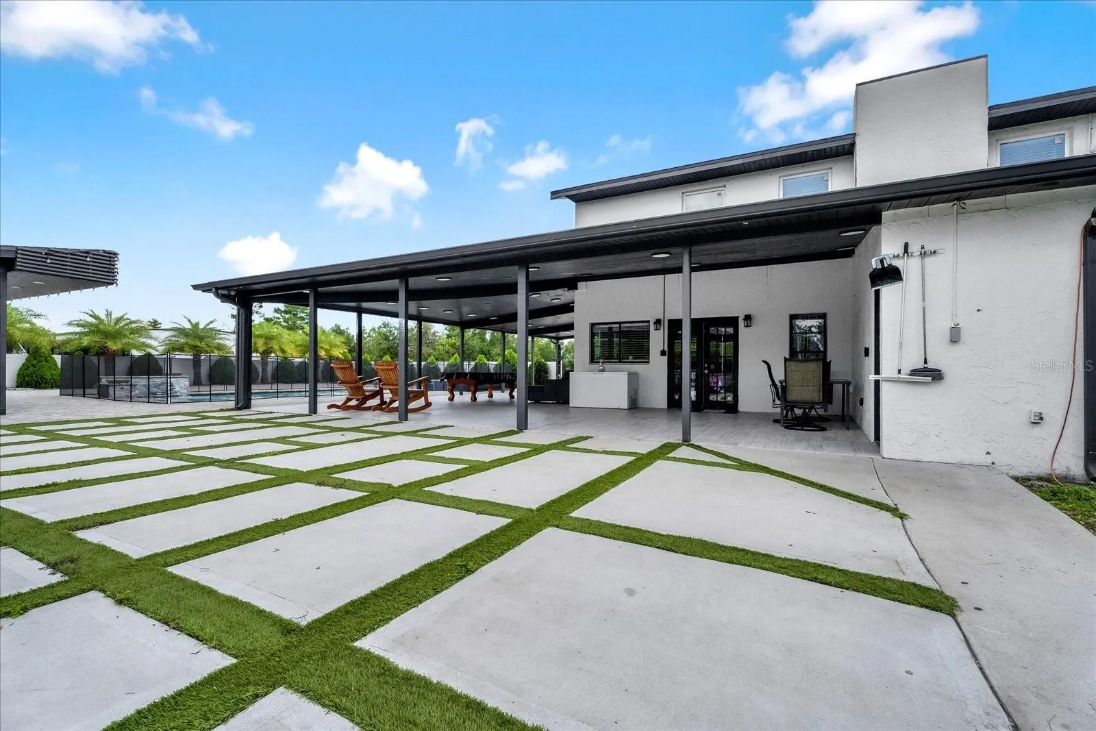 Welcome to your own private retreat! This stunning two-story pool home sits on 2.37 secluded acres and offers the perfect combination of luxury, space, and functionality. With 6 bedrooms, 5 full bathrooms, and countless upgrades throughout, this home is ideal for large families, multigenerational living, or anyone who loves to entertain in style. The main floor features a spacious primary suite with beautiful ceramic tile flooring, a walk-in closet, and a private ensuite bathroom. Two additional bedrooms on the main level feature hardwood flooring and ceiling fans, sharing a full hallway bathroom. The home boasts a living room with a cozy electric fireplace, creating a flexible space for both relaxing and gathering. The home features two full kitchens, each equipped with solid quartz countertops, stainless steel appliances, rich wood cabinetry, and a double bowl sink. One kitchen includes a walk-in pantry, breakfast bar, and an adjacent laundry room for added convenience. Upstairs, you’ll find a second primary bedroom with a walk-in closet, along with two more generously sized bedrooms that feature hardwood floors and ceiling fans. A shared hallway bathroom completes the upper level. Step outside to the covered back porch, where you can unwind or entertain while overlooking your private, resort-style heated pool and spa. The pool area features pavers, elegant water features and is enclosed by a vinyl privacy fence. Also, an outdoor gazebo with kitchen that is perfect for unforgettable backyard BBQs and pool parties. In addition to the home’s impressive interior, the property includes a massive 50×70 metal workshop with electricity, offering ample space for hobbies, storage, or a home-based business. There’s plenty of room to park a boat, RV, or any other toys you desire. The home also features two gated entrances, one off Cedar Avenue and the main entrance off Cypress Avenue, providing ultimate privacy and ease of access. With the roof replaced in 2023, A/C system and water heater installed in 2019, this home is move-in ready and waiting for its next owner to enjoy. Don’t miss this incredible opportunity to own a private, spacious, and amenity-packed home that truly has it all!