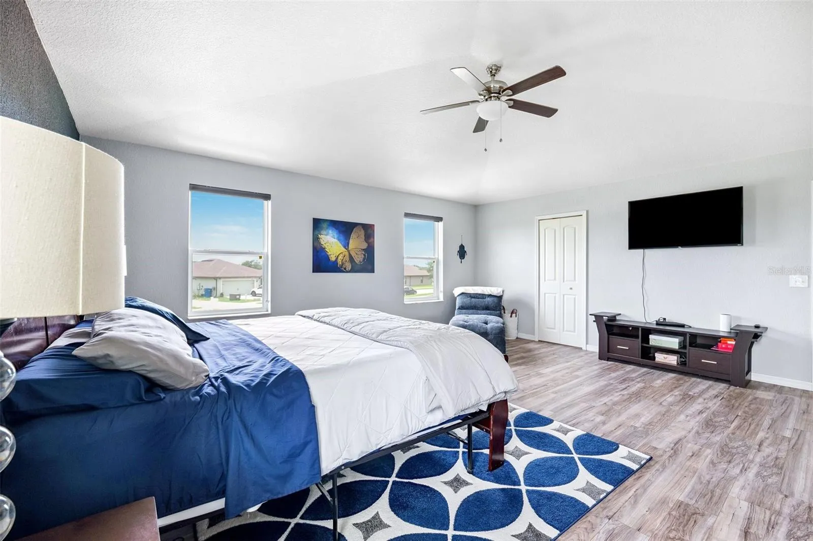 Enjoy peaceful outdoor living year-round on the beautifully paved, oversized patio with room for dining and a custom fire pit. This home includes Cat-3 hurricane impact windows, Levelor layered window treatments, smart home features, a Ring video system, and is still under builder warranty until 2026. No rear neighbors provide exceptional privacy, along with a fully fenced backyard – new vinyl fence 2025 and the home is located in a non-flood zone with underground power lines—never losing power during storms, including Hurricane Helene and Milton.