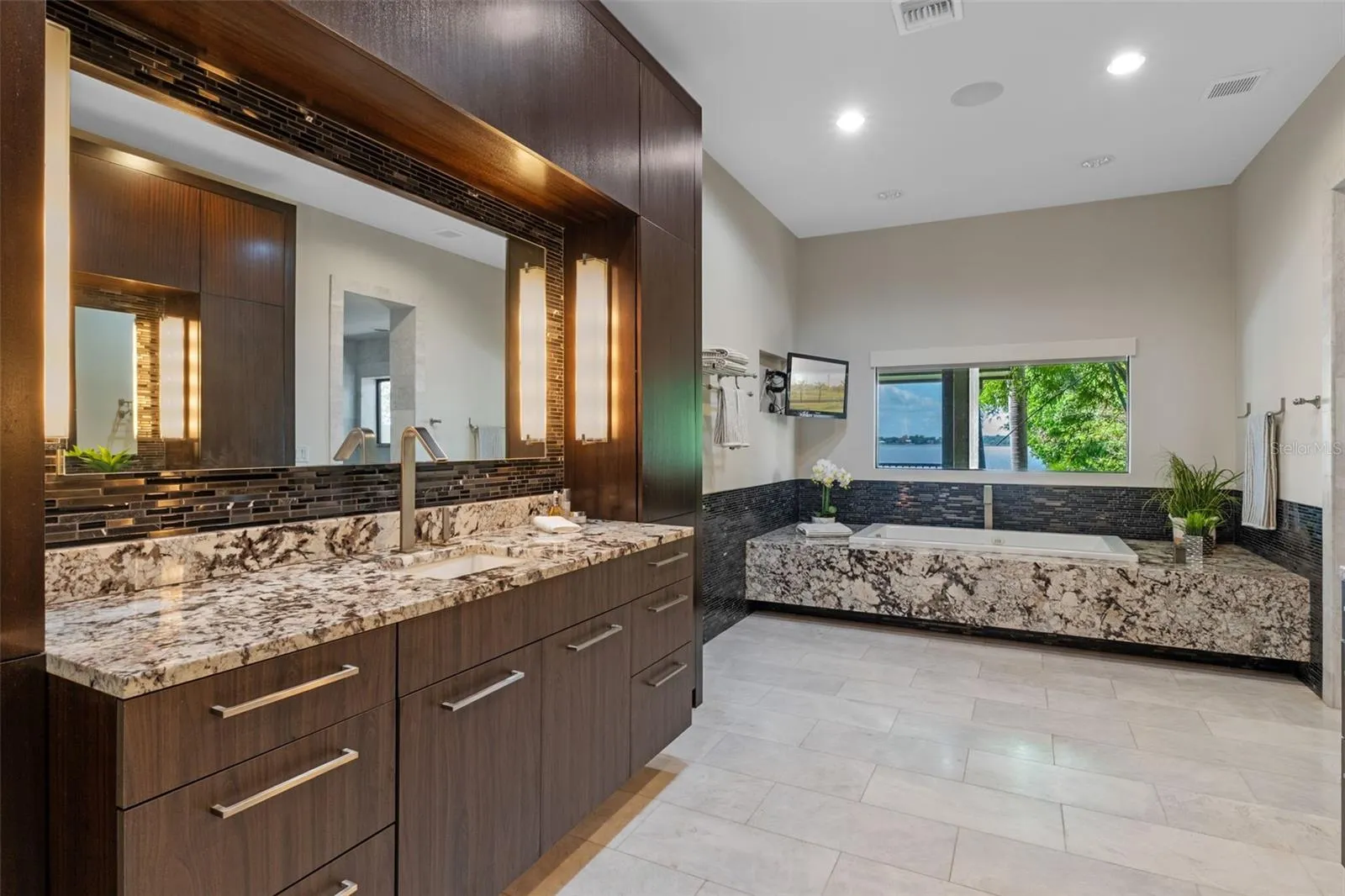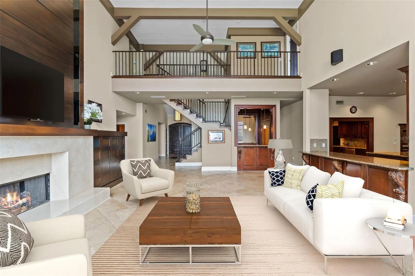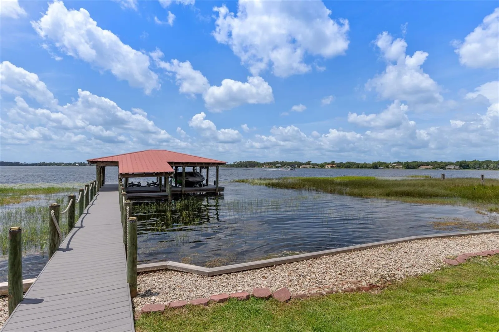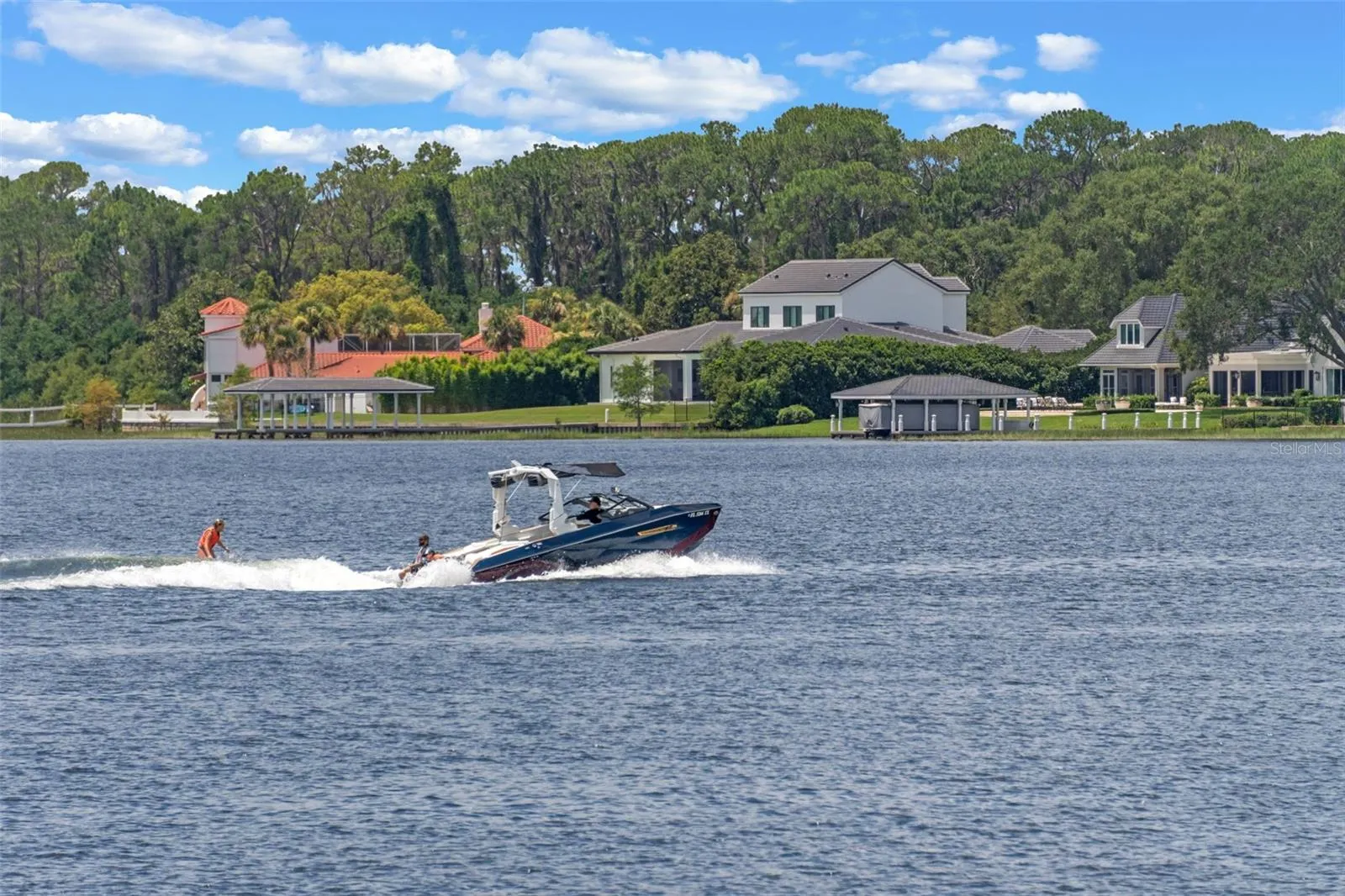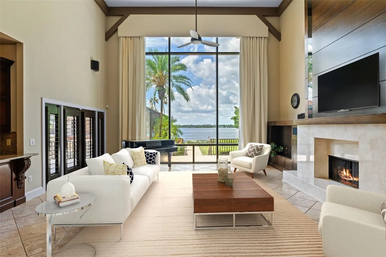 Enjoy stunning sunsets from your private estate with expansive views, located on Lake Down, the prestigious Butler Chain of Lakes in Windermere. This well-appointed property features 2.78 acres with fully fenced terraced grounds, electric security gates, brick pavers, mature landscaping for privacy, and 130 feet of water frontage with a seawall, enclosed boat house, dock, and lift. The heated 7,363 square feet of living space includes the main home with 4 bedrooms and 5 bathrooms, as well as a lake guest house. Most rooms are graced with breathtaking views. Almost 10,000 square feet under roof, with a porte cochere, extensive balconies, walkways, outdoor kitchen, and multiple patios. The screened pool area has an inviting resort feel, complete with a waterfall, slide, and hot tub, all connected to the outdoor entertainment areas. Many quality upgrades, expansive ceilings with craftsman woodwork, wood and marble floors, formal dining with a music room, and fireplaces in the living, family room, and primary bedroom. The living room features a floor-to-ceiling window with remote-control blind, taking full advantage of the priceless view. The main staircase gives a dramatic vantage point to appreciate the open floor plan, ideal for entertaining. The well-appointed kitchen features a chef’s prep kitchen, electric and Wolf gas double oven, two Sub-Zeros, double dishwashers, and a built-in espresso machine. All kitchen elements are set within rich wood custom cabinetry and granite countertops, with a breakfast room that leads to the pool area. The guest bathroom, laundry & family room are all conveniently located near the pool. The primary suite is downstairs and includes a private screened porch, remote-control blackout blind, custom cabinet with washer & dryer, and a large master bath with a soaking tub, walk-in shower all with elegant stonework. The suite is adjoined by a generous custom closet, safe for valuables, private gym with mirror, rubber floor, bonus storage, and a private staircase to the upstairs. Upstairs features large bedrooms with lots of closet space, balconies overlooking the water with Ipe decks and a secondary family room or playroom for the family. The lake cottage spells fun with balconies all around and views of the water and pool on three sides. Open beam ceilings, bamboo and new luxury vinyl wood floors, full kitchen & living room upstairs with a full bedroom and bath downstairs complete with a wet bar. The property has rear yard access down to the lake, great for boat parking or extra parking when you rally the team for a volleyball match on the court. You can also utilize the tennis courts & private boat ramp just a short walk down the street. There are too many low maintenance, cost saving features to list, but a few include; energy efficient solar power, metal roof, and three on demand propane powered gas water heaters. There are over $55,000 in solar panels that will save countless dollars over the years and is good for the environment. The electric bills are minimal. As I mentioned earlier Ipe hardwood is the best exotic hardwood the industry has to offer and it was used on the extensive decks for low maintenance. A new two horse sprinkler pump was recently installed that draws from the lake to maintain the exotic landscape. The durable easy to clean composite dock has two lifts & two boat slips. The owner will even throw in the $50,000 ski boat (approx Value) with an acceptable offer.
