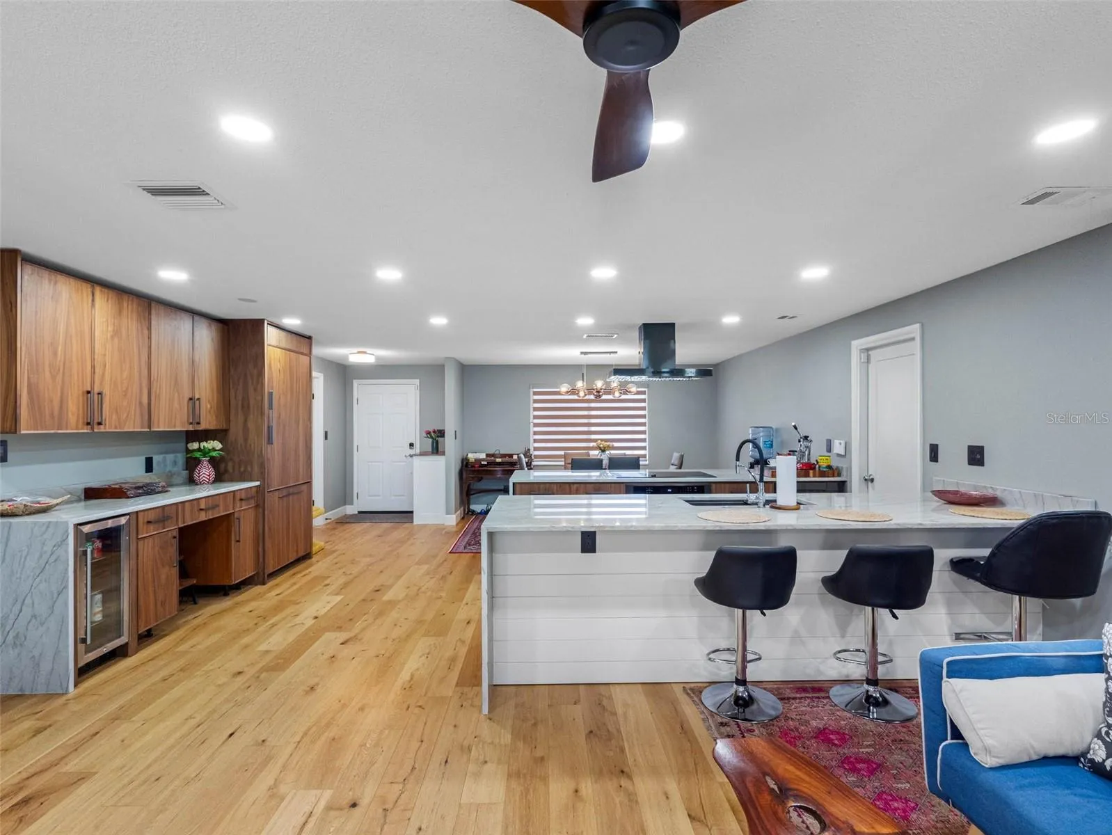 Welcome to your new home in central Clearwater . Located just a 5 minute drive from Dunedin and Safety Harbor , and a short drive to Clearwater beach . This home is fully updated . All impact windows and doors brand new roof with solar attic fan completed in 2024. The kitchen has all high end appliances panel ready Thermador refrigerator and dishwasher and also a microwave drawer and induction cooktop with built in convection oven. New washer and dryer located in the garage with an updated 200 amp electric panel. Brand new water heater! Also brand new bathrooms with massage shower in master bath and bidet seats in both bathrooms. All closets has built in shelving . The home hase 5 bedrooms, one is being used as an office right now but has a murphy bed for a guest. The home also has a huge bonus room which could be used as a gameroom or a home office or workplace. Ceiling speakers in bonus room. This home is ready to move in with gorgeous high end finishes like quartzite waterfall countertops , engineered oak wood flooring custom appliances and all wood walnut cabinetry. Pool is getting resurfaced soon, and all that unfinished will be completed shortly after. So,injoy your worry free years , at your own private pool, sipping champagne…
