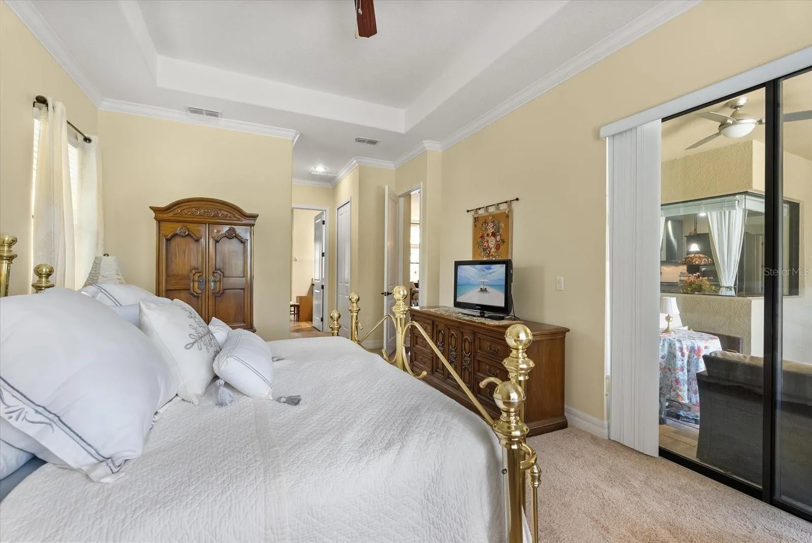 PRICE IMPROVEMENT! This beautiful home is located in the prestigious Red Tail Community with resort-style, golf course living! Discover true luxury in this elite gated community in Sorrento, where serenity, craftsmanship, and golf course living converge. This stunning two-story estate offers nearly 3,500 square feet of impeccably maintained space, featuring 4 bedrooms, 4 bathrooms, a dedicated office, and a generous upstairs bonus room —all set on a beautifully manicured homesite with golf course views. From the moment you arrive via the long paved driveway, you’re greeted by a striking stone-accented exterior, three-car side-entry garage, and grand double-glass door entry. Inside, the ambiance is immediately upscale—featuring dark hardwood flooring, formal living and dining rooms with crown molding, and designer lighting. The chef-ready kitchen is as functional as it is stylish, boasting dark granite countertops, with breakfast bar, built-in stainless-steel oven and microwave, gas cooktop with vent hood, and abundant custom cabinetry. Adjacent is a light-filled breakfast nook, and a spacious family room with views of the outdoor oasis—perfect for both entertaining and daily relaxation – all overlooking the screened pool and spa, complete with lounge shelf and covered seating—the perfect setting for outdoor entertaining or serene relaxation with golf course views. The primary suite is regal in proportion, with tray ceilings, walk-in closet, additional closet and a luxurious bathroom showcasing dual granite vanities, a glass-enclosed shower, separate soaking tub, and a secluded water closet. A home office with dual-access from the foyer and primary bath delivers seamless convenience and privacy. The other three bedrooms on the main level feature plush carpeting and ceiling fans, offering flexible comfort for family or guests. Upstairs, a spacious bonus room with its own full bath serves as an ideal entertainment hub, guest suite, or multi-purpose retreat. Living in Heathrow Country Estates means embracing a lifestyle built around peace and leisure—golf cart friendly, with vehicle restrictions ensuring tranquility and safety. Lush common areas, gently winding walking trails, and scenic landscaping create a serene backdrop for daily life. With nearby golf access, upscale neighbors, and close proximity to Sorrento’s Lake County lifestyle, you’ll enjoy both privacy and convenience. Book your exclusive showing today!
