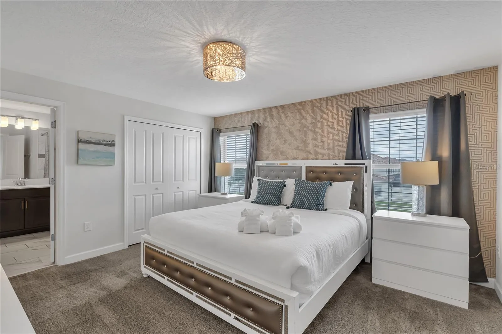 Welcome to 9005 Stinger Dr – a beautifully furnished 4-bedroom, 3-bathroom townhome located in one of Central Florida’s premier vacation resort communities: Champions Gate. This elegant, water-view property is just a short walk from the renowned Oasis Club, a multi-million-dollar resort complex featuring a resort-style pool, lazy river, fitness center, arcade, splash pad, and more.