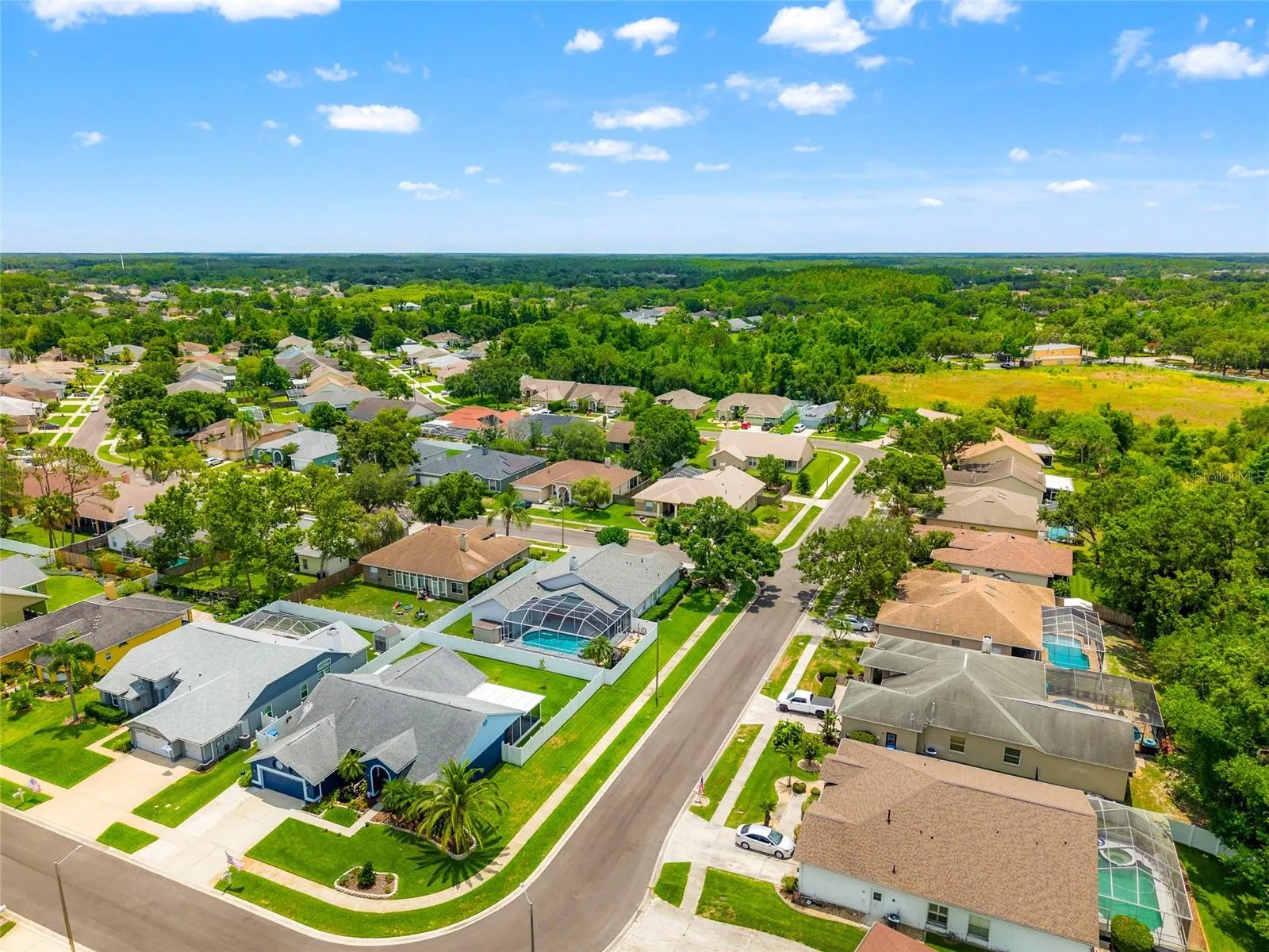 One or more photo(s) has been virtually staged. Welcome Home. This beautifully maintained 4-bedroom, 2-bath home offers 2,227 square feet of comfortable, single-story living. The home features ceramic tile flooring in the kitchen and baths, with durable laminate flooring throughout the main living areas and bedrooms-no carpet! The spacious kitchen is a standout with brand-new granite countertops, newer stainless steel appliances, and a functional layout ideal for entertaining. Freshly painted inside and out, this home is truly move-in ready. Enjoy outdoor living at its finest with an oversized screened lanai and a large, fully fenced backyard-perfect for gatherings or quiet evenings surrounded by lush landscaping and your very own koi pond. Located in a highly sought-after area close to top-rated schools, shopping, restaurants, and hospitals, this home offers both comfort and convenience in one of Wesley Chapel’s most desirable communities. Don’t you deserve this?