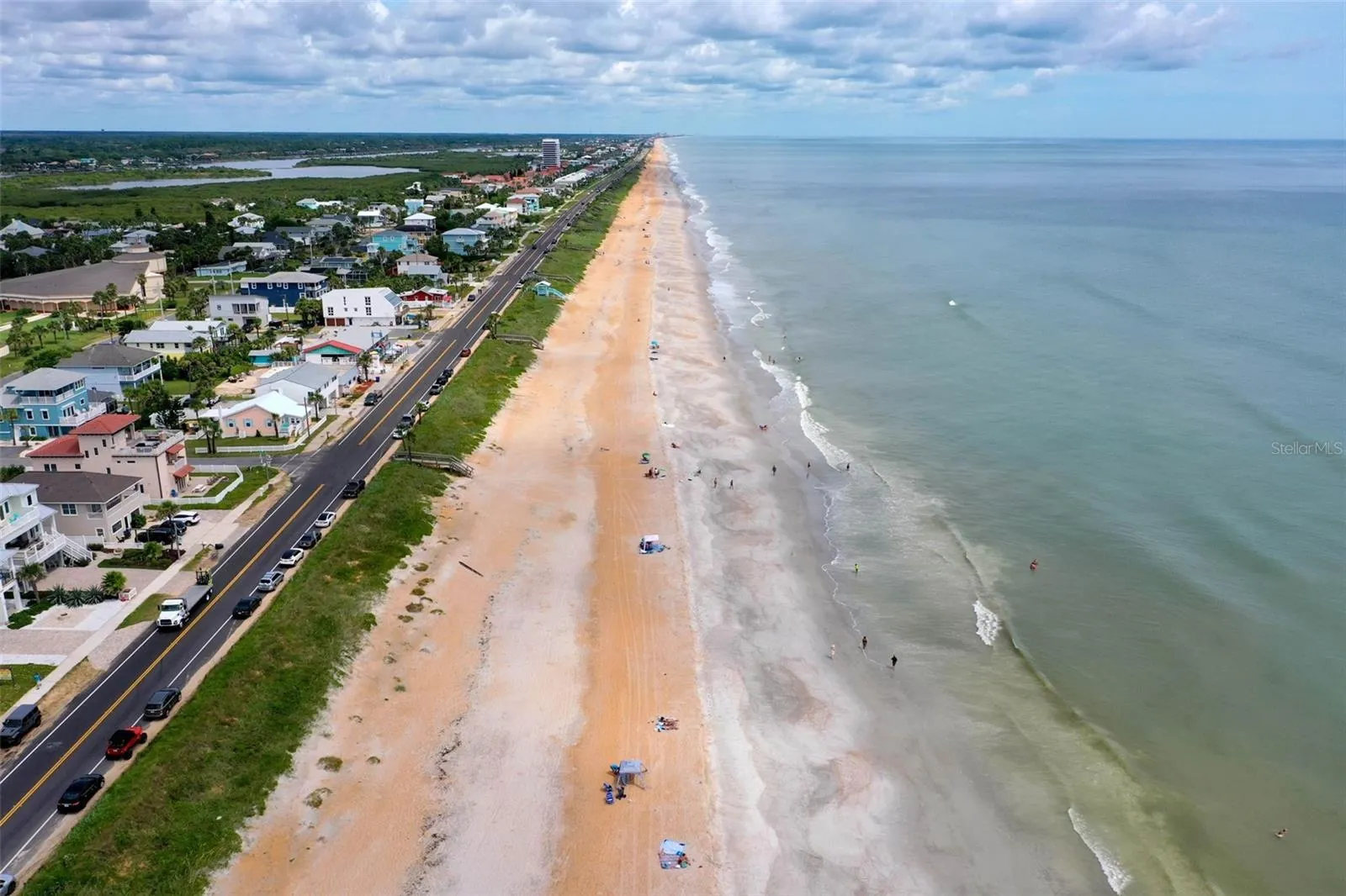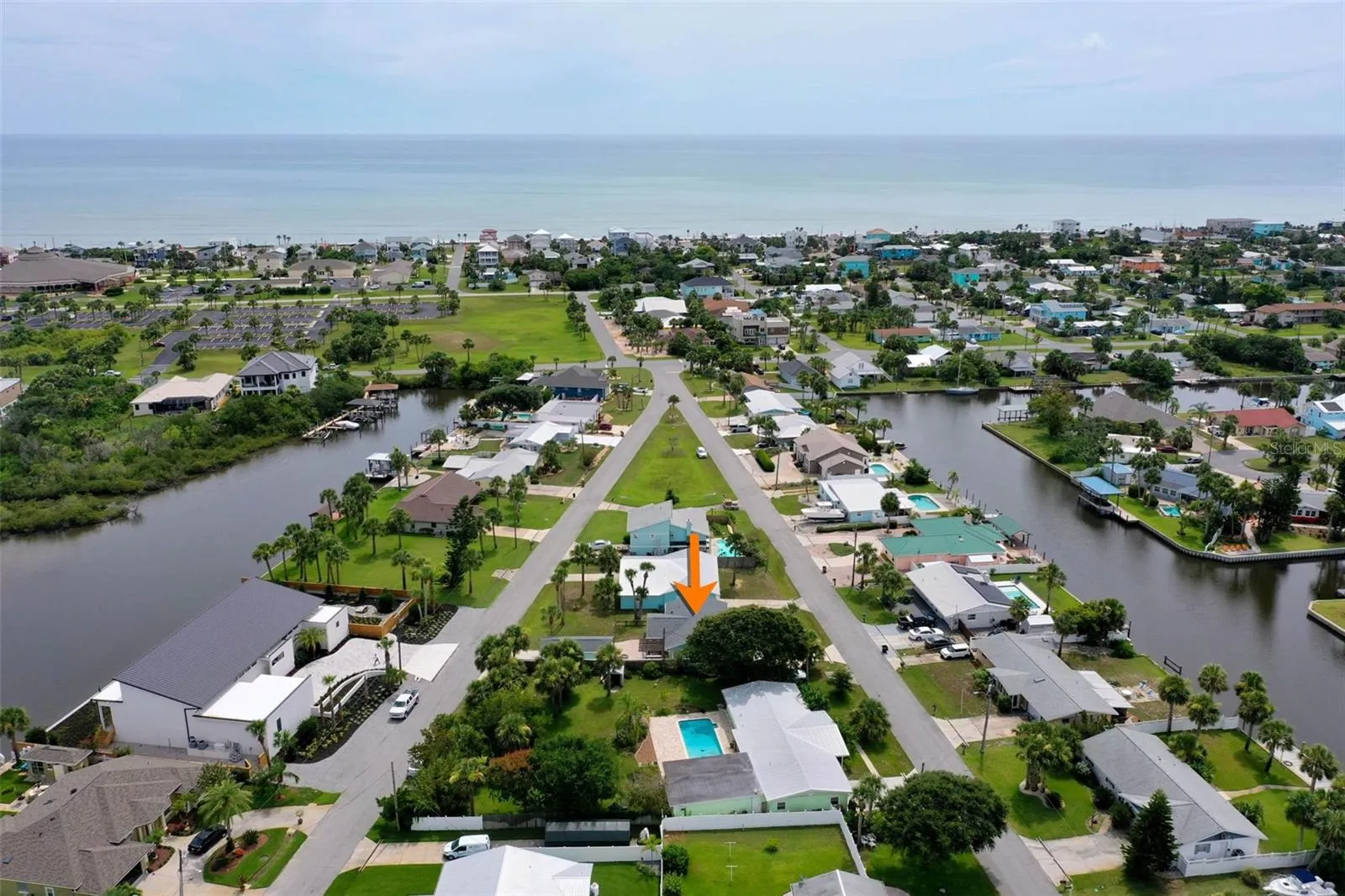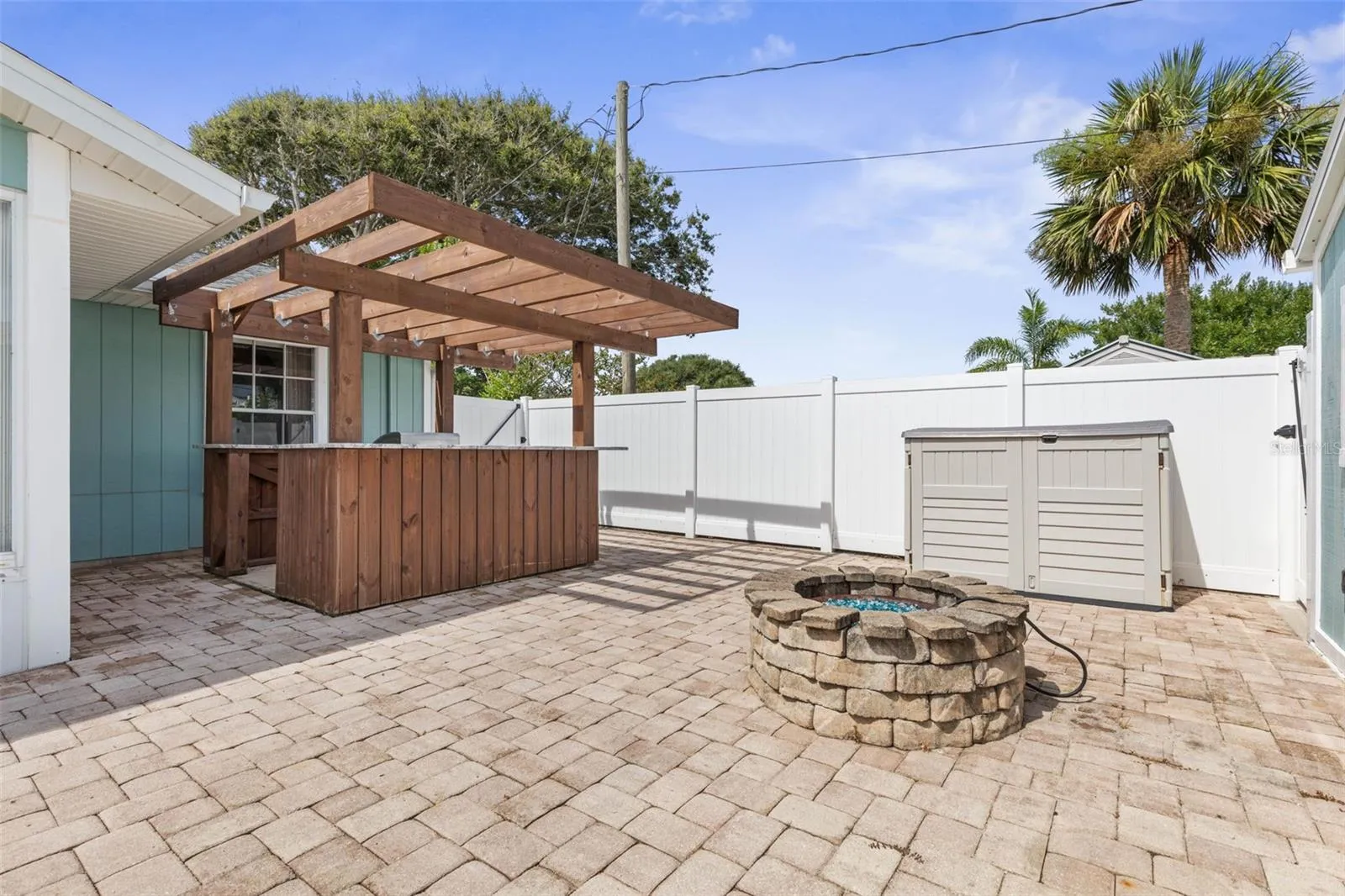The home includes an oversized one-car attached garage in the front, plus a large detached and fully finished garage/workshop in the rear—complete with air conditioning and 220V power, ideal for projects, storage, or a home workspace. Included in the garage is a portable whole house generator, powerful enough to run the A/C, refrigerator, TV, and appliances all at once, providing comfort and security during storm season. The expansive outdoor space features a private irrigation well, newer sprinkler system, outdoor shower, and a small fenced-in area perfect for your furry pet. A 700 sq. ft paver patio with a built-in bar creates the ideal setting for entertaining. After a day at the beach or in the workshop, relax with friends around the shimmering glass fire pit and enjoy the best of Flagler Beach coastal living. This is beach life at its finest, don’t miss your chance to see it!