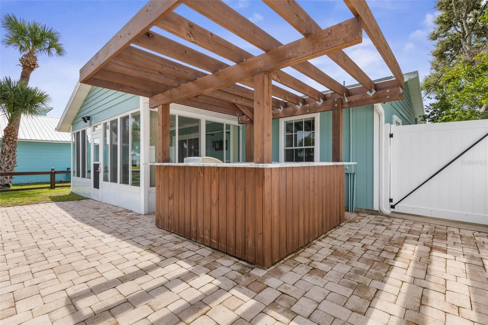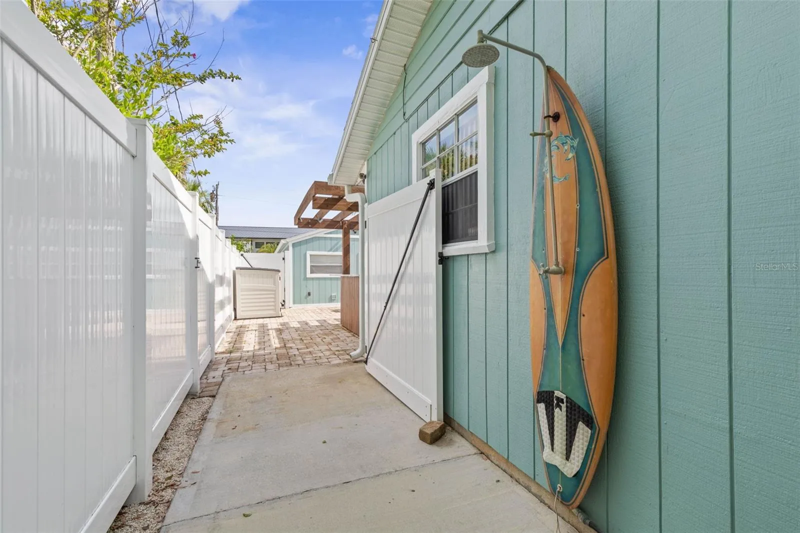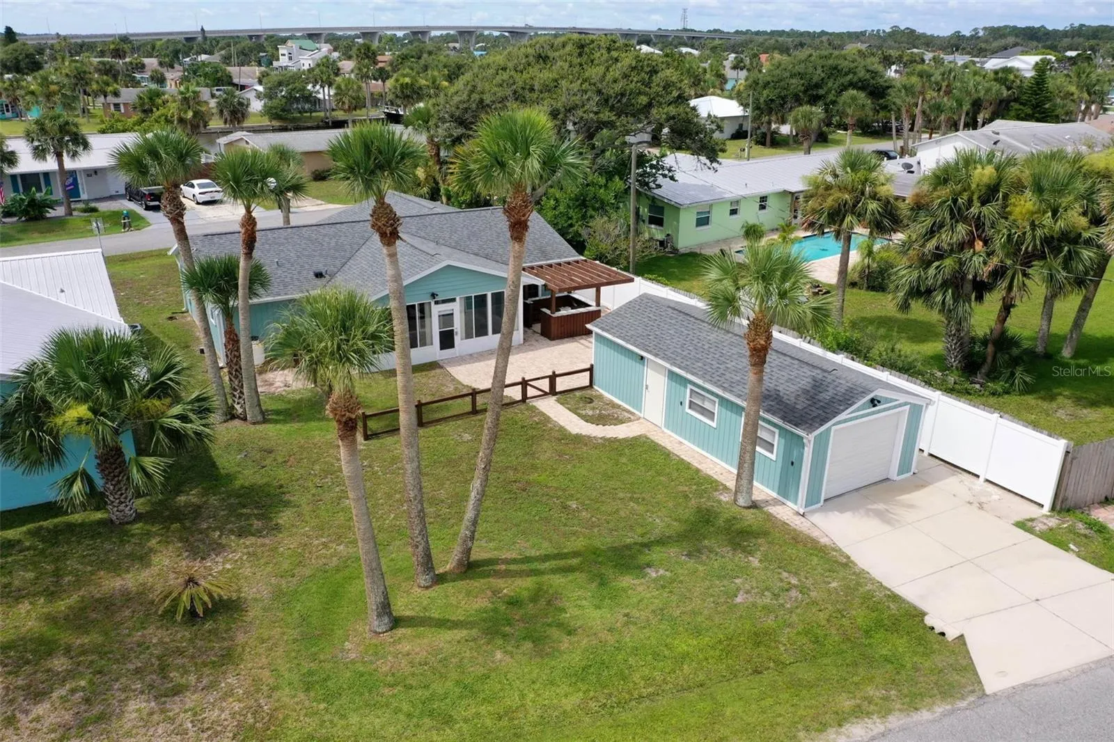 The home includes an oversized one-car attached garage in the front, plus a large detached and fully finished garage/workshop in the rear—complete with air conditioning and 220V power, ideal for projects, storage, or a home workspace. Included in the garage is a portable whole house generator, powerful enough to run the A/C, refrigerator, TV, and appliances all at once, providing comfort and security during storm season. The expansive outdoor space features a private irrigation well, newer sprinkler system, outdoor shower, and a small fenced-in area perfect for your furry pet. A 700 sq. ft paver patio with a built-in bar creates the ideal setting for entertaining. After a day at the beach or in the workshop, relax with friends around the shimmering glass fire pit and enjoy the best of Flagler Beach coastal living. This is beach life at its finest, don’t miss your chance to see it!