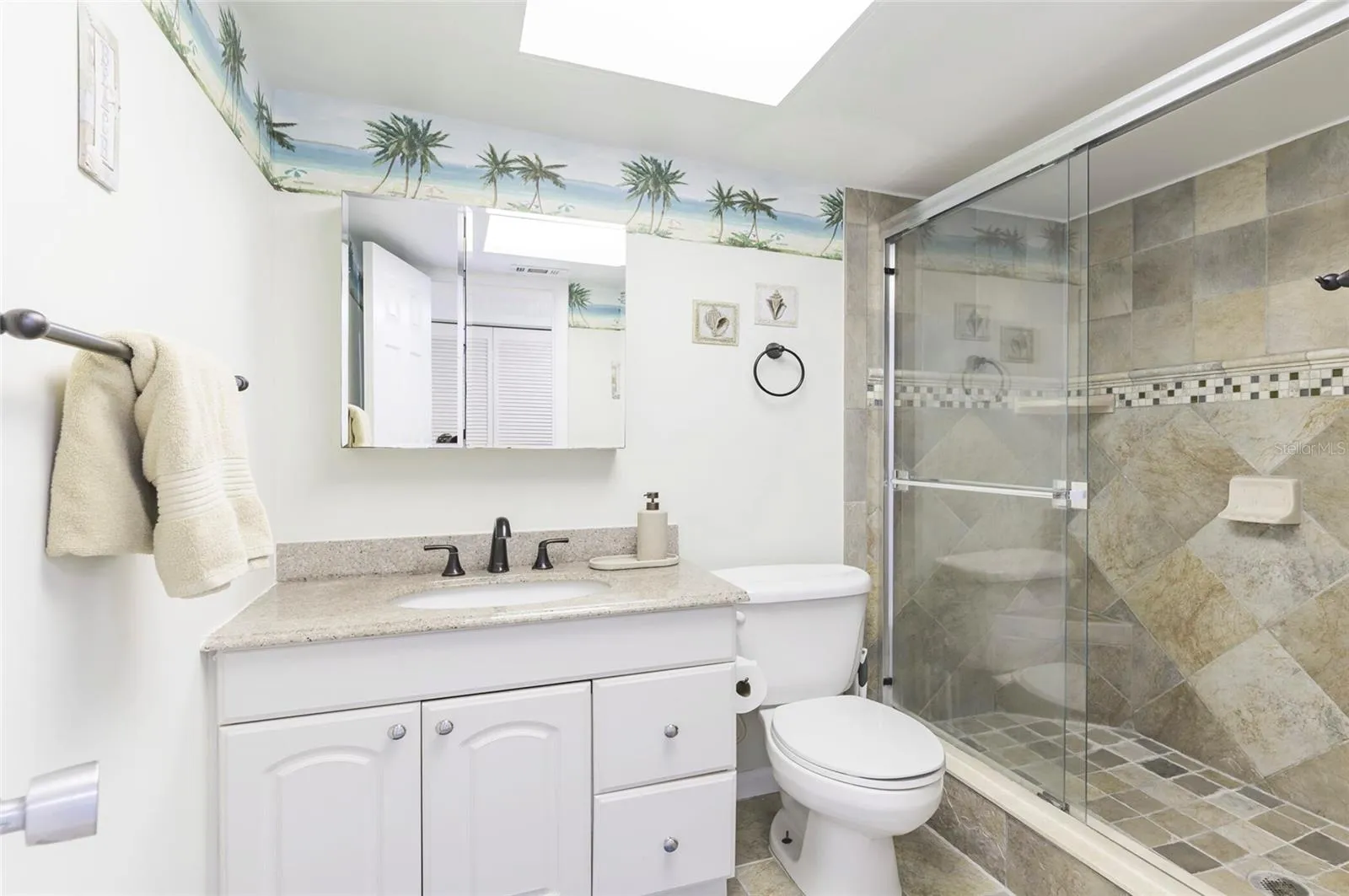 The fully stocked kitchen showcases pristine granite countertops and wood cabinets, complemented by BRAND NEW stainless steel appliances.