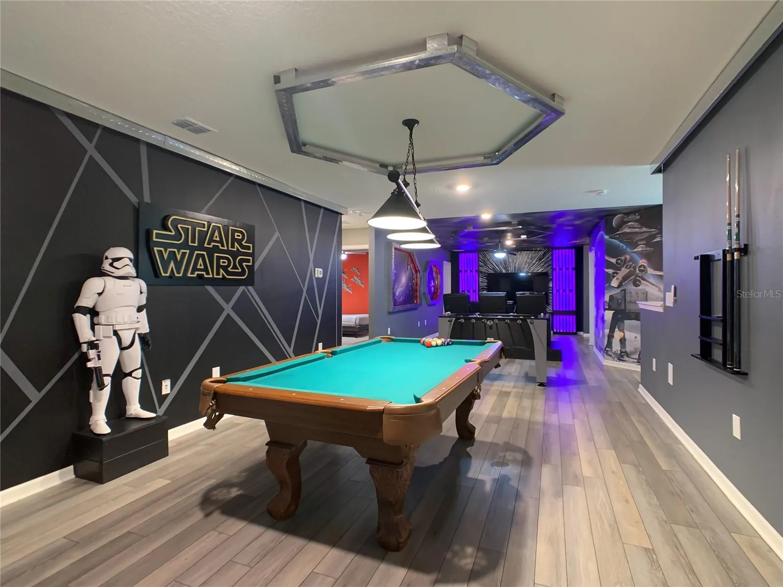 This beautifully upgraded and fully furnished 10-bedroom, 8-bathroom pool home is a rare find. The owner invested over $140,000 in custom upgrades and high-end finishes to make this home stand out. From designer lighting and accent walls to luxury flooring and themed bedrooms, every detail was thoughtfully selected for style and comfort.