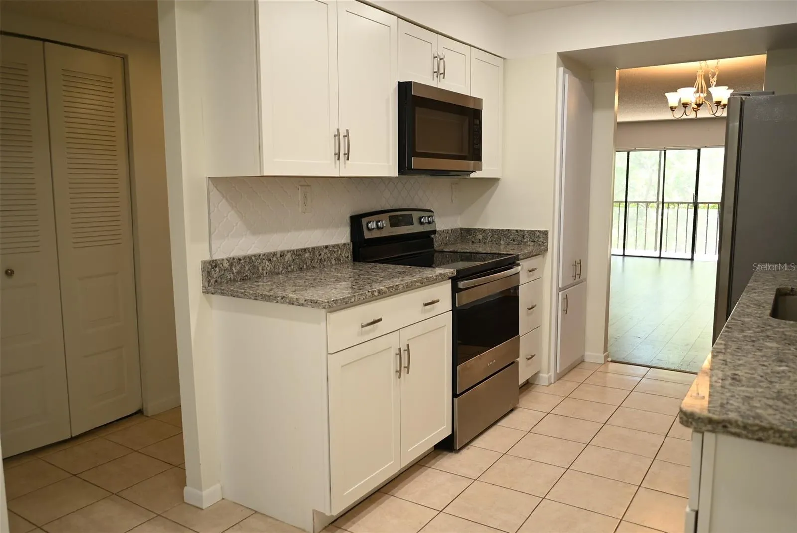 This condo on the 5th floor of the desirable 2800 building offers comfortable living in the heart of Cove Cay. The unit features easy-to-maintain laminate and tile flooring throughout, a modernized kitchen with granite countertops and stainless steel appliances, and partially updated bathrooms—one with a tub and the other with a walk-in shower. Enjoy relaxing on the screened balcony, which includes a laundry area and storage closet.