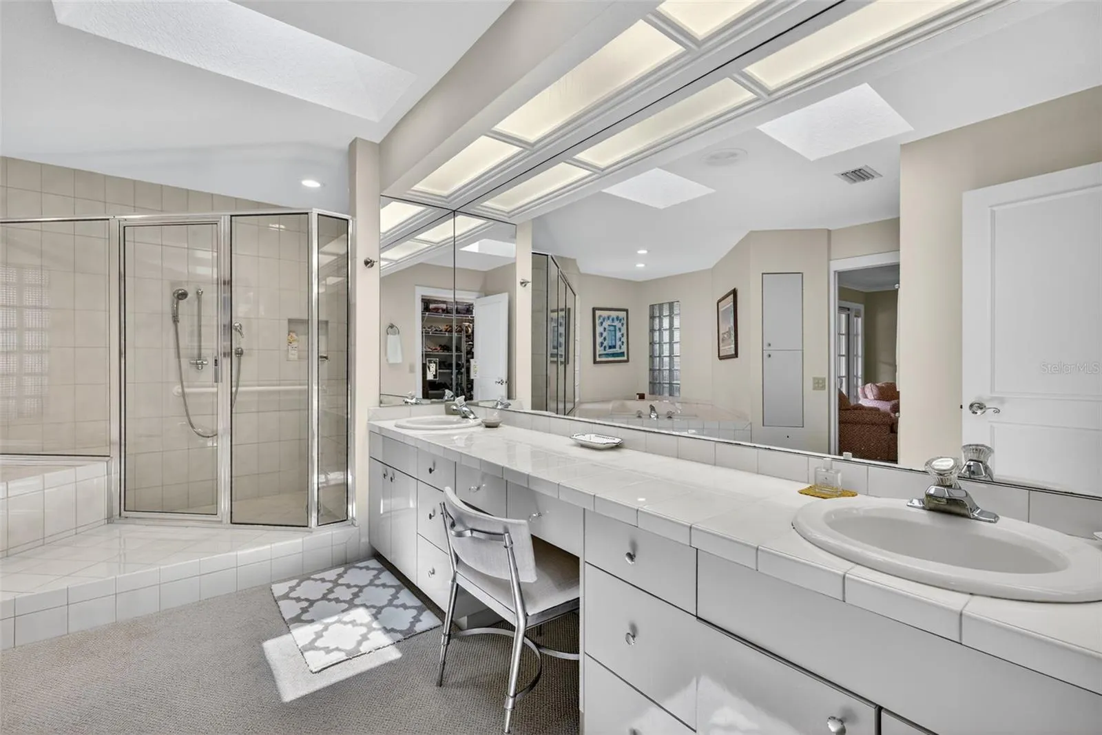 Natural light fills the upstairs thanks to skylights in both the loft and the spa-like primary bathroom, creating a warm and inviting feel throughout. The bathroom also features generous storage, and some owners have converted the linen closet into a second gas fireplace — offering even more potential.