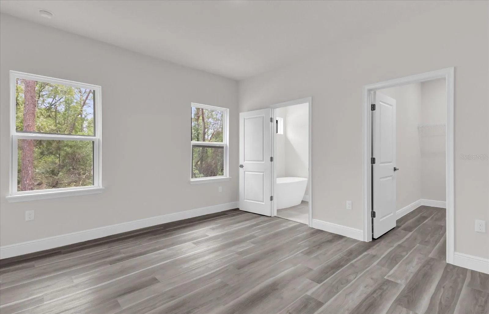 The primary suite is your private retreat, offering a walk-in closet and a luxurious ensuite bath with dual vanities, a freestanding soaking tub, and a walk-in tile shower. Three additional bedrooms—including a guest suite with its own full bath—plus a dedicated home office or den provide flexibility for families or remote work.