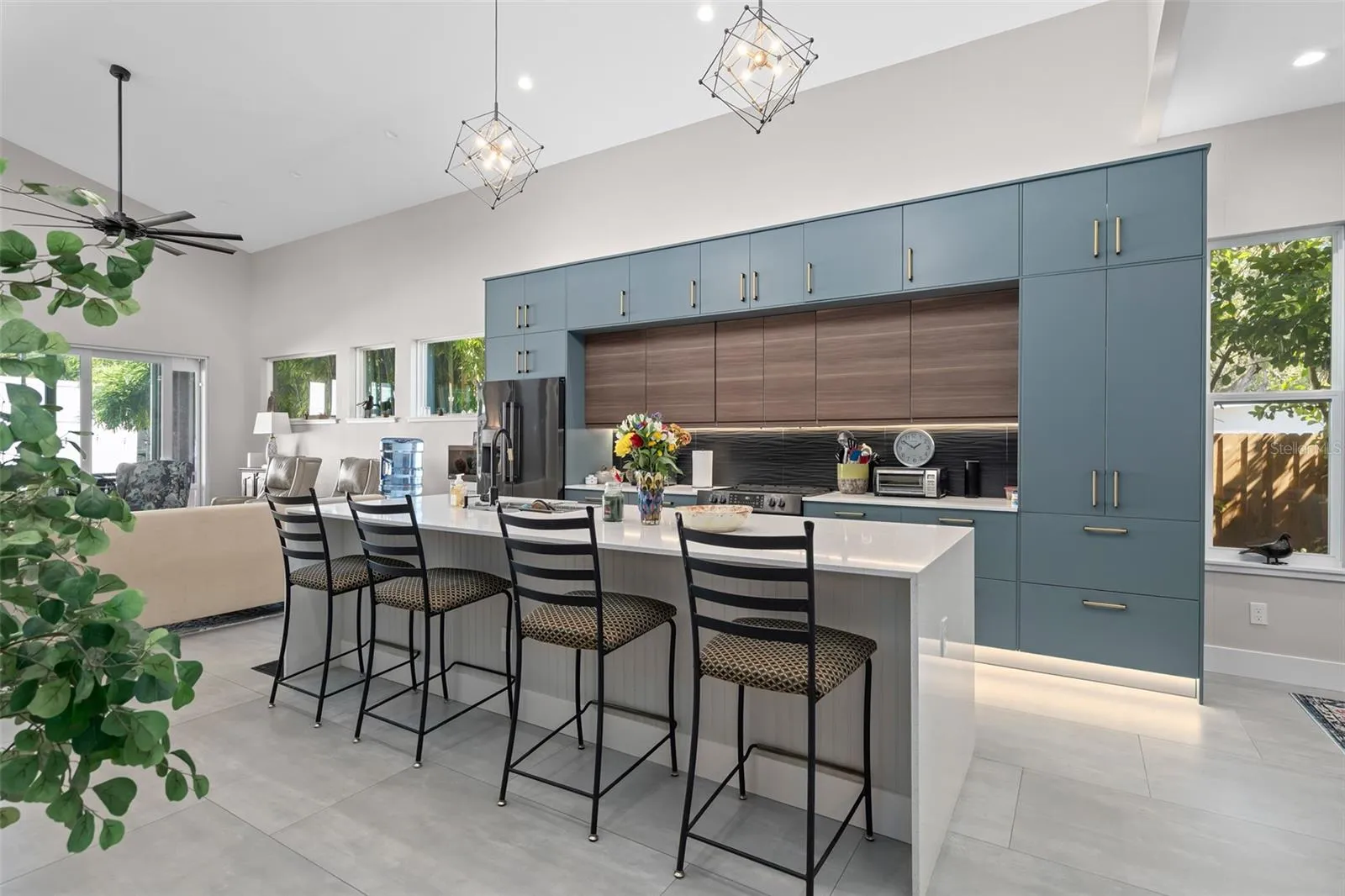 Inside, the flexible 4-bedroom layout offers space to live, work, and relax — including a custom built-in bookshelf and cabinetry in one of the bedrooms, perfect for a home office or cozy retreat. All walk-in closets feature custom-built shelving for seamless organization, while LED cabinet lighting adds warmth and ambiance to the kitchen and bathrooms. The chef’s kitchen stuns with stainless steel appliances, quartz countertops, and designer finishes — a true centerpiece of the home.