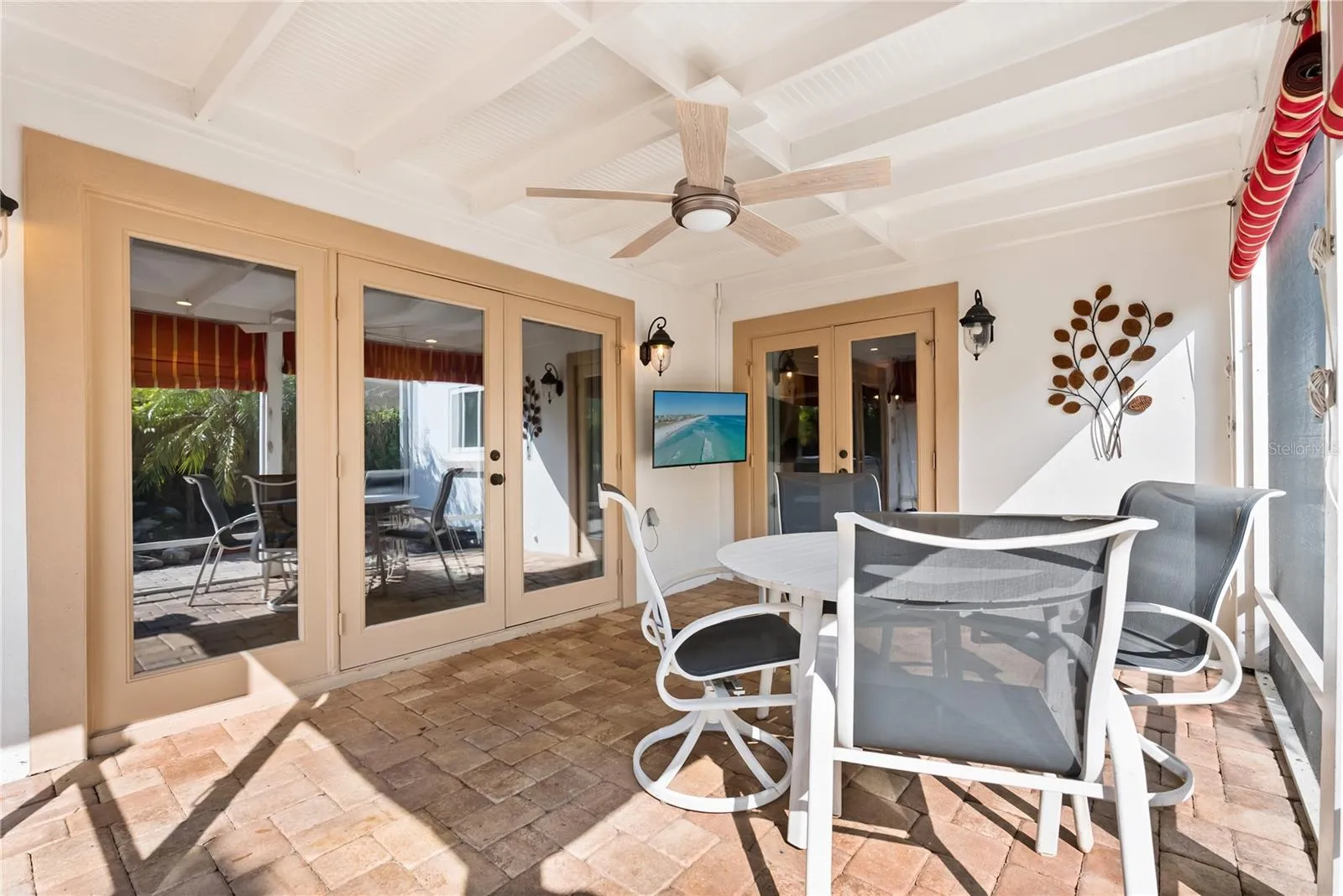 Step outside to your private outdoor retreat, complete with a waterfall fountain, putting green and your own hot tub. An awning provides shade for sunny afternoons, making this a great space to unwind or spend time with friends and family. The screened-in porch extends your living space and provides a peaceful spot to enjoy the outdoors in comfort.