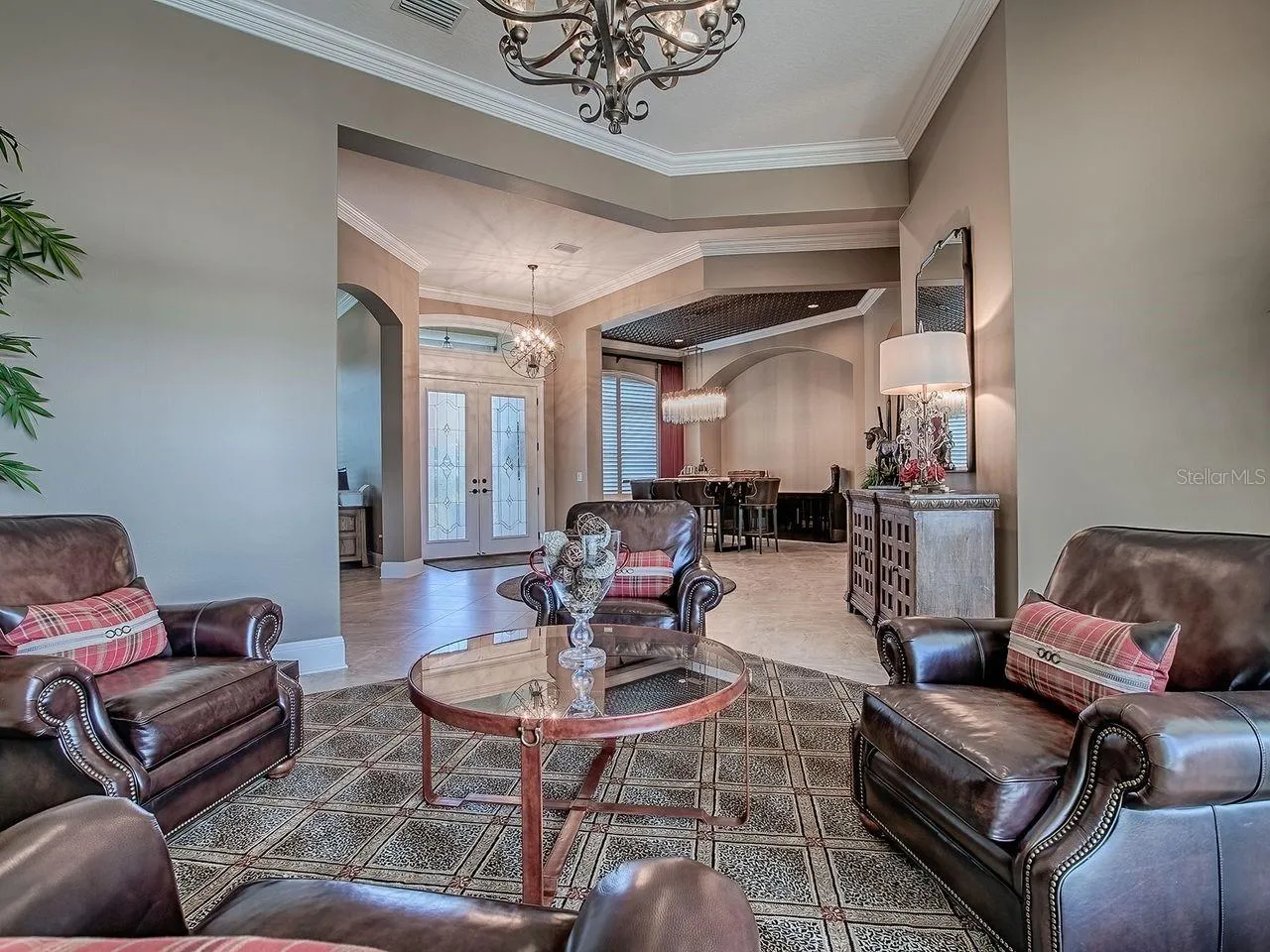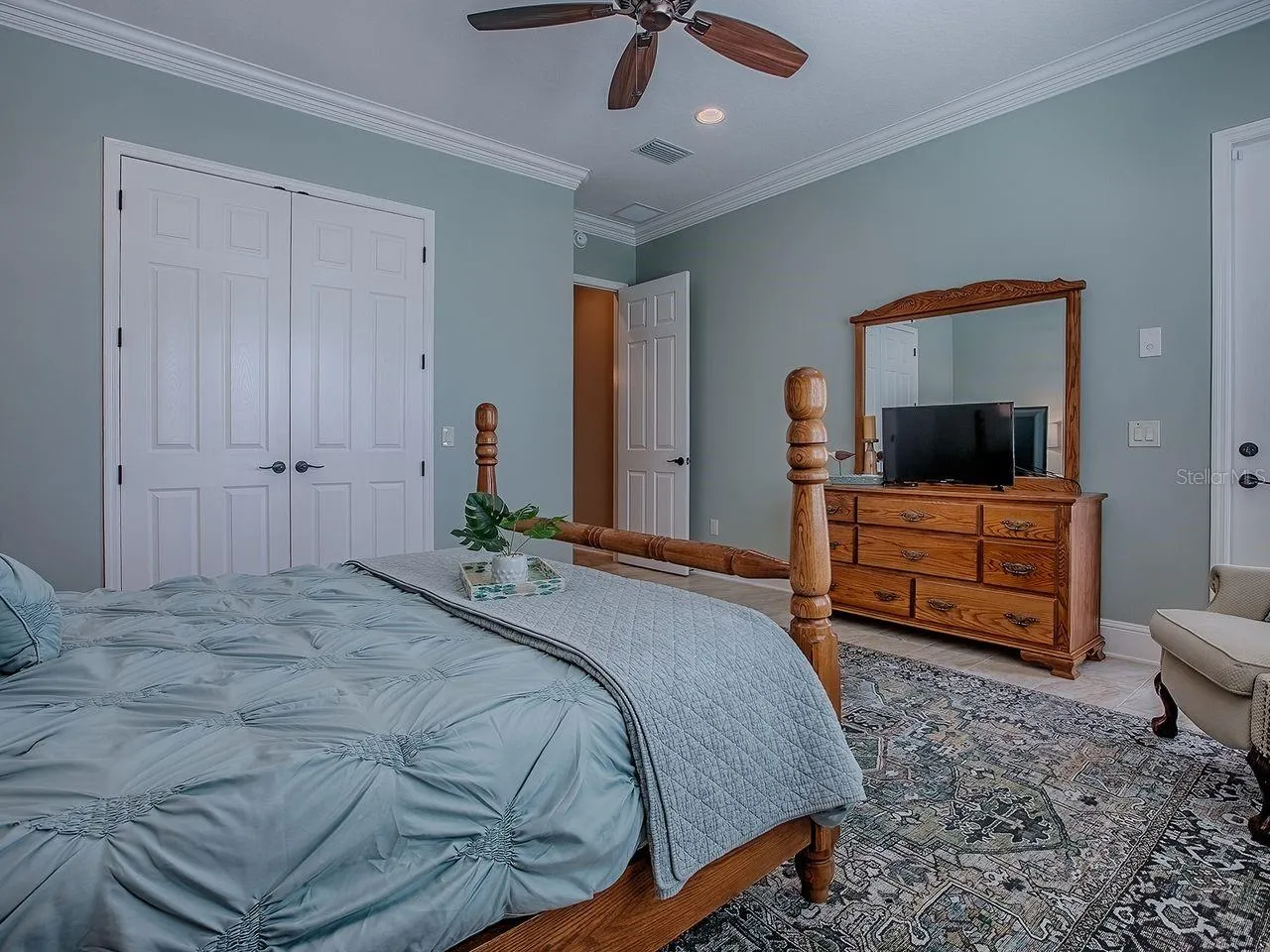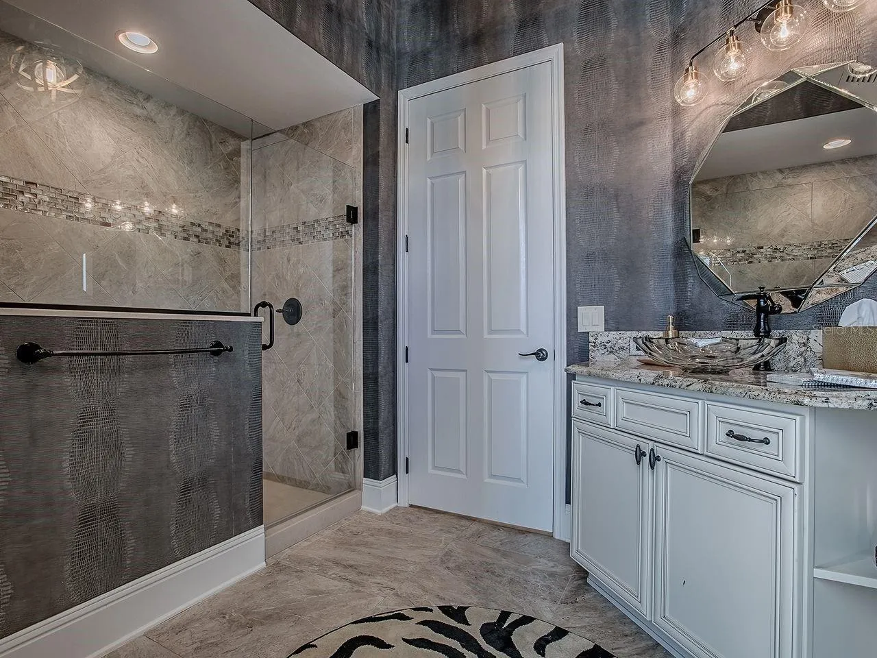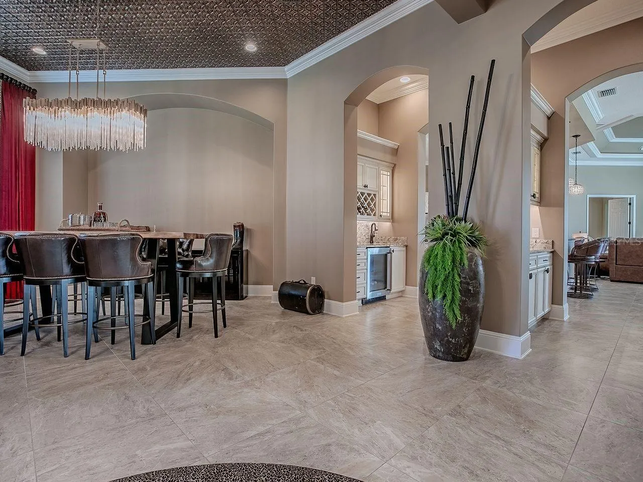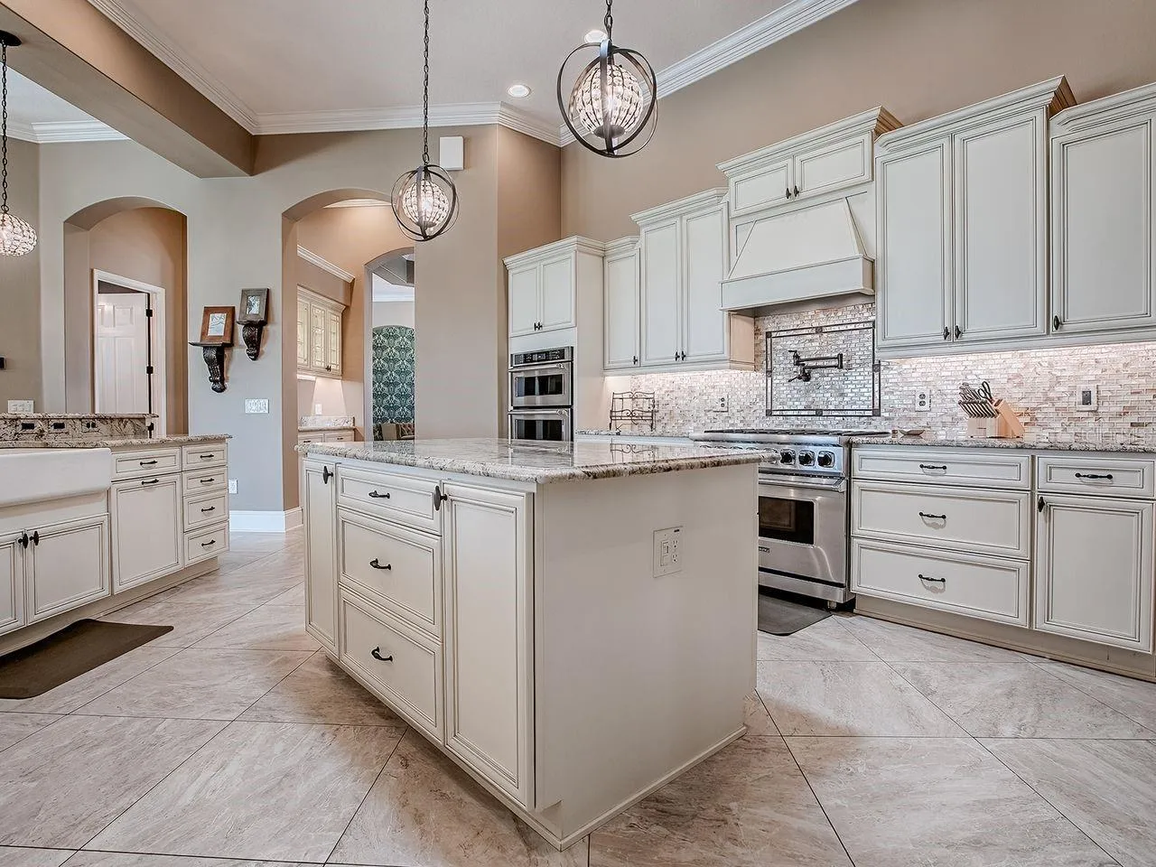 Discover luxurious Florida living in this stunning Grandview-4 model nestled in the coveted Preserve at Pine Hills in The Villages. This exquisite FOUR-bedroom, THREE-bathroom premier home offers a spacious open layout with elegant GRANITE countertops, CROWN MOLDING, PLANTATION SHUTTERS, and tile flooring throughout — NO CARPET for easy maintenance and timeless style. The master suite is a private retreat with two large walk-in closets, a luxurious bathroom featuring a Roman shower and double vanities, a gorgeous view of the preserve, and direct walk-out access to the lanai — perfect for enjoying peaceful mornings and sunsets. Bedroom 3 also features direct access to the lanai, providing guests or family members with easy outdoor living. The gourmet kitchen is beautifully appointed with a large island, GAS RANGE, POT FILLER over the range, Apron Sink, under-cabinet lighting, and a convenient closet pantry for extra storage. The fourth bedroom is currently used as a comfortable home office, adding flexibility for work or guests. The three bathrooms, including one conveniently accessible from the pool area, make entertaining and everyday living effortless. Relax and gather in the grand family room featuring a cozy electric FIREPLACE, or handle daily tasks in the large laundry room complete with granite countertops and custom cabinetry. Outside, enjoy elegant landscaping, a large POOL AND SPA, expansive birdcage enclosure, and a fully equipped OUTDOOR KITCHEN, all complemented by stone walkways that surround the property, and a beautiful stone patio perfectly positioned to overlook breathtaking views of the preserve and tranquil water. Practical touches like the full extended THREE-CAR GARAGE with an epoxy-coated floor, Pegasus Water Filtration System, built-in cabinets, and ample room for three cars and two golf carts, plus remote-controlled screens on both garage doors and the front porch, add extra comfort and convenience. Best of all, the BOND has been PAID, providing peace of mind and added value. Perfectly situated equidistant between Sumter Landing Square and Brownwood Paddock Square, just minutes from shopping at Colony Plaza and the neighborhood Walmart, and close to Belle Glade Country Club, Atlas Dog Park, and only three and a half miles to US-441, providing easy access to restaurants, shopping, and medical facilities — this exceptional home combines style, privacy, and an unbeatable location to enjoy the very best of Florida’s indoor-outdoor lifestyle. Call soon to appreciate this fabulous property in person!