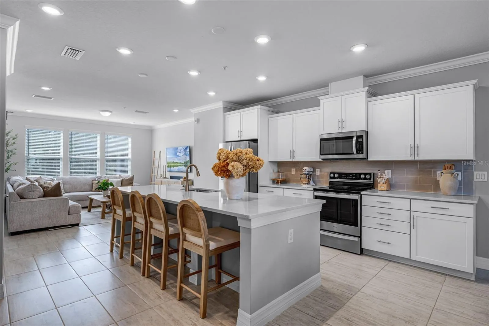 FULLY UPGRADED, LAUREATE PARK LUXURY Townhome in a perfect location at the center of all the community amenities. This rare townhome has 3 bedrooms with 3 private on-suite bathrooms and a guest half bath. The open floor plan has tall ceilings and plenty of windows that flood every room with natural light. Gorgeous design with high-end finishes throughout, including an oversized quartz island, upgraded appliances, custom tile backsplash, modern tile floors, plush new carpeting, and two renovated bathrooms. The spacious primary suite includes walk-In closets, a SPA bathroom featuring FRAMELESS SHOWER, double sinks, shaker style cabinets, quartz counters, upgraded faucets and hardware, and a rain shower head. This home is a MUST SEE and in a Prime location – walking distance to the pools and Canvas Restaurant! Laureate Park is Lake Nona’s premier community which includes 1GB fiber internet, resort style pools, fitness center, many beautiful parks, lakes, 40% green space and A-rated schools. Nearby are Lake Nona’s Medical City, Town Center, USTA, KPMG, 471 expressway and plenty of retail shopping.