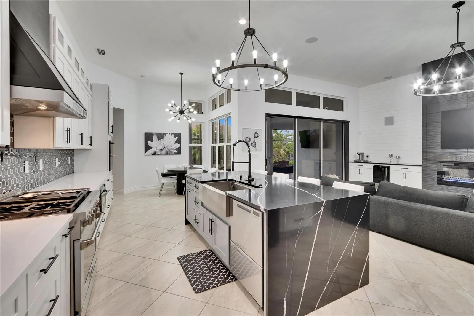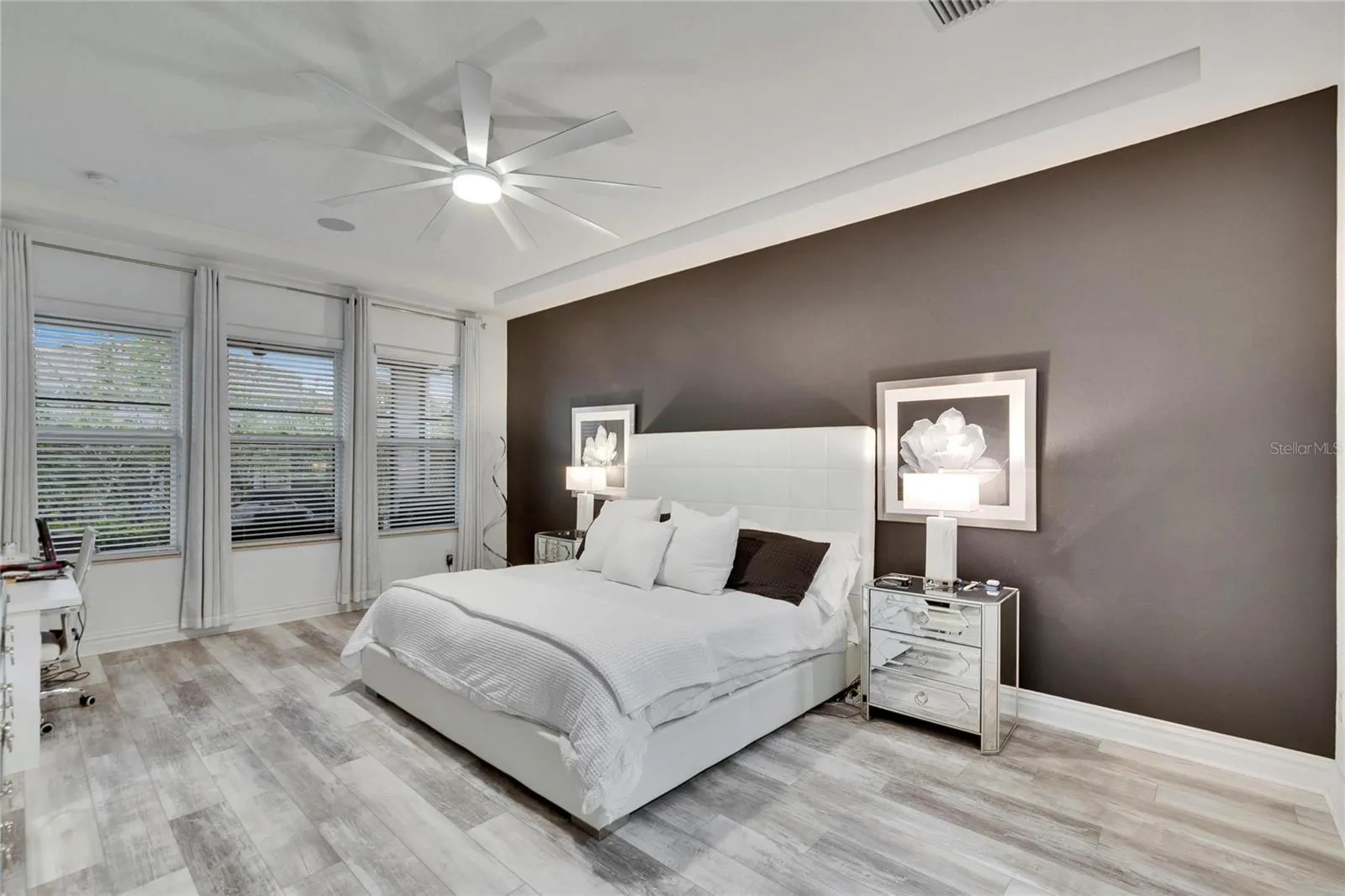 Exquisite Waterset Rare Gem on an Oversized Corner Lot!! Welcome to an exceptional 4-bedroom, 3-bathroom home in the highly sought-after Waterset Community. Designed with contemporary elegance, this home blends modern luxury with inviting charm. Situated on an oversized 0.34-acre fully fenced corner lot, the property is a masterpiece of style and convenience. From the moment you arrive, the spectacular exterior landscape lighting creates a welcoming ambiance, illuminating the trees, walking paths, and lush greenery. Maintaining that beautiful lawn is effortless with an eight-zone reclaimed water irrigation system, ensuring vibrant greenery year-round. Plus, this home features a brand-new roof completed in December 2022, built with premier materials for durability and longevity. Inside, the open floor plan is designed for both comfort and entertaining. The chef’s kitchen is an absolute dream, featuring three ovens—a Kucht Professional KFX Series gas oven, along with a GE Café double oven that can be controlled remotely through WiFi. The Fisher & Paykel Double Drawer Dishwasher and Zline microwave add both convenience and style. The kitchen is stunning, with quartz countertops, a marble backsplash, a farmhouse sink, and even a pot filler above the stove for added ease while cooking. Entertainment is effortless with a Sony surround sound system that fills the home and extends out onto the lanai. Watch your favorite shows on the Samsung 75” Frame TV, or take the fun outside to enjoy the lanai’s outdoor TV. The lanai is designed for ultimate relaxation, with shades that can be adjusted to give you complete control over sunlight and privacy. Throughout the home, every detail has been thoughtfully upgraded to reflect the beauty of contemporary farmhouse design. The wet bar and electric heat-lighted fireplace create a cozy yet modern atmosphere. Upgraded farmhouse lighting adds warmth and character, while custom shelving in both primary bedroom closets, as well as in the pantry and laundry room, offers exceptional storage solutions. There’s no carpet in this home, just beautiful, high-quality flooring throughout. For added comfort, the home features a premium water softener system and a reverse osmosis system, ensuring clean, fresh water at all times. This home has a tankless gas water heater and the home is smart-controlled with Google WiFi, including the gas-powered AC units, which can be adjusted with a simple tap on your phone. Hurricane shutters are included for peace of mind, and there’s even a 220-amp connection on the lanai, ready for a hot tub. Beyond this incredible home, the Waterset community itself offers an unbeatable lifestyle. Residents enjoy resort-style pools, a variety of parks, more than 12 miles of scenic trails, two fully equipped fitness centers, pickleball, basketball, and volleyball courts for endless recreation. There’s also a dog park where furry friends can run and play. Plus, shopping, dining, and everyday conveniences are just minutes away. This home isn’t just a place to live—it’s a place to truly love. Don’t just dream about it—experience it for yourself. Schedule your private showing today and step into the extraordinary!