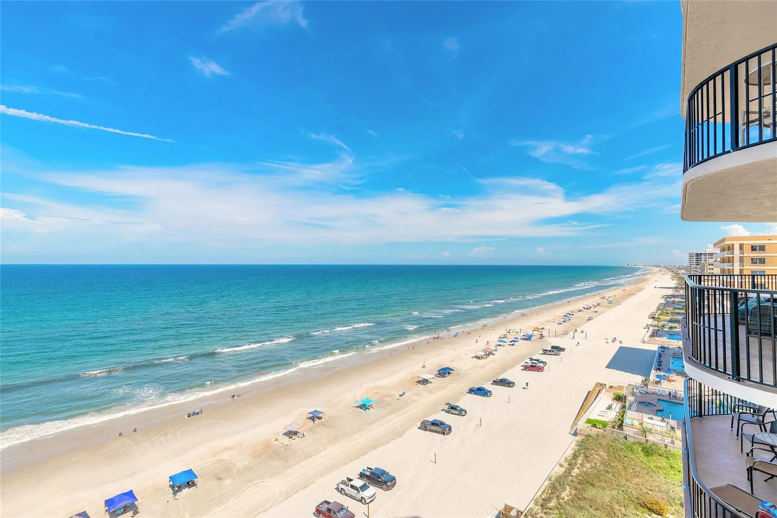 Direct Oceanfront Perfection at The Ashley! Welcome to this immaculate, fully updated 2-bedroom, 2-bathroom condo showcasing breathtaking 180-degree ocean views. Situated in one of the most desirable oceanfront buildings in Daytona Beach Shores, this residence presents a rare opportunity for luxury coastal living or a prime short-term rental investment, with a flexible two-week minimum rental policy. Inside, you’ll find an inviting open floor plan with wood-look tile flooring throughout, two tastefully renovated bathrooms, and new triple sliding glass doors that open to an expansive private balcony, perfect for soaking in the stunning ocean vistas. The impact-rated glass provides both durability and energy efficiency for peace of mind. Enjoy resort-style amenities including a heated oceanfront pool, hot tub, sauna, fitness center, game room, and a penthouse-level community room offering sweeping views of the coastline. Additional features include two underground parking spaces and a pet-friendly policy allowing up to two pets (20 lbs max each). Whether you’re searching for a personal retreat or a high-performing investment, this oceanfront gem delivers it all. All information is deemed reliable but not guaranteed. Buyers are encouraged to verify all details.