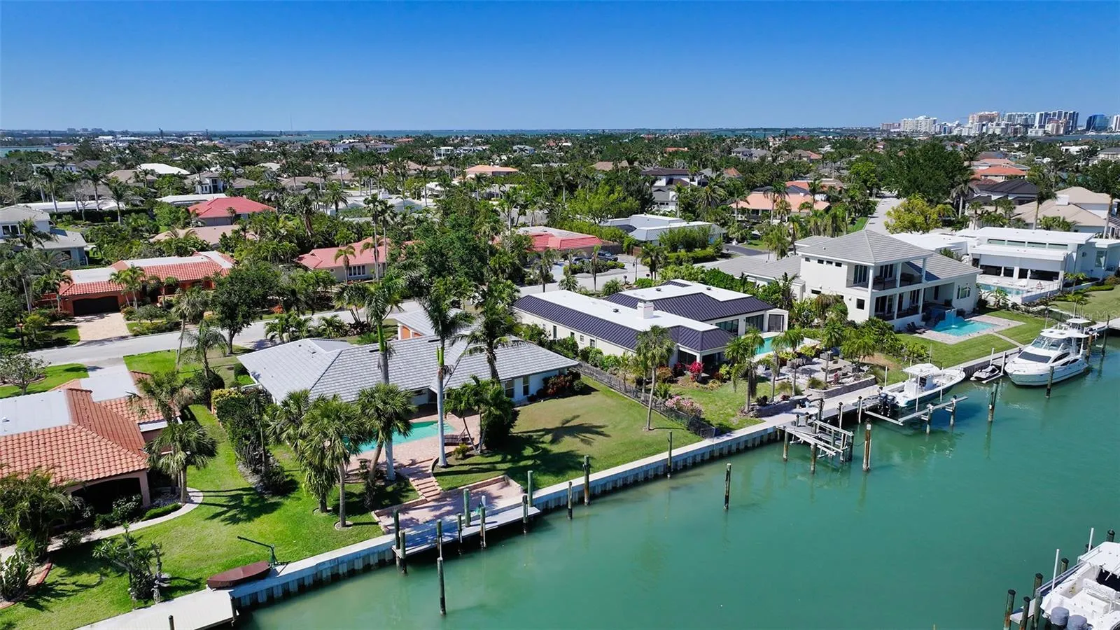 One or more photo(s) has been virtually staged. Perfectly positioned on deep canal waters just moments from Sarasota Bay, this Bird Key residence captures the essence of relaxed coastal living. Set on a generous lot and framed by tropical landscaping, this home blends privacy with proximity to Sarasota’s vibrant downtown and waterfront destinations. A circular brick-paver driveway leads to the welcoming front entry, while a brand-new roof (2024) offers peace of mind. Inside, more than 2,400 square feet of light-filled living space unfolds across an open, thoughtfully designed floorplan. Neutral oversized tile flooring flows throughout the main living areas, unifying the open-concept kitchen, family room, and dining spaces. The kitchen boasts granite countertops, sleek cabinetry, stainless steel appliances, a breakfast bar, and expansive counter space—ideal for both daily living and effortless entertaining. Walls of sliding glass doors extend the living area out to the screened lanai, where a covered lounge and pavered deck frame the sparkling pool. The residence features three spacious bedrooms, including a private primary suite with large walk-in closet and a en-suite bathroom. The home’s split-bedroom layout ensures comfortable accommodations for guests, while ample storage and a generous laundry area add everyday functionality. A newly rebuilt seawall (2022) and deep-water dock provide direct access to Sarasota Bay, making this a true boater’s retreat. Enjoy morning coffee or sunset cocktails with tranquil canal views just steps from your back door. Bird Key is one of Sarasota’s most sought-after neighborhoods, prized for its central location, manicured streets, and strong sense of community. Residents enjoy proximity to the Bird Key Yacht Club, with optional membership for boating, tennis, fitness, and dining. Just minutes away are the world-class shopping and dining of St. Armands Circle, pristine beaches of Lido and Longboat Key, and Sarasota’s thriving arts and cultural district.