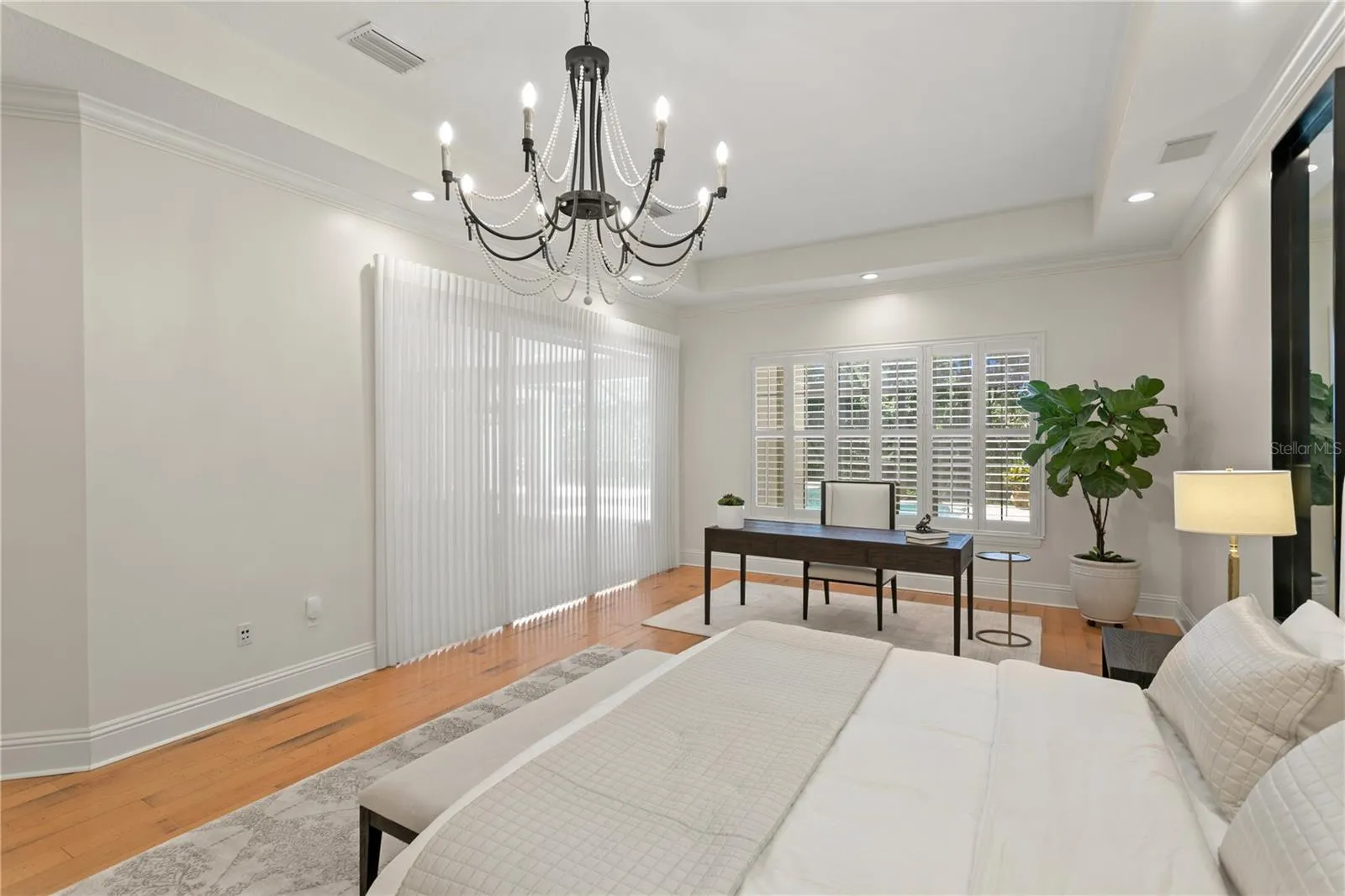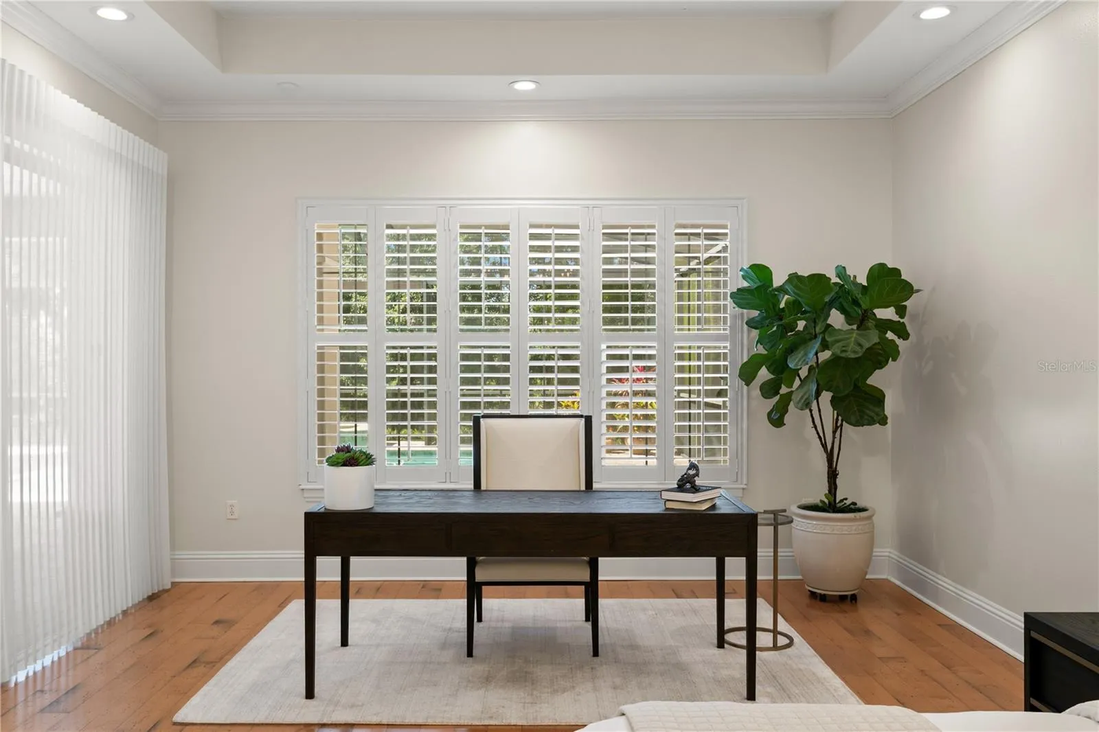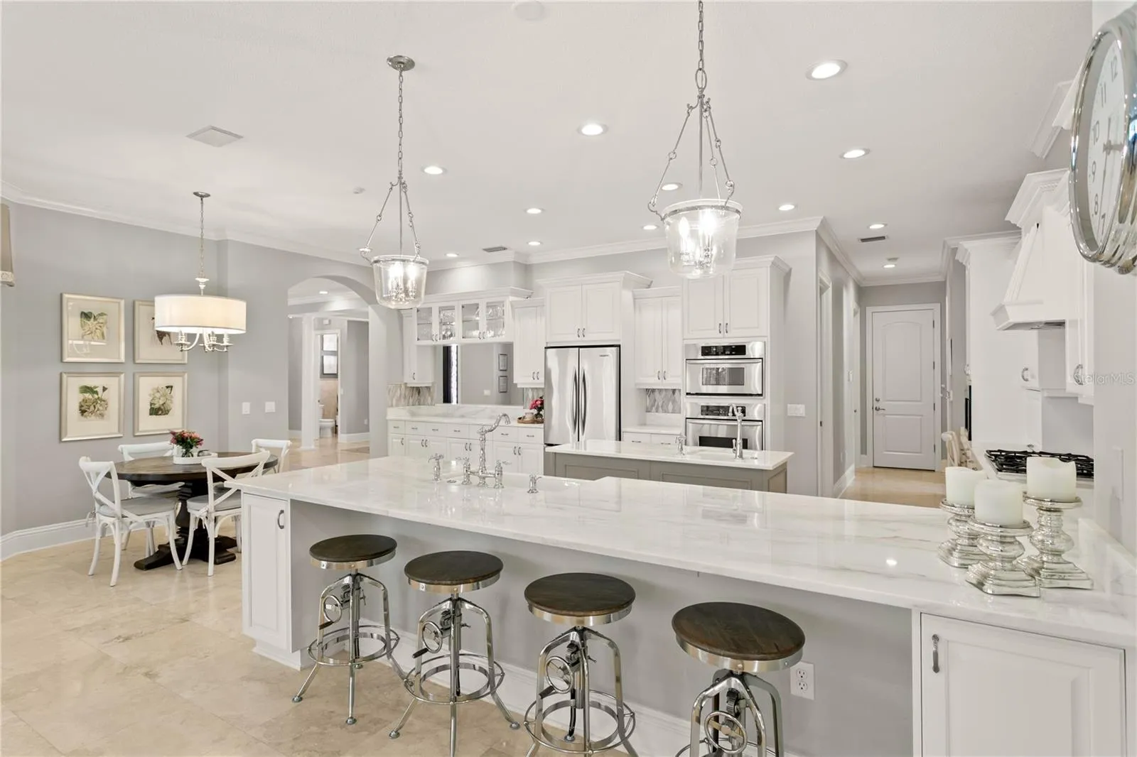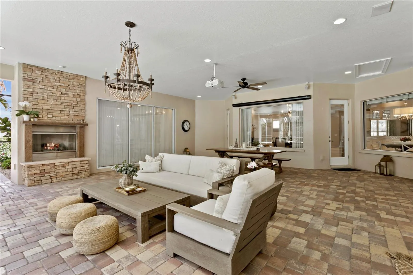 Welcome to this stunning one-story home in the gated community of Bella Vita. Custom designed with premium finishes and meticulous attention to detail, this 3,962 Sq Ft residence offers luxury living at its finest. Ideally located on a quiet cul-de-sac, the home features a beautiful conservation lot—providing privacy and a serene natural backdrop. From the moment you arrive, you’ll be impressed by the beautifully landscaped grounds, the brick paver driveway, and the classic clay tile roof that enhances the home’s elegant curb appeal. Inside, the spacious layout includes 4 bedrooms, 3.5 bathrooms, and thoughtfully designed living areas that flow seamlessly into an extraordinary outdoor living space. The open floor plan is basked in sunlight and features travertine floors, designer lighting, custom draperies, crown molding, plantation shutters all which enhance this gorgeous home. The gourmet kitchen features stainless steel appliances, a 5-burner gas range, a Miele built-in coffee machine, marble countertops, built-in desk, and a large kitchen island with seating for four – ideal for casual gatherings. The kitchen opens to the family room and the retractable sliding glass doors from the family room extends your living space. The luxurious primary suite is a private retreat, featuring a luxurious spa-style bathroom with his and her vanities with quartz countertops, designer mirrors and lighting, and a custom California closet. Three additional bedrooms are thoughtfully designed, each offering comfort, style, and plenty of room for family and guests. The outdoor living areas are truly extraordinary and feature a screened patio with a swimming pool, fireplace, outdoor kitchen, built in movie screen and an oversized patio. The backyard is complete with a private path that leads to an outdoor fire place that is the perfect spot to gather and entertain. This gated community is centrally located in Tampa & offers a wonderful lifestyle that is convenient to Carrollwood Day School, Avila & all major highways.