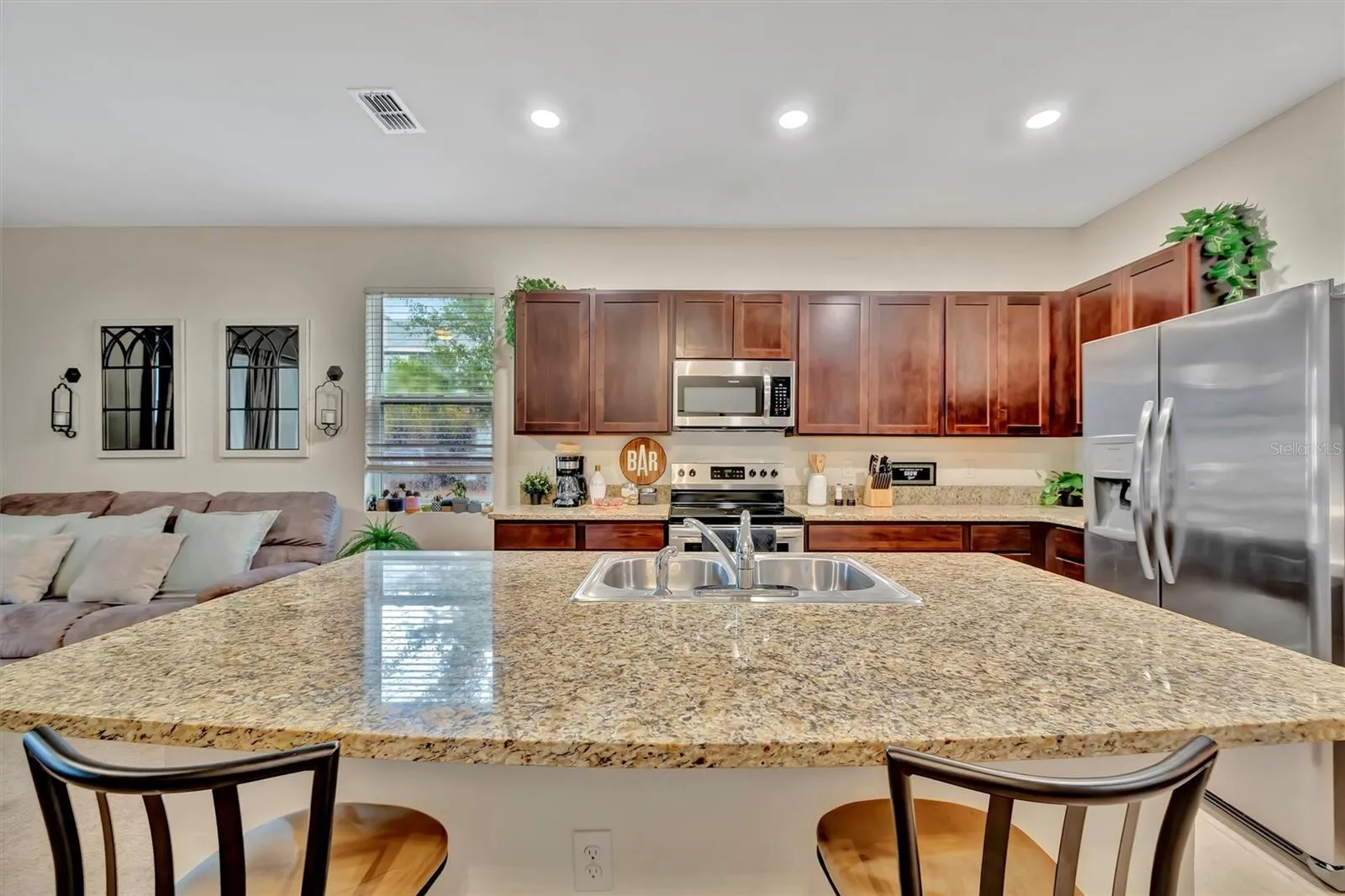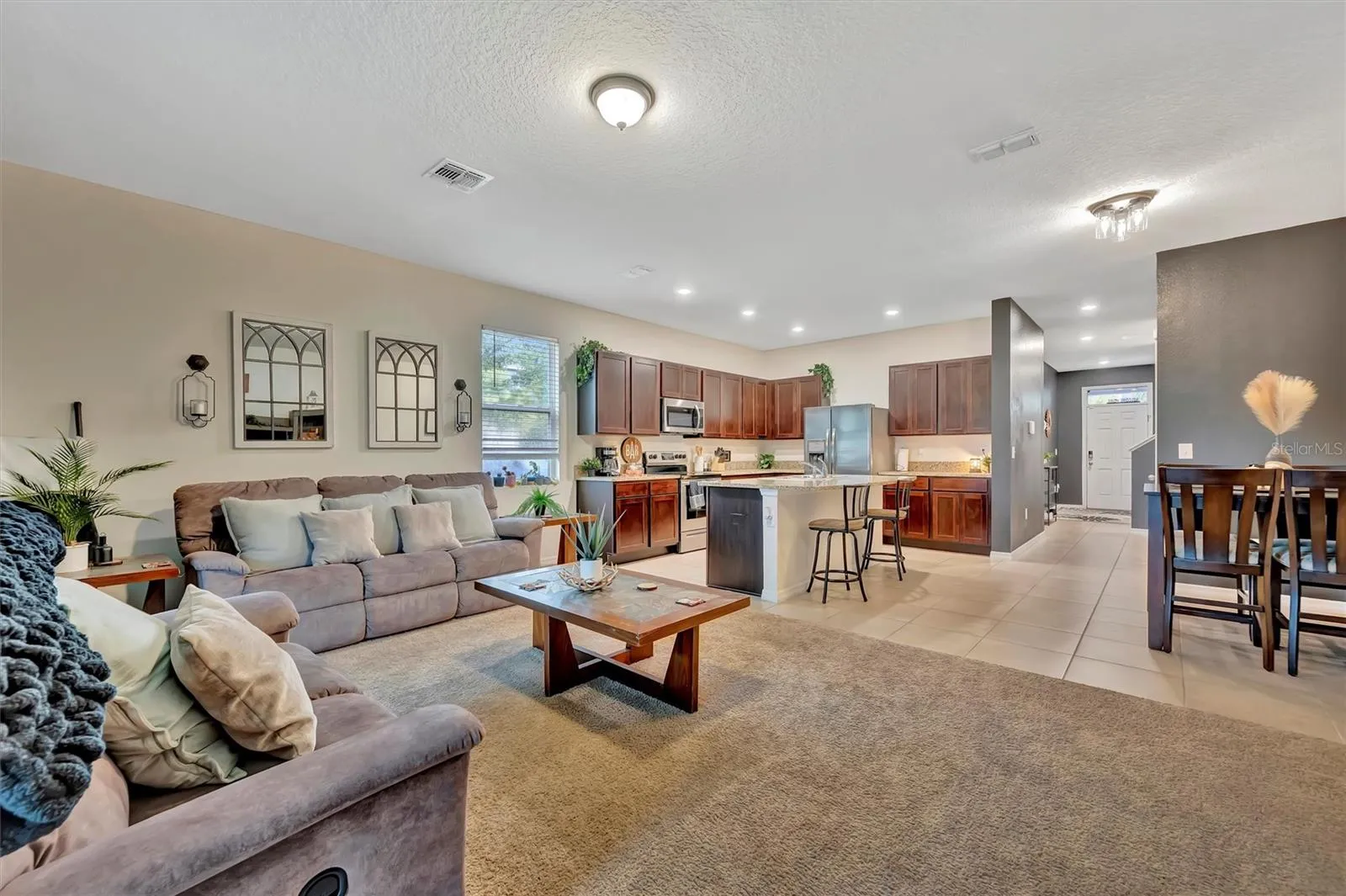 Welcome to this charming end-unit townhouse in the sought-after District of Bloomingdale with Assumable VA loan option! From the moment you step inside, you’ll feel the peaceful ambiance this beautifully maintained home offers. The open-concept first floor is ideal for entertaining, featuring a spacious living and dining area that flows seamlessly into the modern kitchen. You’ll love the oversized island with bar seating, granite countertops, stainless steel appliances, and a generous walk-in pantry—perfect for any home chef! Step through the sliding doors to the screened-in back porch, an inviting space to enjoy your morning coffee or unwind in the evening with a cool drink. Upstairs, you’ll find all bedrooms along with a versatile loft space—ideal for a home office, study, or cozy reading nook. The expansive primary suite features two walk-in closets and a luxurious en-suite bathroom with dual vanities. The secondary bedrooms are well-sized and share a convenient Jack-and-Jill bath. Outside, there’s ample green space nearby for your pets to enjoy. This smart home includes modern features like a smart front door lock, Ring doorbell, smart plug, and programmable lighting—all accessible from your phone. Additional highlights include a one-car garage, a two-car driveway, and low-maintenance living with an HOA that covers water, sewer, trash, and gated community access—with no CDD fees! Located in the highly rated Bloomingdale school district and just minutes from shopping, dining, grocery stores, and easy access to the Selmon Expressway and I-75. Schedule your private showing today and make this exceptional townhome yours!