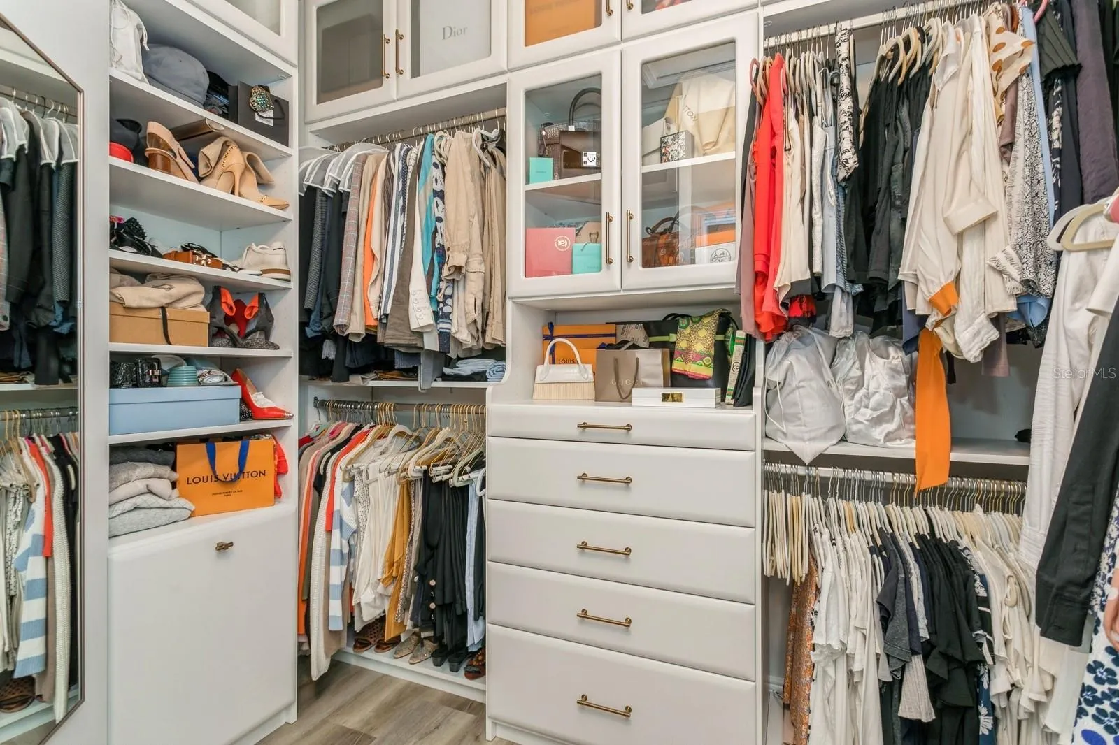Luxuriously appointed 5 bedroom/ 4.5 bathroom home with many updates. Situated on 1+ acres in the unique gated community of Vilano, known for its spacious landscaped lots. Landscaping had a complete makeover in 2022 adding privacy and beautification to the property. It includes evening light enhancement, low-maintenance perennial garden with native and flowering plants and trees. This home boasts tray ceilings and new hurricane rated double glass front doors which provide elegance and light into the entrance of the home. There is a large gourmet kitchen with sizable island, new appliances and updated cabinetry, new floors in the entire home, new window shutters, solar shades and heated-saltwater pool. Lighting (all dimmable) and plumbing fixtures have been replaced throughout the home as well. High ceilings with crown molding complement the appearance of the home showcasing timeless stature. The first floor includes an in-suite bedroom with full bath. You will also find a butler pantry, study, dining room, laundry room and powder room on the first floor. Spacious second-floor master bedroom has double doors leading to a large master suite with sitting area, new his and hers walk-in closets featuring floor-to-ceiling cabinets, spinning shoe tower with full-length mirror and a pull-down rack. Master suite is also appointed with linen