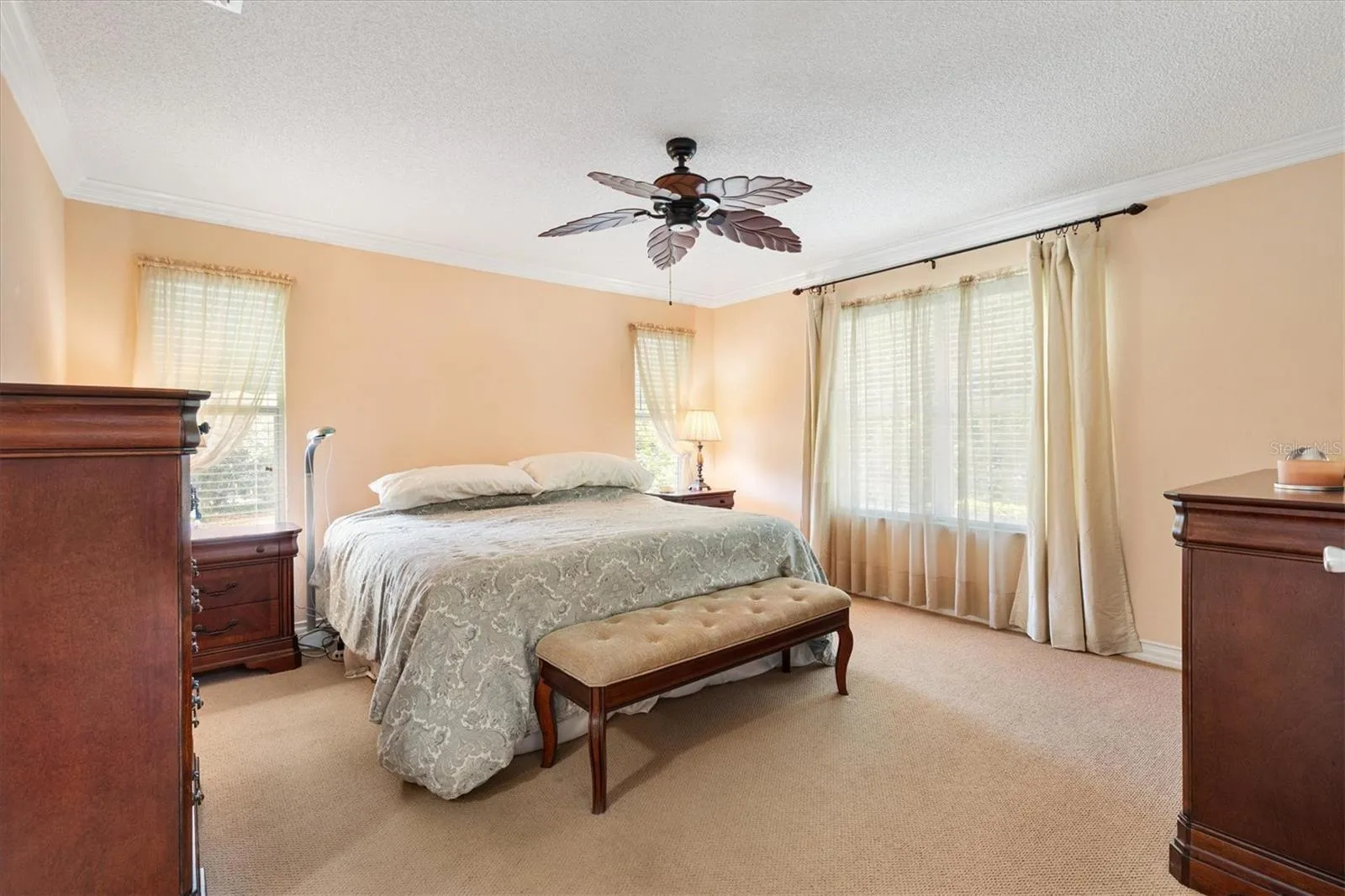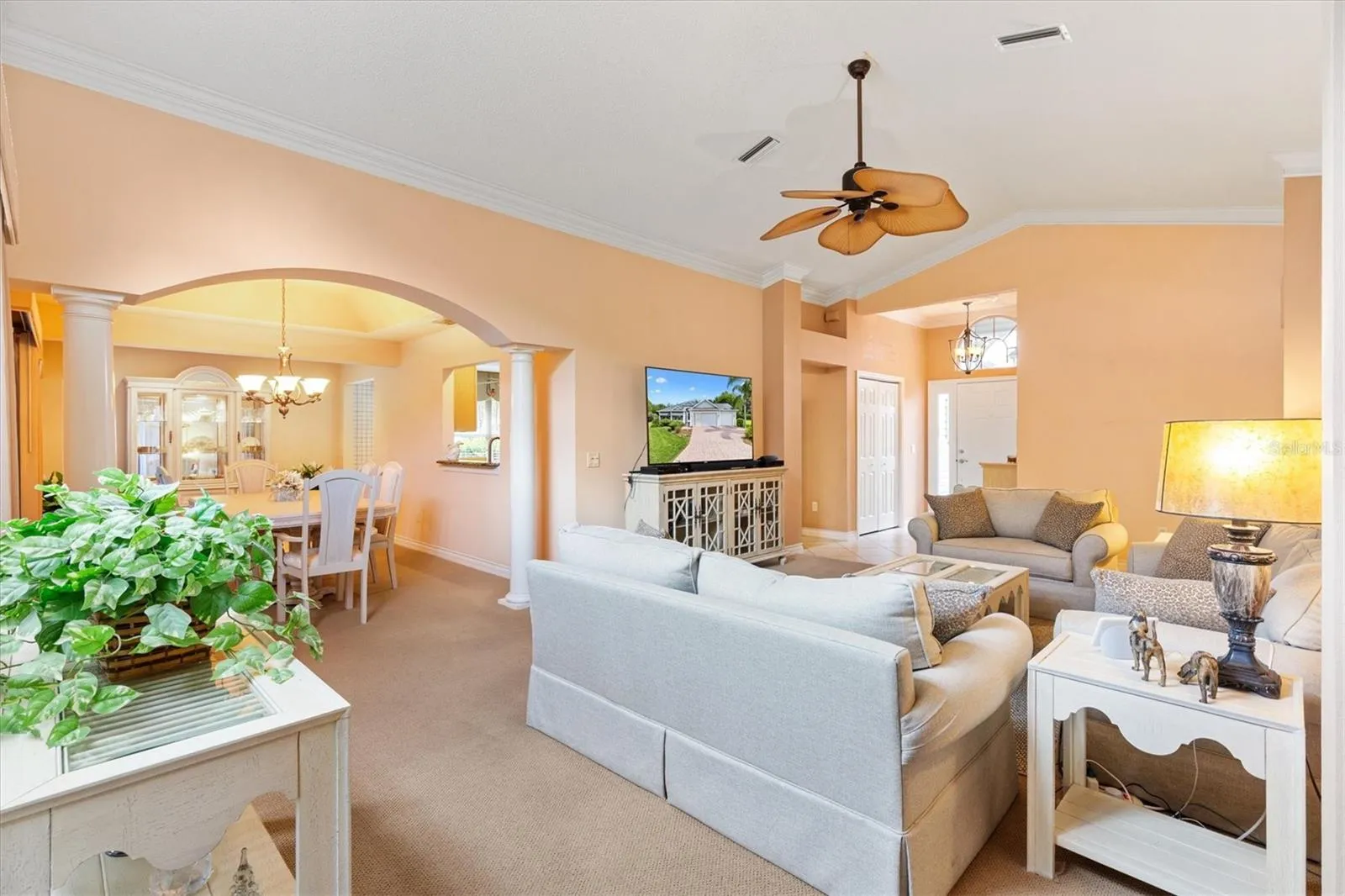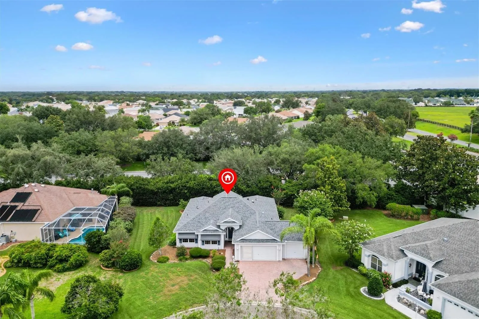Additional highlights include: Crown Molding throughout, Full 3 Car garage and golf cart garage for generous parking and storage, sliding garage screen doors, Paver Driveway, Exterior Awnings, and Large Entry Hall closet. This home combines comfort, convenience, and value in a sought-after location, just minutes away from Brownwood and Spanish Springs, Glenview Country Club, the Savannah Center and the Polo fields and easy access to shopping and dining and all The Villages provides.