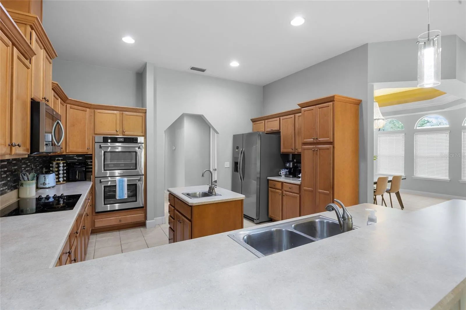 Beautifully maintained 3-bedroom, 2-bathroom home located in the gated golf course community of Turkey Creek. This move-in ready home has a BRAND NEW ROOF and features 10-foot ceilings, spacious living areas, ample natural lighting and a view of the golf course right in the backyard. Step inside and the foyer opens to a spacious dining room with room for a large dining table ideal for entertaining. The kitchen features stainless steel appliances, a kitchen island with a second sink, an induction cooktop, a double oven, and a cozy breakfast nook. The split-bedroom floor plan ensures privacy. The spacious primary suite is located next to the screened lanai and features a tray ceiling, walk-in closet, and a luxurious ensuite bathroom complete with dual vanities, a whirlpool soaking tub, and an oversized dual-head walk-in shower. Two additional bedrooms provide ample space for guests or a home office. Outside, soak in the sunshine and gentle breeze from your own screened lanai, ideal for enjoying morning coffee or evening sunsets. Enjoy maintenance-free living as the HOA takes care of the exterior landscaping. Beyond the home, enjoy all the amenities and recreational activities Turkey Creek has available, including the community pool, pickleball and tennis courts, a playground, basketball court, clubhouse, and a restaurant. This home is conveniently located minutes from Gainesville and downtown Alachua with easy access to UF/Shands and I-75. Don’t miss the opportunity to make this move-in ready home yours, schedule your showing today!