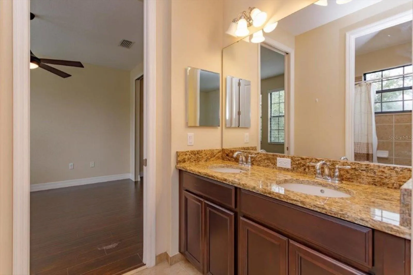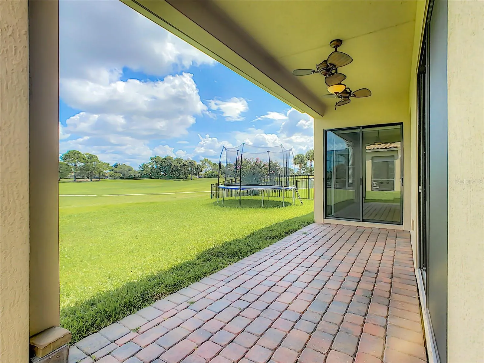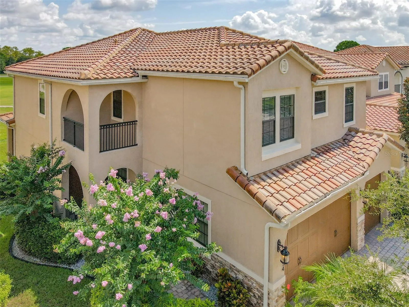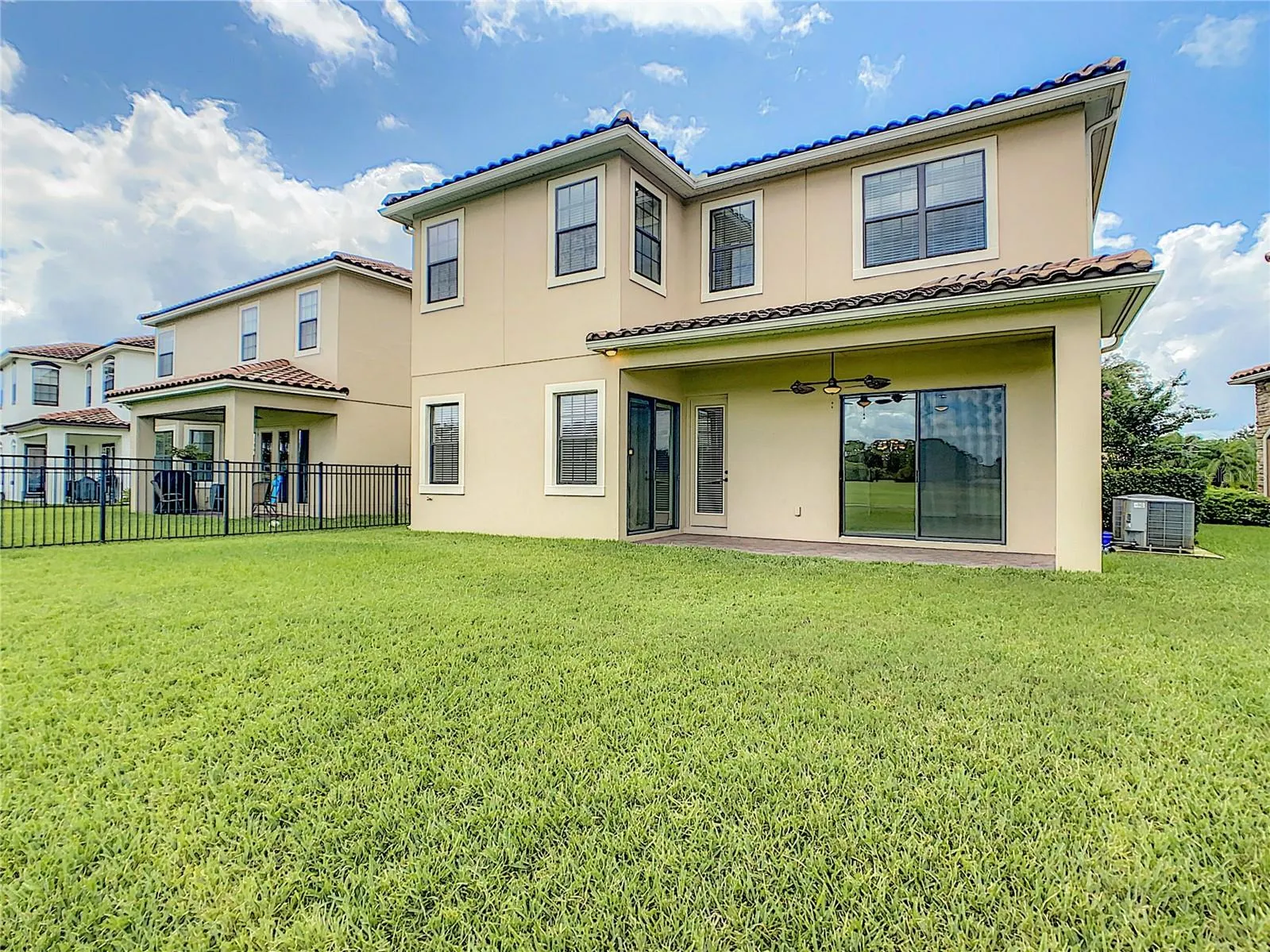 This amazing 5 bedroom, 4 bath home is designed for entertaining and families. As you enter, you will love the open floor plan, formal dining room, and separate family and living rooms which all lead out to a covered lanai overlooking the golf course. The large kitchen features 42″ dark wood upper cabinets, stone countertops, stainless steel appliances, a butler pantry, and breakfast/wine bar. Upgrades include upstairs laminate wood flooring, tray ceilings, blinds, valances, soaring ceilings, decorative fans and an upgraded master bathroom. Upstairs features a 21×15 master bedroom with his and hers double walk-in closets. The four other bedrooms upstairs include a large bedroom perfect for theatre room or a second master bedroom. Two bedrooms connect with a Jack and Jill bathroom. This home has plenty of room for storage including a 3-car garage. Stylish pavers enhance the driveway and patio. This lovely community offers a 24-hour manned gate and a short walk to the clubhouse. The excellent K-12 schools are just minutes away. The abundant community amenities include multiple pools, splash park, fitness center, 4 tennis and 2 basketball courts, dog park, ball field, and public golf course. This property is conveniently located near Lake Nona Medical City, 25 minutes to downtown Orlando, 30 minutes to Disney, and 45 minutes from East Coast Beaches. The home recently had all the carpet replaced with the matching wood plank laminate flooring in the rest of the house. The exterior of the home and the roof were just pressure washed and looks amazing.