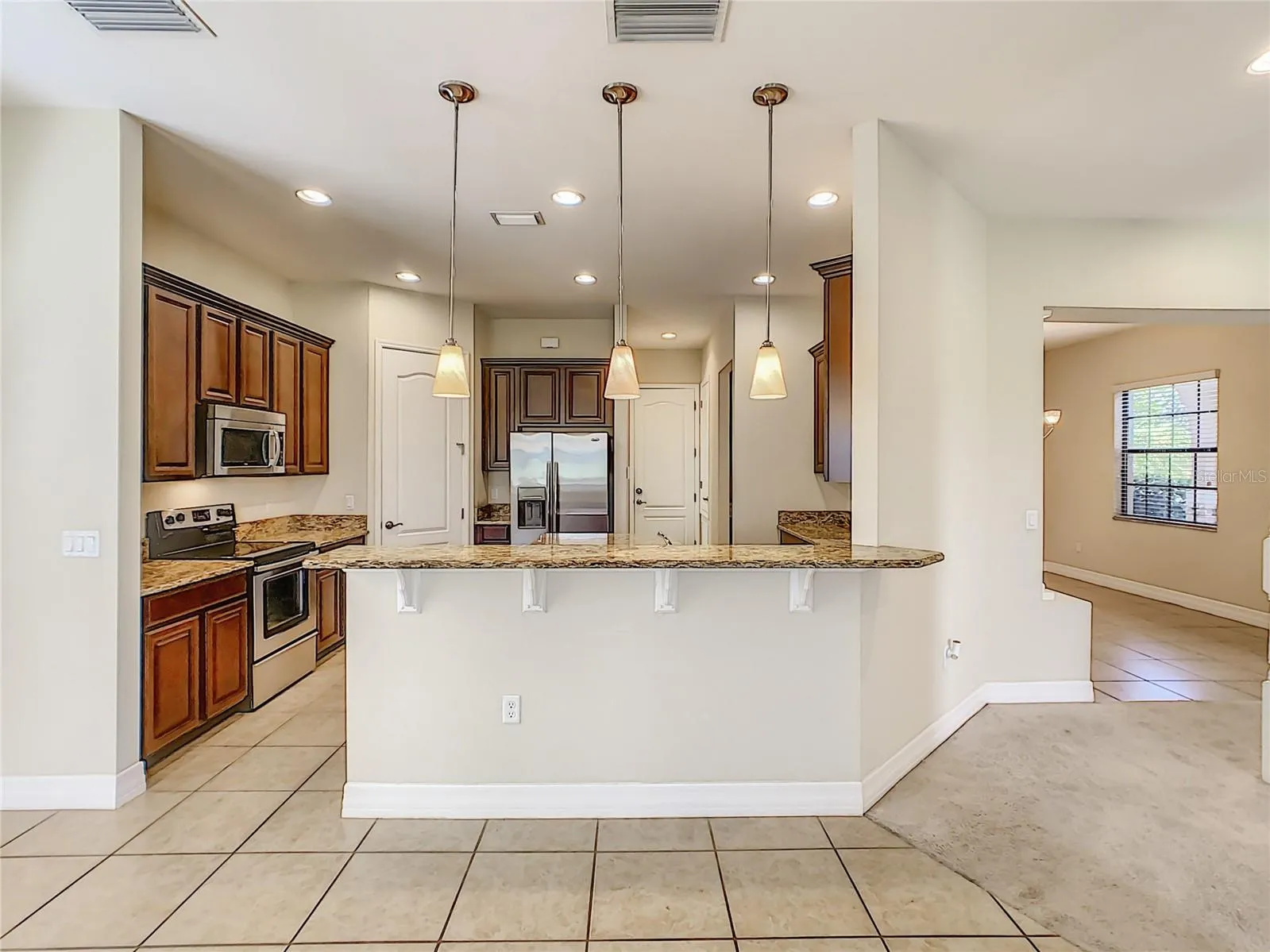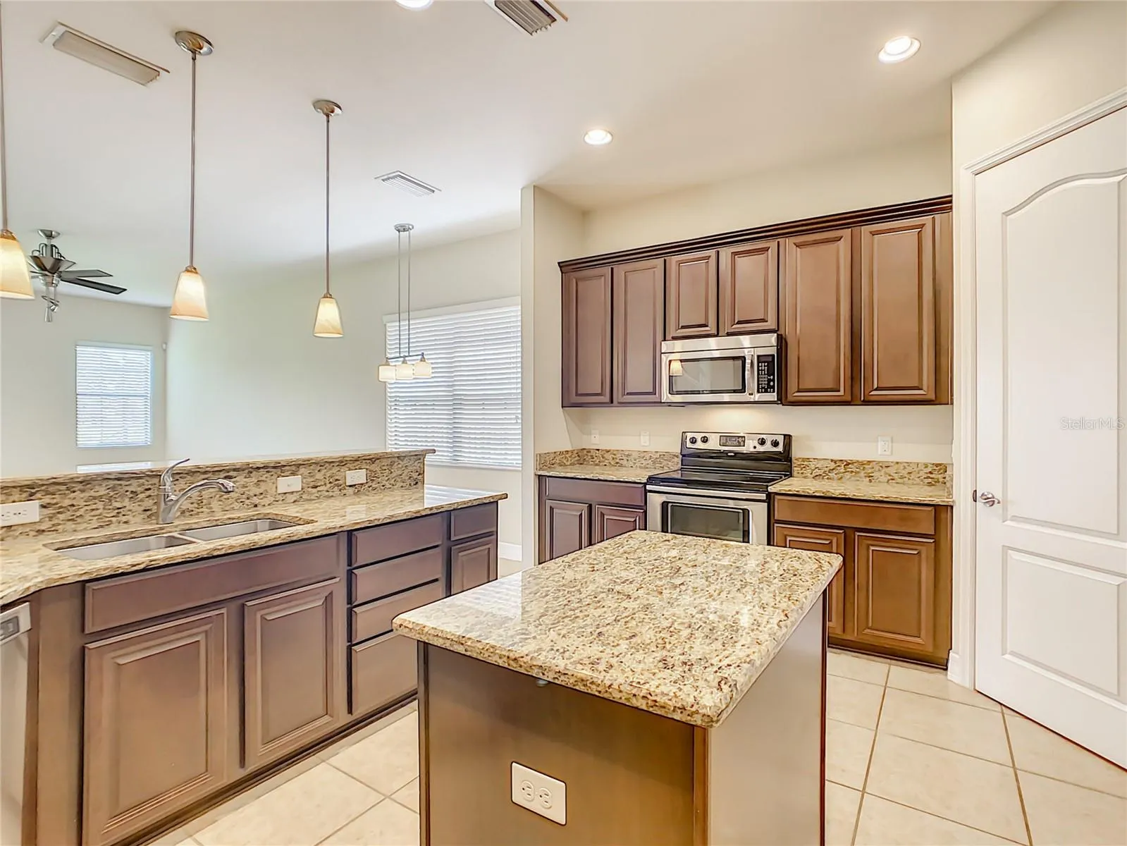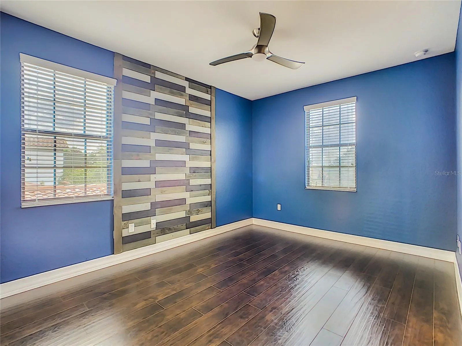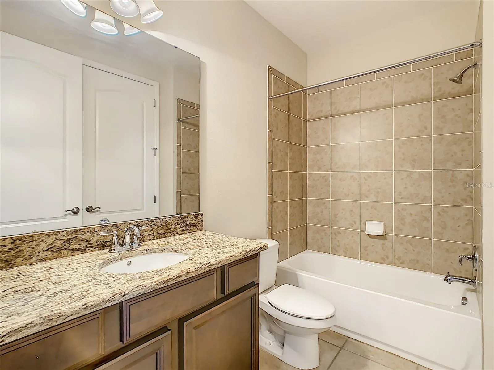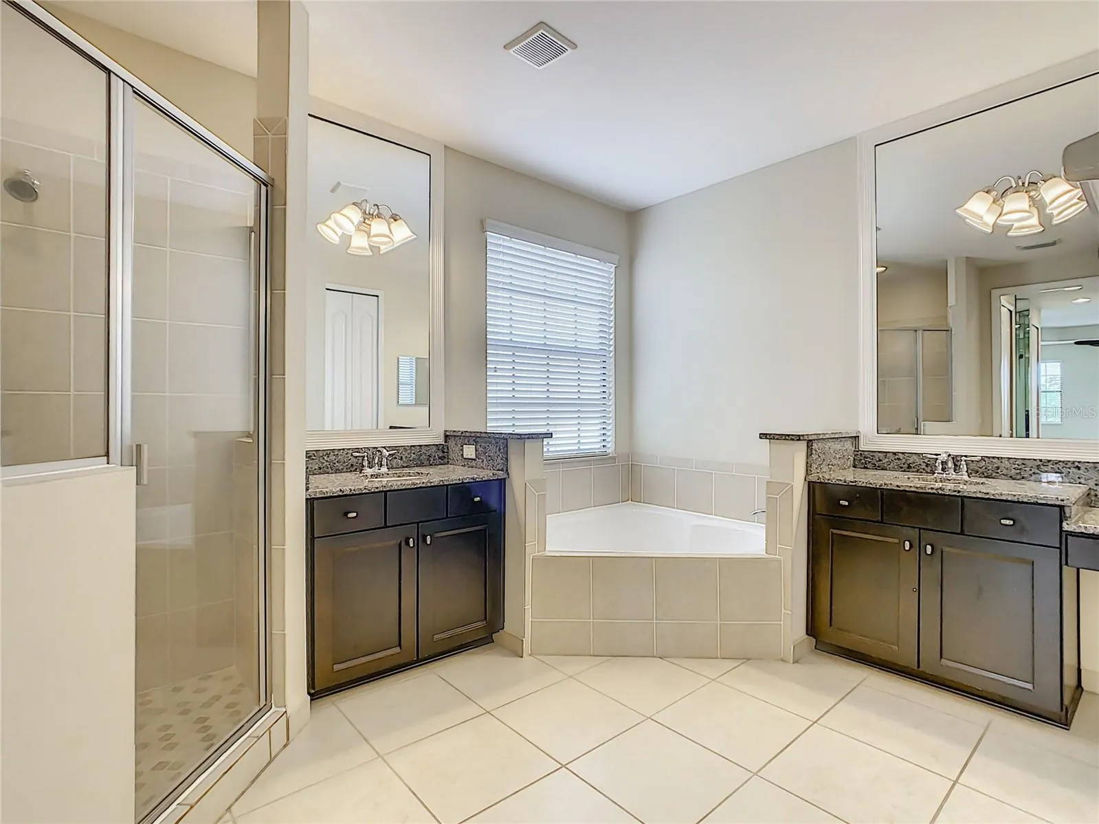 This amazing 5 bedroom, 4 bath home is designed for entertaining and families. As you enter, you will love the open floor plan, formal dining room, and separate family and living rooms which all lead out to a covered lanai overlooking the golf course. The large kitchen features 42″ dark wood upper cabinets, stone countertops, stainless steel appliances, a butler pantry, and breakfast/wine bar. Upgrades include upstairs laminate wood flooring, tray ceilings, blinds, valances, soaring ceilings, decorative fans and an upgraded master bathroom. Upstairs features a 21×15 master bedroom with his and hers double walk-in closets. The four other bedrooms upstairs include a large bedroom perfect for theatre room or a second master bedroom. Two bedrooms connect with a Jack and Jill bathroom. This home has plenty of room for storage including a 3-car garage. Stylish pavers enhance the driveway and patio. This lovely community offers a 24-hour manned gate and a short walk to the clubhouse. The excellent K-12 schools are just minutes away. The abundant community amenities include multiple pools, splash park, fitness center, 4 tennis and 2 basketball courts, dog park, ball field, and public golf course. This property is conveniently located near Lake Nona Medical City, 25 minutes to downtown Orlando, 30 minutes to Disney, and 45 minutes from East Coast Beaches. The home recently had all the carpet replaced with the matching wood plank laminate flooring in the rest of the house. The exterior of the home and the roof were just pressure washed and looks amazing.