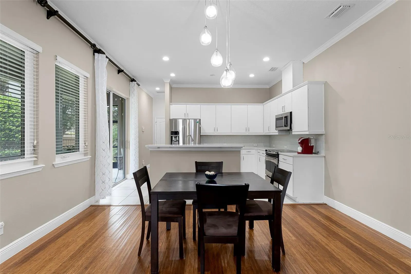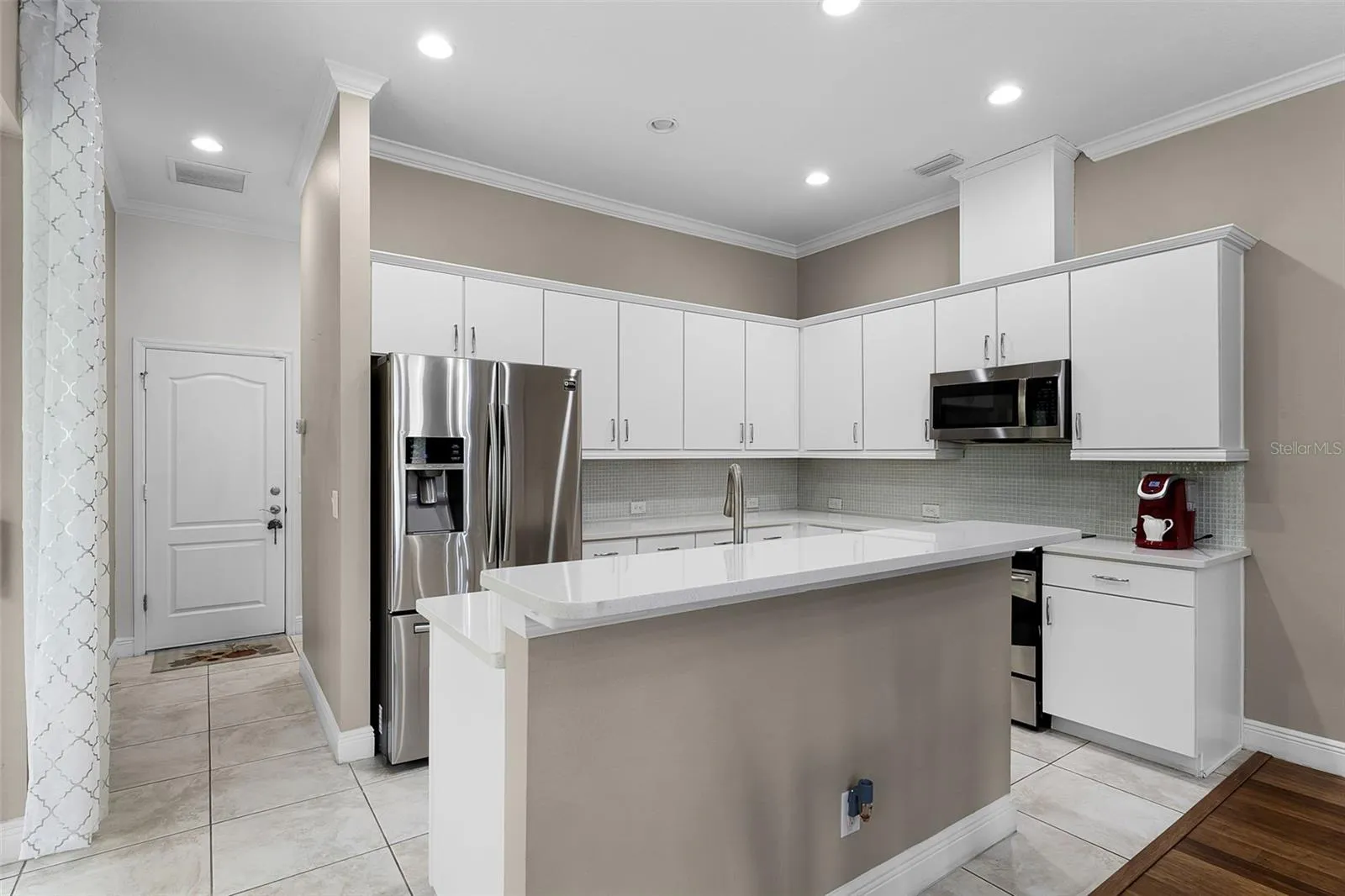 FAIRLY NEW TOWNHOME with Oversized Fenced Yard in the Heart of Laureate Park! Welcome to maintenance-free living in this beautifully upgraded 3-bedroom, 2.5-bath townhome featuring a rear-loading 2-car garage and 1,856 sq. ft. of thoughtfully designed space. From the moment you arrive, you’ll fall in love with the inviting curb appeal and charming covered front porch—perfect for relaxing with your morning coffee. Step inside to an open-concept floor plan with a spacious living room, dining area, and kitchen, all enhanced by bamboo and ceramic tile flooring. The gourmet kitchen is as functional as it is stylish, boasting Quartz countertops, upgraded wood cabinetry with crown molding, stainless steel appliances including a microwave and dishwasher, and a large center island with seating. Sliding glass doors lead to a screened sunroom with a built-in dog door, ideal for pet lovers. Upstairs, you’ll find handcrafted hickory-engineered wood floors and a spacious loft, perfect for a home office or bonus room. The primary suite features a large walk-in closet, and an elegant ensuite bath complete with dual sinks, a linen closet, and a brand-new spa-style shower with textured 12″ slate walls, glass doors, non-slip flooring, and oil-rubbed bronze fixtures. Two additional bedrooms share a full bathroom, and a convenient laundry room includes a washer and dryer. The oversized fenced yard offers plenty of outdoor space for pets or entertaining, with a 4’ gate at the front and 8’ double gate by the driveway. Additional upgrades include HVAC with HALO air purifier, Epoxy garage floors, French drains and gutters, TESLA Charger, Smart security system, Updated smoke alarms, doorbell, and ceiling fans, Custom window curtains throughout. Laureate Park offers exceptional community amenities including a resort-style pool, splash pad, fitness center, walking trails, playgrounds, dog parks, and community events. Ideally located just minutes from Medical City, VA Hospital, Nemours, USTA, Boxi Park, and major highways (417, 528), with top-rated schools and Orlando International Airport just a short drive away. This home is move-in ready and priced to sell! A one-year home warranty is available upon request. Schedule your private showing today and experience the best of Florida living in Laureate Park!