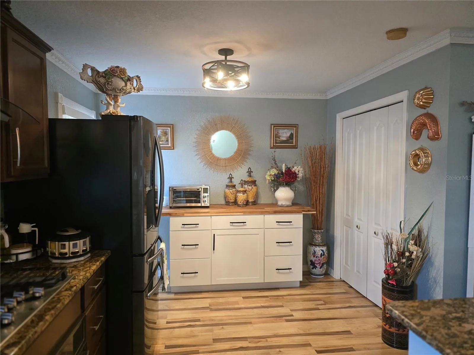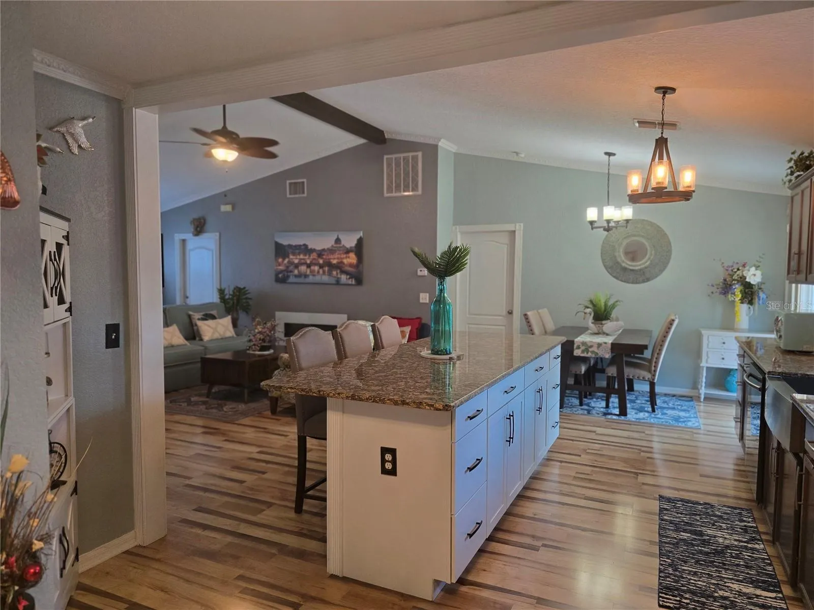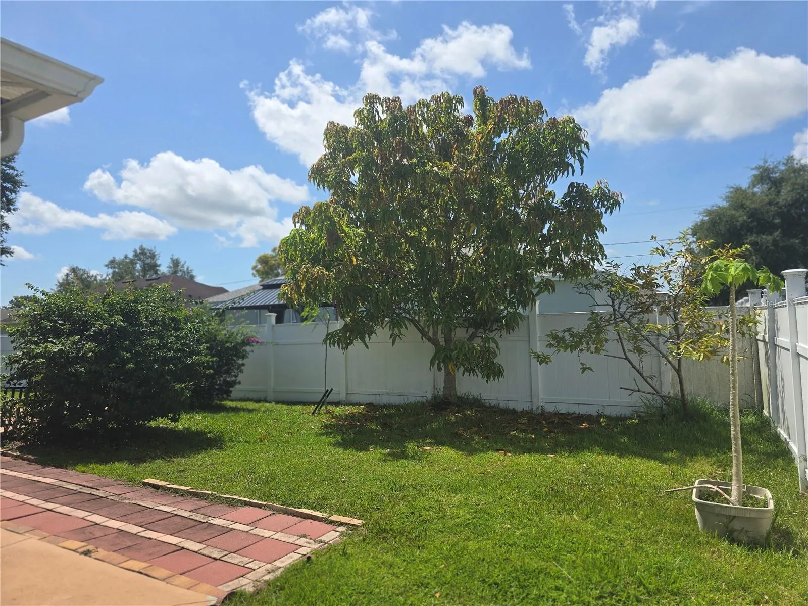 Move in Ready! Immaculate and custom upgraded, this home is filled with timeless charm and modern comforts. The spacious open-concept design flows seamlessly into a chef’s kitchen featuring upgraded premium stainless steel appliances, a deep farm sink, an oversized island, and abundant cabinetry. The private owner’s suite offers a luxurious walk-in tub and generous closet space. Additional highlights include a whole house water filtering system, hurricane window panels, a screened and tiled garage, and an extra-long driveway providing ample parking. Outdoors, enjoy mature fruit trees, manicured landscaping, a fenced backyard for privacy, full gutters, and storm doors, New 2025 HVAC System. Roof is less than 10 years old.Every detail reflects thoughtful upgrades that elevate both style and function. Ideally located just minutes from shopping, dining, and parks, this home is move-in ready and perfect for both everyday living and effortless entertaining.