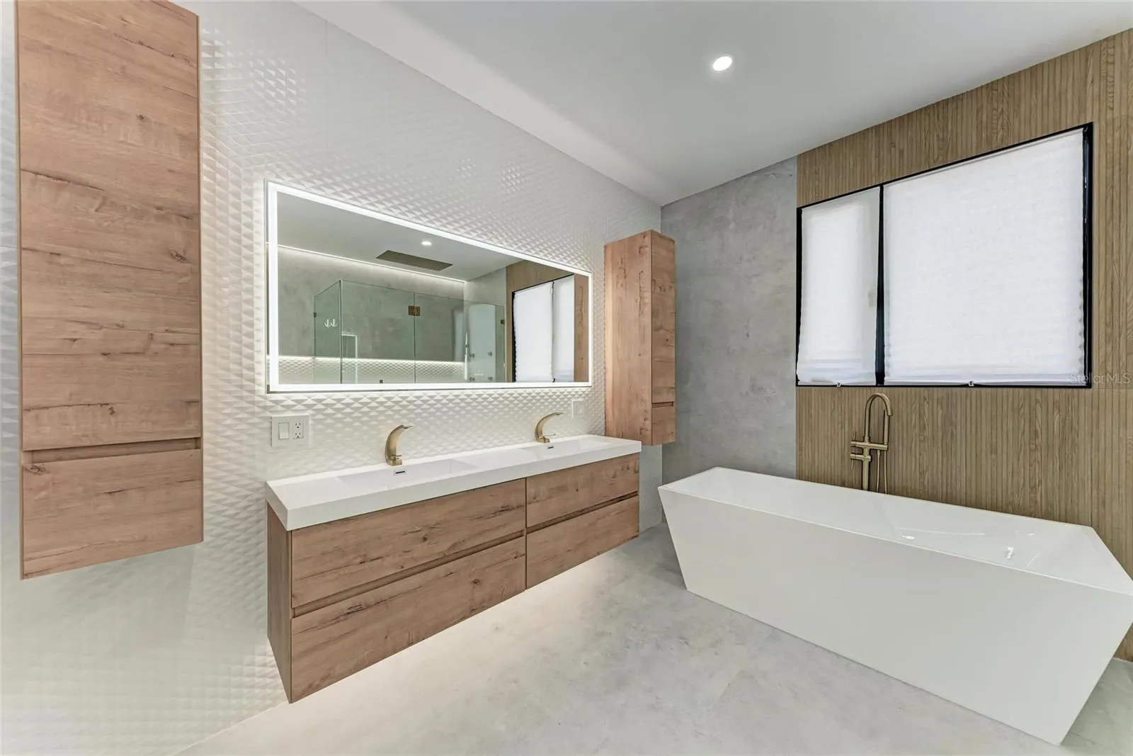 Welcome to this beautifully crafted 4-bedroom, 5-bathroom pool home with a 2-car garage, located in one of the best areas of Sarasota. Built in 2025, this residence showcases modern elegance blended seamlessly with the laid-back charm of Florida living. From the moment you arrive, you’ll appreciate the home’s refined curb appeal, highlighted by its neutral palette, expansive floor tiles throughout, recessed LED lighting, and high-end Level 5 smooth wall finishes.