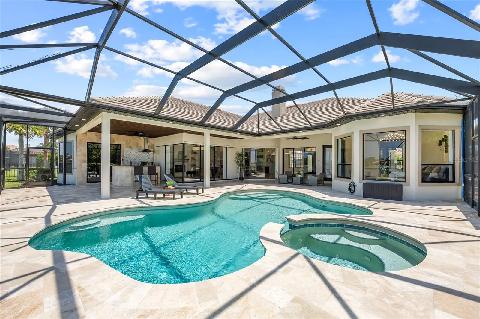 An unmatched designer estate nestled within the prestigious gated community of Summer Lakes in Viera West. This stunning lakefront residence offers an unparalleled blend of modern elegance & vintage charm – boasting 4 bedrooms, 4 bathrooms, a regal home office & media room all within a meticulously designed living space on a sprawling 0.82-acre lot. The heart of the home is the expansive kitchen featuring an oversized Taj Mahal quartzite island, equipped with Wolf & Sub-Zero appliances, custom cabinetry & moroccan brass fixtures. The home’s open-concept living areas & 90-degree sliding glass doors seamlessly flow to the outdoor oasis that boasts this highly sought after lake-view in Viera. AC Units (2019 & 2017), Hot Water Heater & Pool Heater (2025).