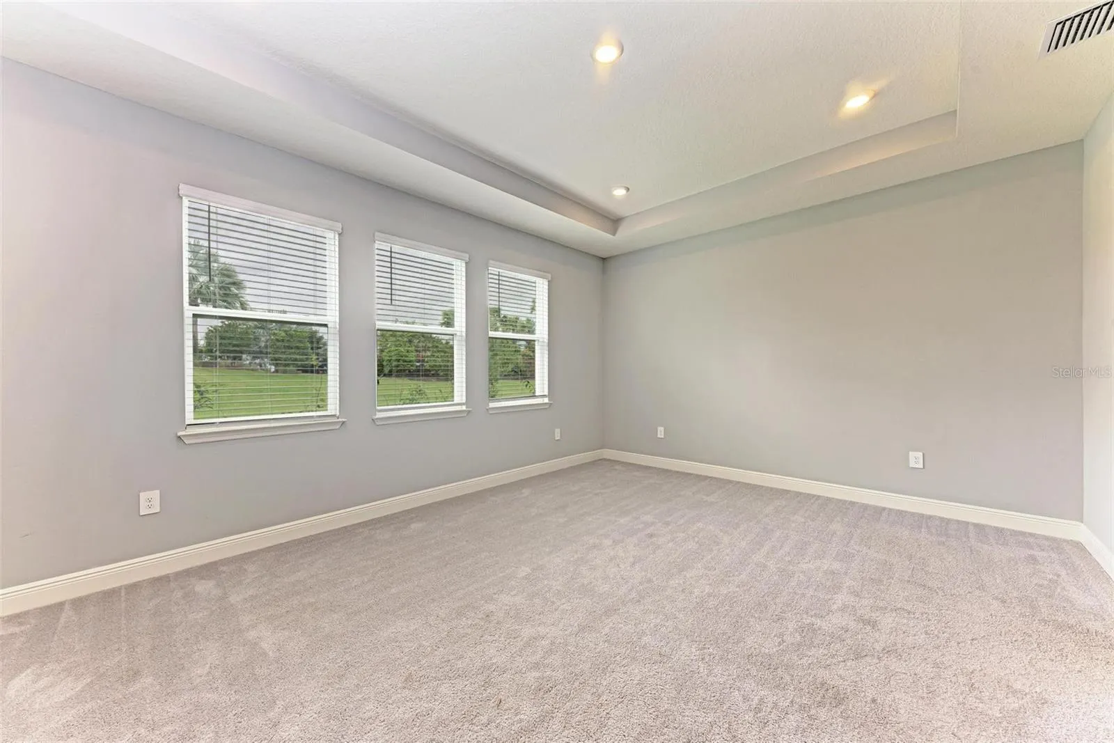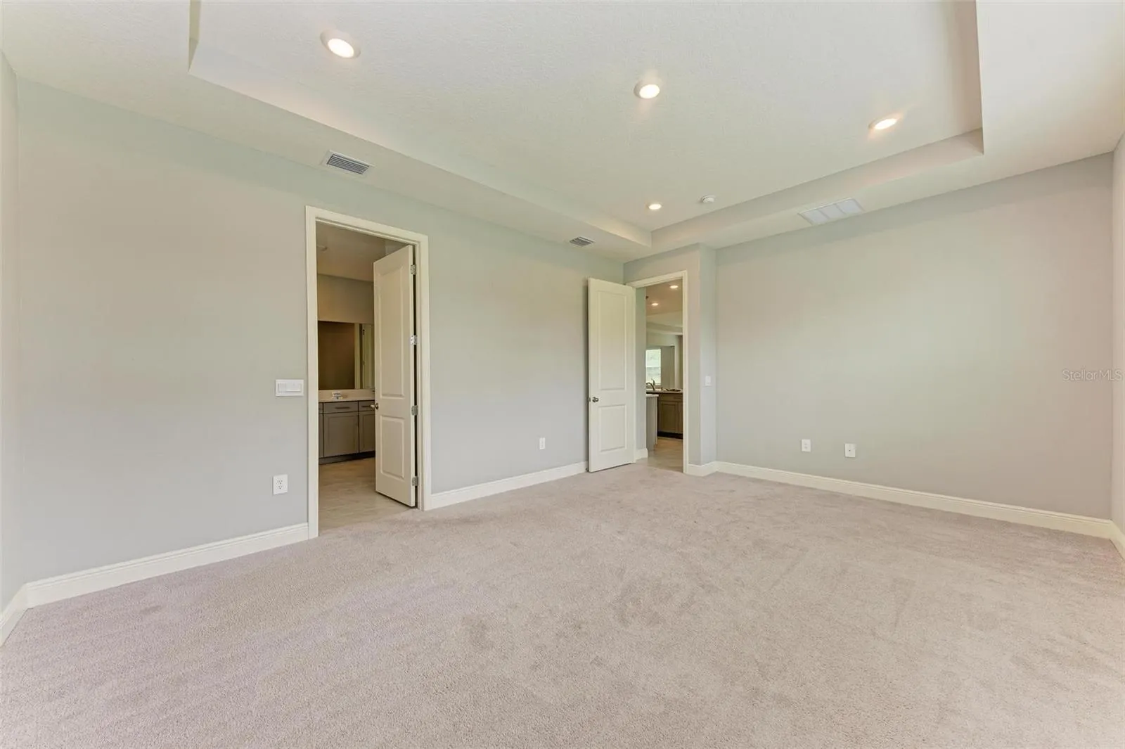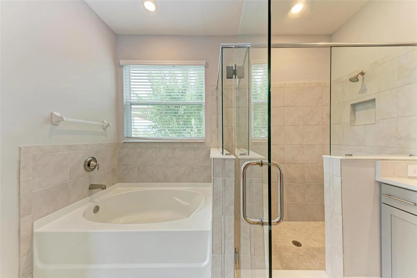 The private primary suite offers a spa-like bath with a walk-in shower, garden tub, dual sinks, and a generous walk-in closet. High ceilings (9’4”), elegant tile flooring, and abundant natural light enhance the home’s inviting feel.