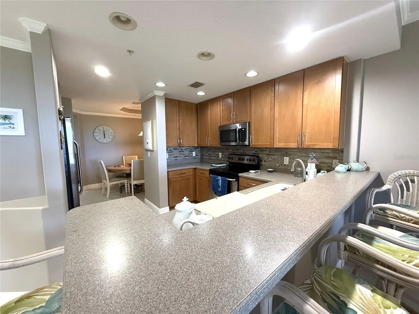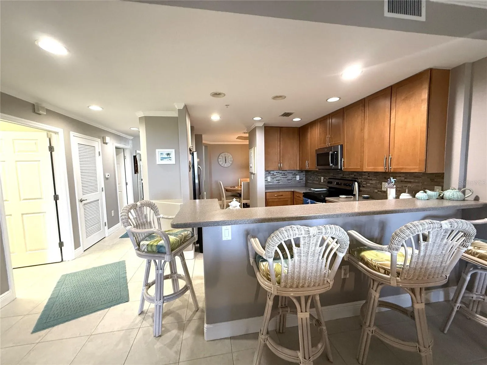 PRICE ADJUSTMENT! Furnished Luxury Condo Annual Rental. This beautiful 2-bedroom, 2-bath waterfront condo with a bonus Den/office offers both comfort and flexibility in the gated community of Seminole Isle. Located on the 4th floor and featuring wide nature and water views, this unit can be leased furnished. The open layout includes a modern kitchen with stainless steel appliances, and plenty of cabinet space, along with a split bedroom plan for added privacy. The primary suite features balcony access, two walk-in closets, and private bathroom with double vanities, while the second bedroom connects directly to the updated hall bath. Other highlights include inside laundry with utility sink, and a screened balcony overlooking Long Bayou. The pool and clubhouse are in the center overlooking a beautiful freshwater lake. Community amenities include a Resort-like Heated pool, full-size tennis courts that also double as pickleball courts, fitness center, kayak launch, walking trail, and more—all just across the street from Lake Seminole Park with a 2-mile walking and Bike Trail, Boat Ramp & Fishing. Under Building Assignesd Parking Spot B14. A short drive to beaches, shopping, and the airport. Rent includes water, Sewer and trash; no pets or smoking.