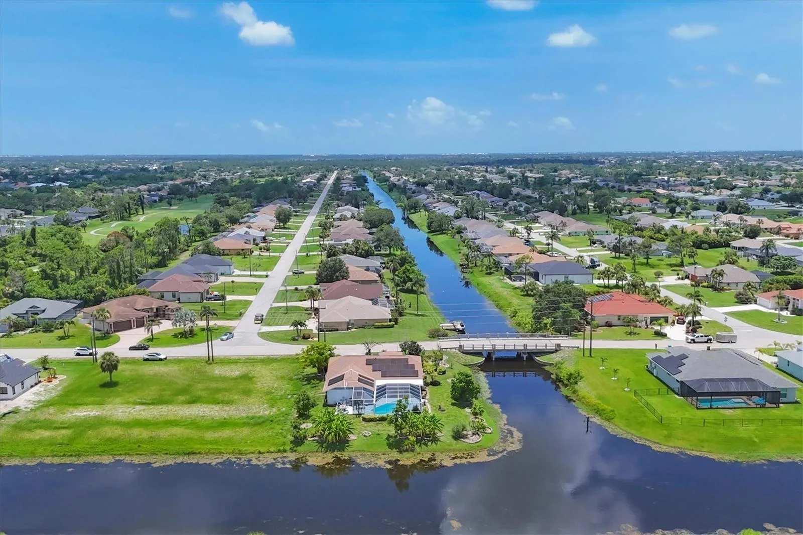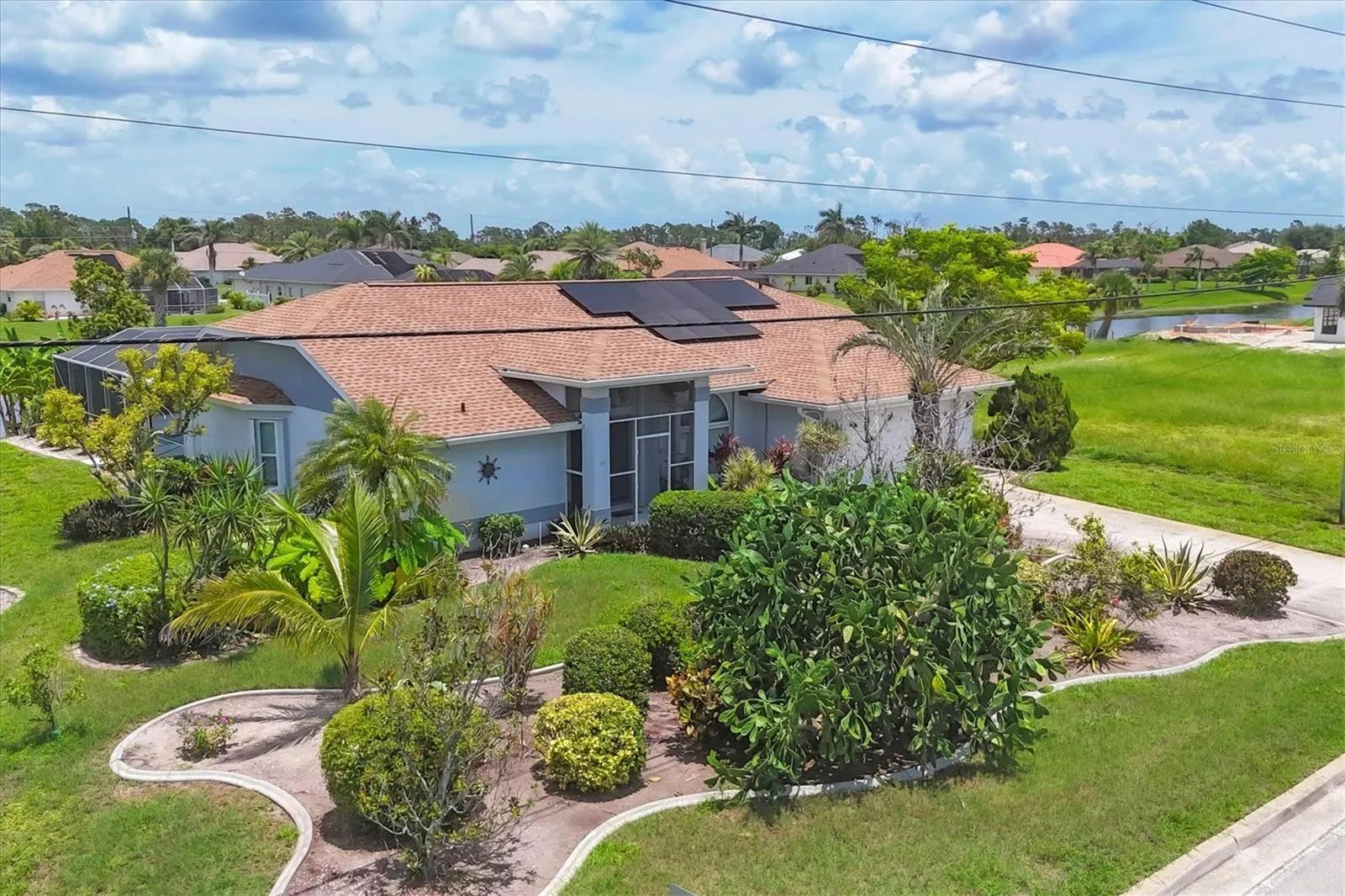 Turnkey Furnished Solar Pool Home Near Beaches & Golf! Welcome to your fully furnished Florida retreat — a beautifully maintained 3-bedroom, 2-bath, 2-car garage home with dual canal views, ideally located just minutes from world-famous Gulf beaches, 5 championship golf courses, and a vibrant community center filled with year-round events and activities. This turnkey furnished home is move-in or rental ready, offering fantastic income potential for seasonal or long-term stays. A 2023 solar power system keeps your electric bills around $27/month, making this an incredibly cost-efficient property to own and operate. Newer Roof 2022, A/C in 2021 and easy to use accordion shutters give piece of mind. Enjoy the saltwater pool, resurfaced with a newer heater (2019), and entertain with ease on the oversized screened lanai—perfect for barbecues, sunbathing, or simply relaxing in the Florida sunshine. Inside, the split floor plan and cathedral ceilings create an open, airy layout ideal for hosting and guest privacy. The updated kitchen with granite countertops pairs beautifully with fruit from your own mature mango, banana, avocado, and citrus trees. The private primary suite offers a spa-like bath with a garden tub, walk-in shower, dual vanities, and vaulted ceilings. The guest wing includes a bath with direct pool access, adding convenience for visitors or renters alike. Additional features: • Re-piped with PEX in 2008 • Whole-house surge protector • TREX flooring in garage • High-demand location for vacation or seasonal rental This home truly has it all — low-maintenance living, strong rental potential, and a location that delivers the best of the Florida lifestyle. Don’t miss the 3D virtual tour and floor plan— schedule your private showing today!