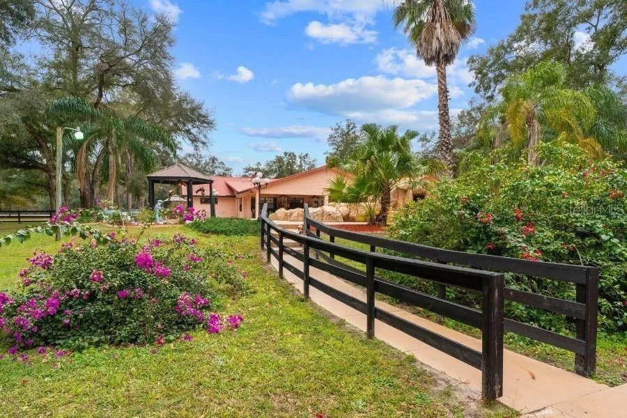 SELLER FINANCING available!!! Welcome to Countryside Farms- a UNIQUE, private, GATED community. This one-of-a-kind home sits on 3.18 FULLY FENCED acres with AG zoning, minutes from the World-FAMOUS Equestrian Center, and features a custom beach-style swimming pool! With 6 total BEDROOMS and 3.5 baths, the main house features VAULTED ceilings, wood beams, dual HVAC, split floor plan, and multiple walk-in closets. The CUSTOM SPORTS BAR overlooks 2,000+ SF of breezy, COVERED, porch space, seamlessly blending into a RESORT-STYLE POOL with a HEATED SPA, creek, waterfall, and natural rock ledge. The scenic walkway leads to a 2,600 SF detached WORKSHOP garage with 3 OVERSIZED BAYS, its own HVAC, septic, attic, one of three 200-amp electrical panels and a GUEST house with full bath, kitchenette, and 1,000 SF of additional covered CARPORT parking! Every bell, every whistle, this estate checks EVERY box! *PRICED BELOW APPRAISED VALUE + HOME WARRANTY INCLUDED!*