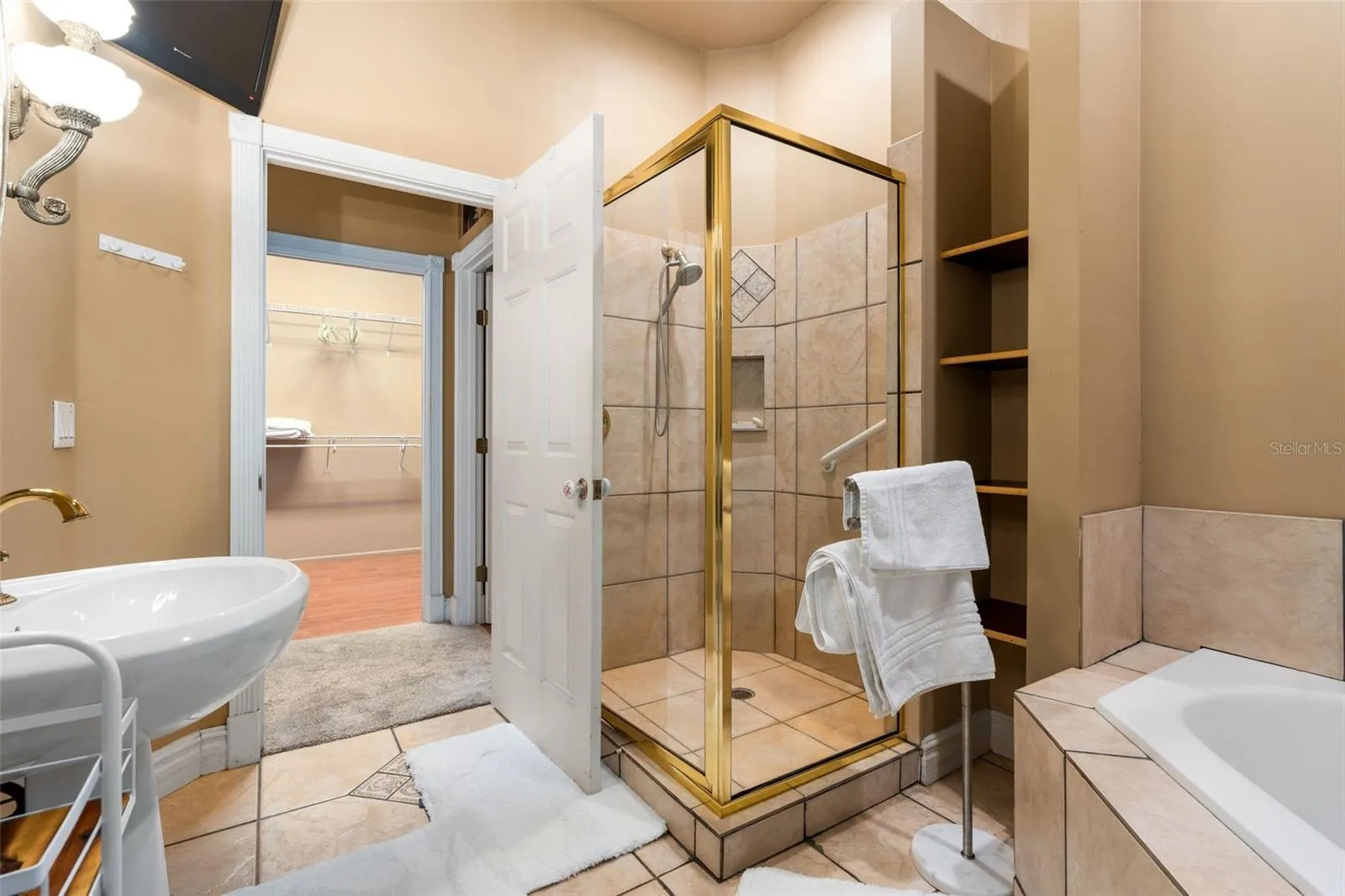 The main residence offers a gated entrance within a gated entrance, offering privacy and protection. As you wind down the picturesque drive and around the fountain, you’ll know you’ve arrived. The two story brick residence stands tall, yet feels inviting. Enter inside and you’ll be captivated by the two story formal living room. To the right you’ll find the office, a guest room / nursery, and a double door entry leading to the palatial primary suite with two walk in closets, a beautifully remodeled primary bathroom with separate vanities, a frameless glass shower, and a standalone tub surrounded by windows.